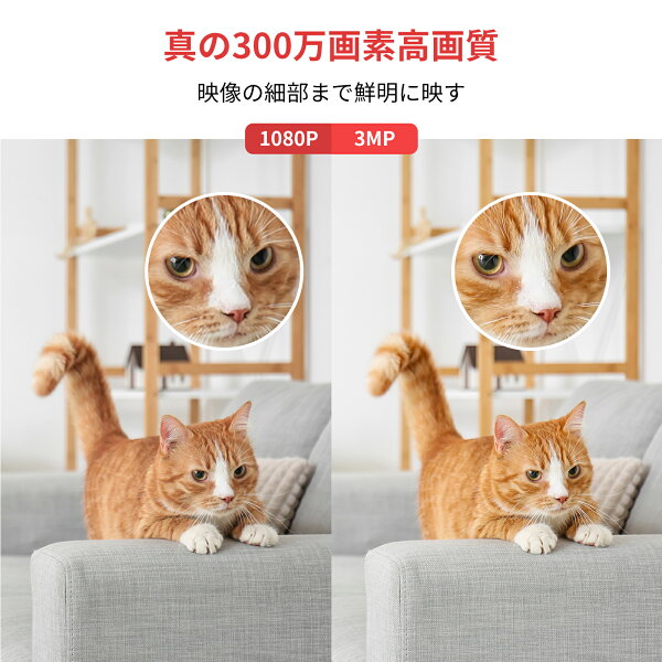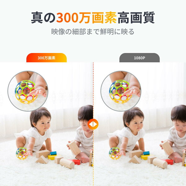 【真の300万画素高画質、映るモノすべてが鮮明に見える】300万画素の高画質カメラで、人の顔もペットの様子も細部までクリアに確認できます。高光感度レンズモジュールによって、リアルで透明感のある画面を映ります。 (※本製品はWi-Fi2.4 GHzのみ対応)