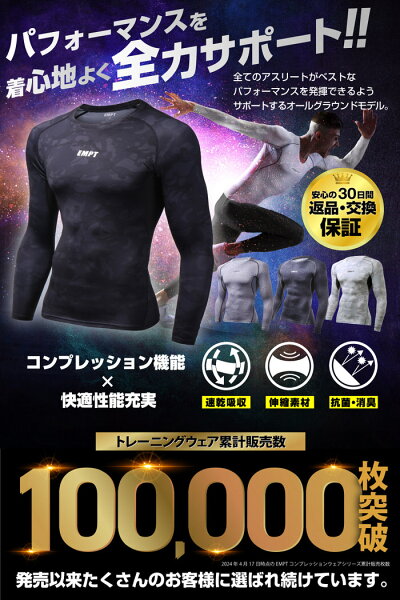 ■コンプレッションウェアについて: コンプレッションウエア とは、適度な 加圧 着圧 をもった トレーニングウエア です。 運動時 の パフォーマンス向上 が期待できます。