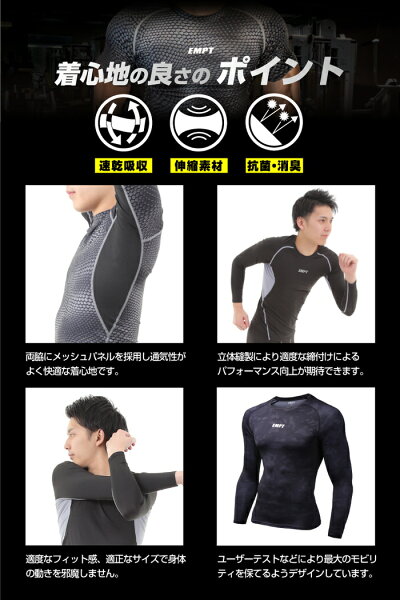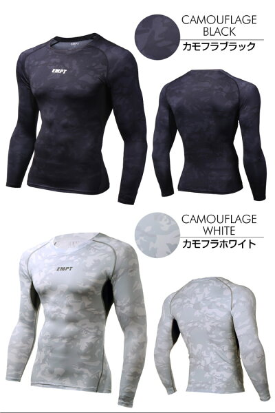 EMPT コンプレッションウェア メンズ 長袖 カモフラ ■ 商品スペック : メンズ 男性 長袖 ロング 丸首 ラウンドネック スポーツ機能性ウェア 機能性インナー ■ カラー ( 色 ) : パイソン ブラック ( 黒 ) / パイソン ホワイト ( 白 ) / カモフラ 迷彩 ブラック ( 黒 ) / カモフラ 迷彩 ホワイト ( 白 ) / ※カラーは柄タイプの4種類となります。