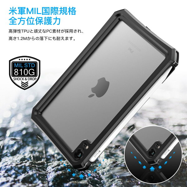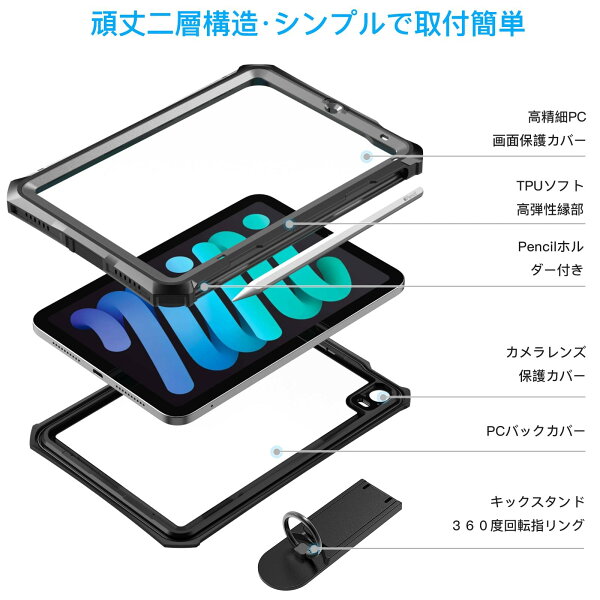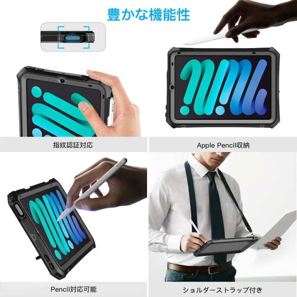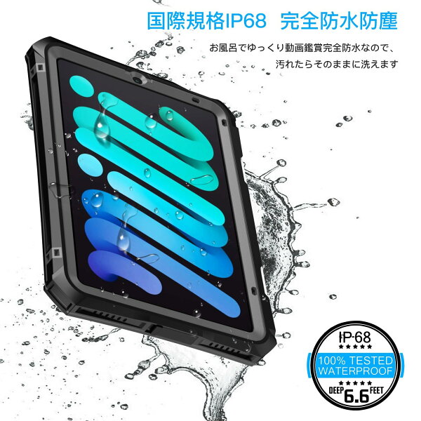 Tmacjump iPad mini7 ケース (A17 Pro 2024モデル、第7世代)、iPad Mini6 ケース(2021モデル、第6世代) 8.3インチ IP68 完全防水 防塵 耐衝撃 ペン収納 保護フィルム付 TouchID認証対応 キック