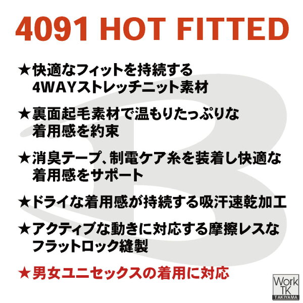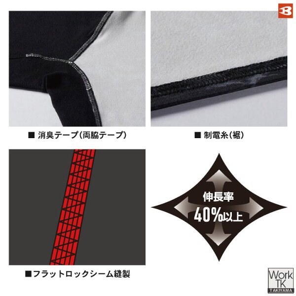 [2026年新色][即日出荷] バートル 長袖 ストレッチ インナー 秋冬 裏起毛 インナーシャツ メンズ レディース 仕事服 作業着 おしゃれ かっこいい BURTLE [ネコポス] bt-4091