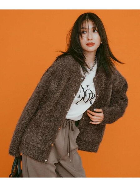 【SALE/10%OFF】シャギーミドルカーディガン【洗濯機OK】《6col》 OPAQUE.CLIP オペークドットクリップ トップス カーディガン ブラック パープル ピンク ホワイト【RBA_E】【送料無料】[Rakuten Fashion]