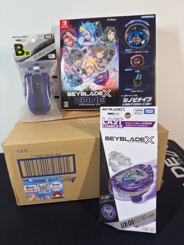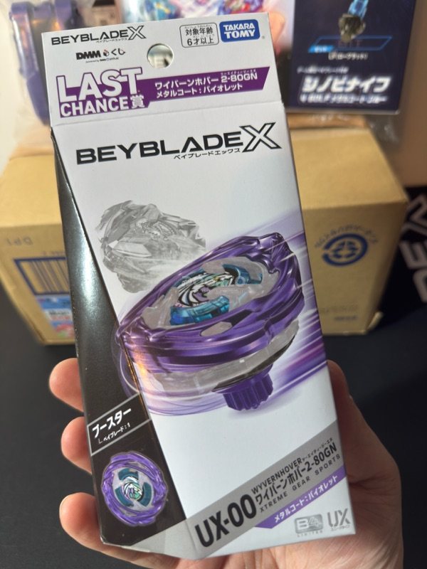 Managed to get the rare UX-00 WyvernHover 2-80GN purple coat, Purple String Launcher and Beyblade XONE new and unused for such a decent price!