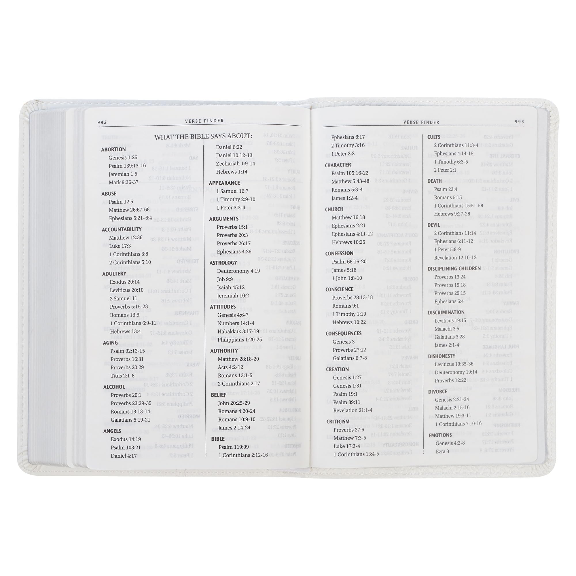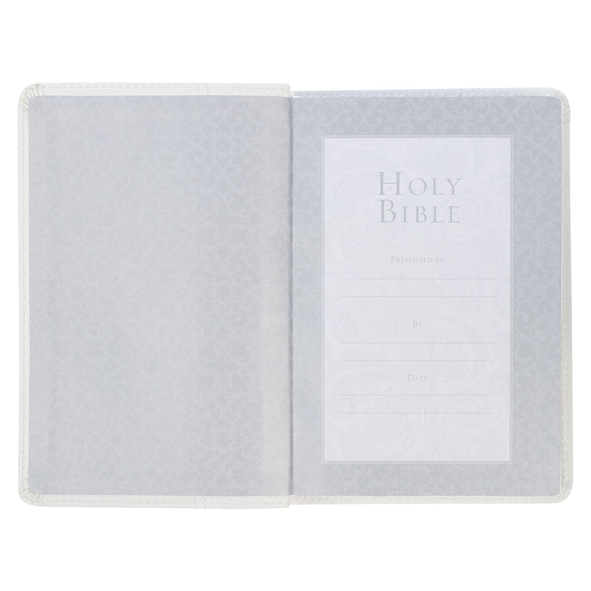 The KJV Compact Bible is the classic King James Version in a handy compact size, making it the perfect Bible for people on the go. They are easy to slip into a purse, pocket or a backpack. Features includes: Words of Jesus in red, Thematic Scripture verse finder, Presentation page, Reader-friendly headings, One-year Bible reading plan, Double Column format, Lux-Leather lay-flat binding, Ribbon marker, Gilt edged pages & 7-point type