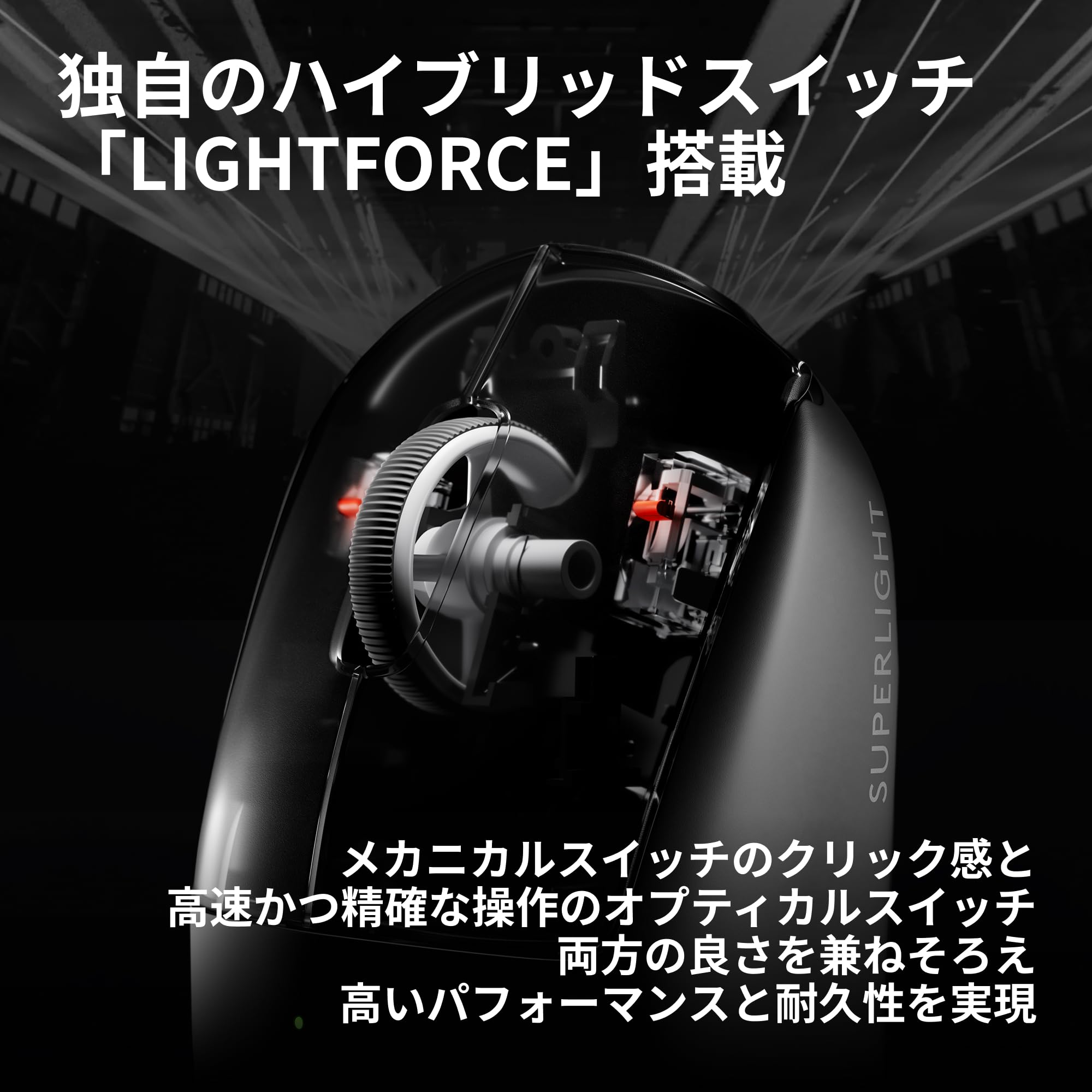 メカニカルスイッチのクリック感と光学式スイッチの圧倒的な反応速度を兼ね備えた、「LIGHTFORCE」スイッチを搭載。高度なスイッチの信頼性と一貫性により、最高レベルのパフォーマンスを実現します。
