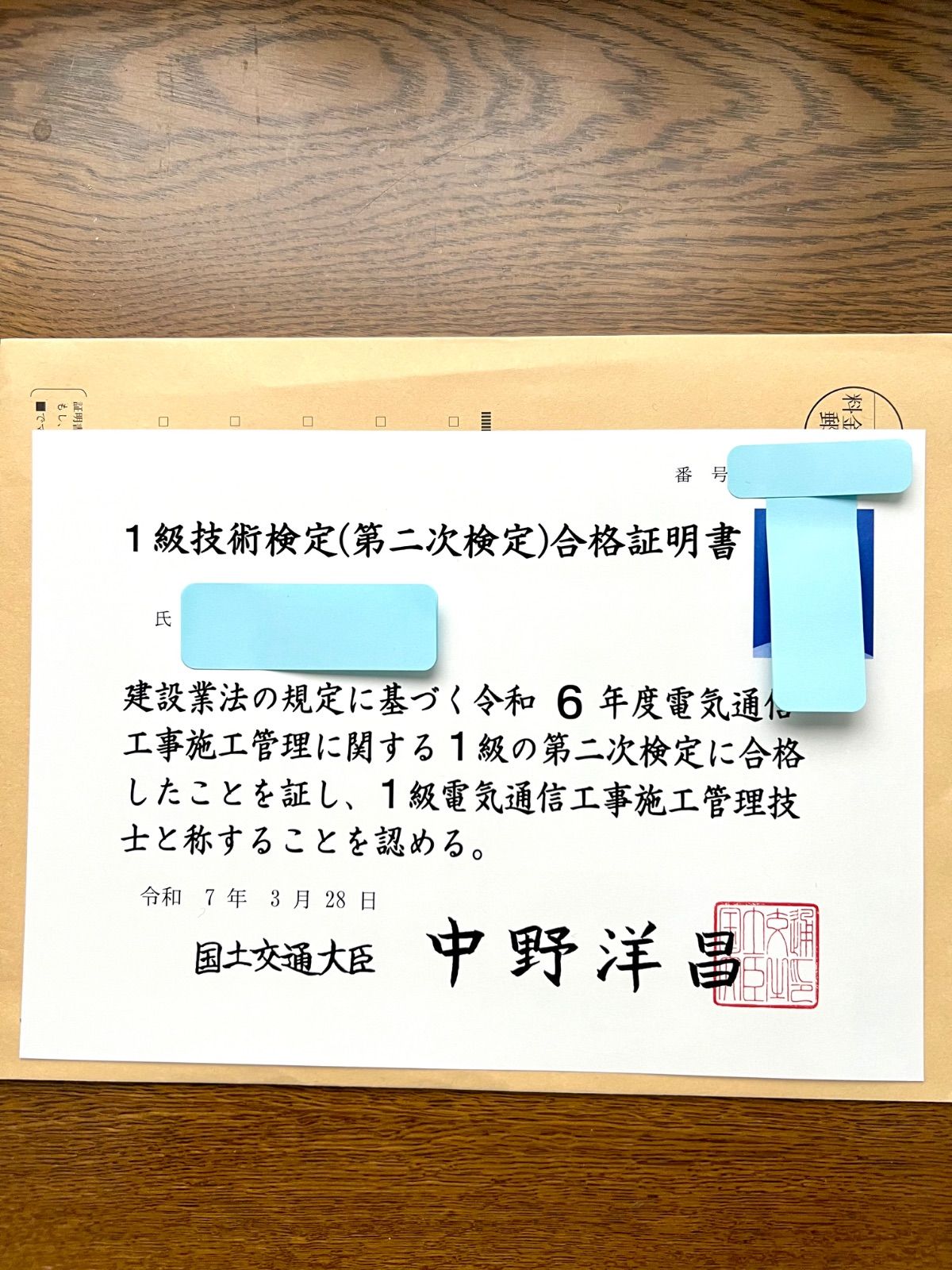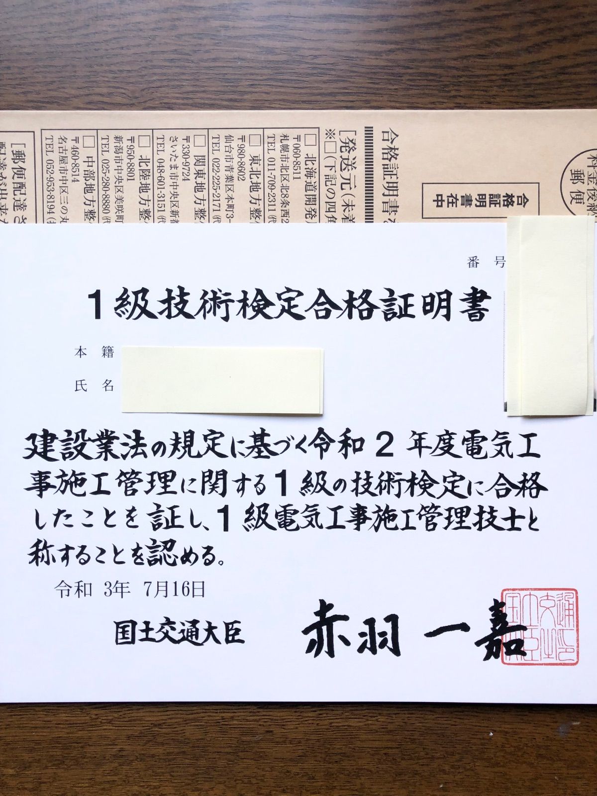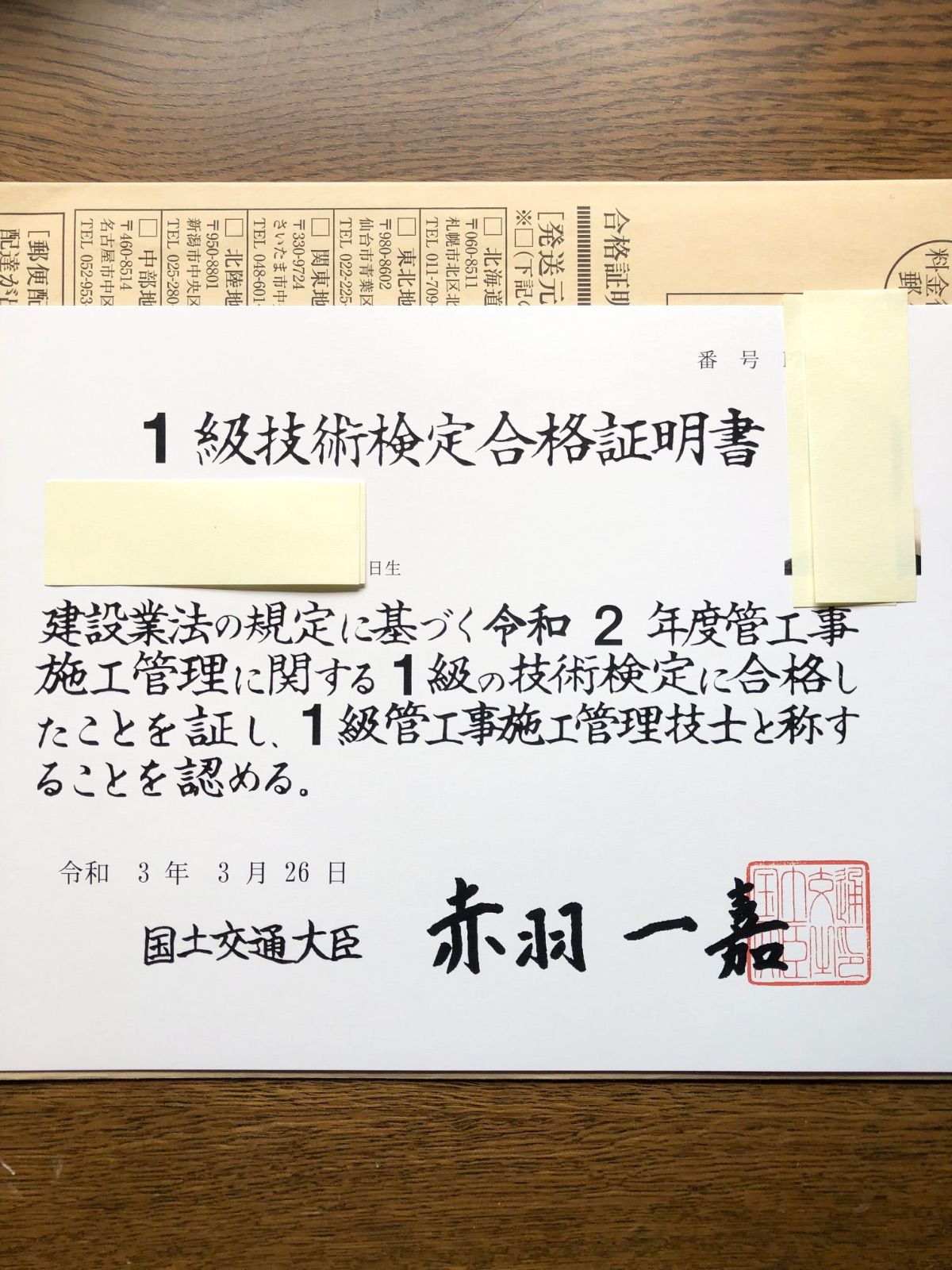 1級建築・土木・管・電気・電気通信各施工管理技士試験に独学一発合格しました。