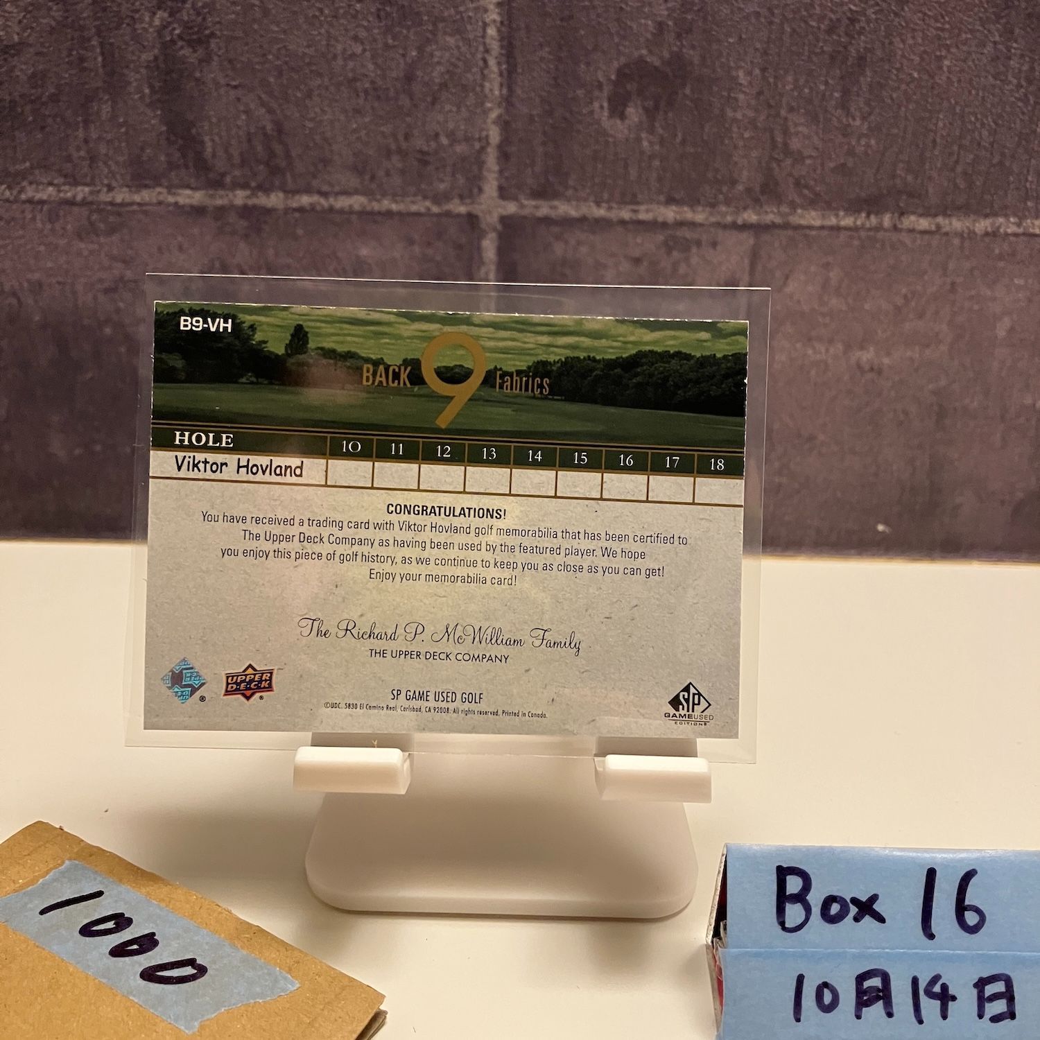 2023 Upper Deck SP Game Used Viktor Hovland Back 9 Fabrics Player-worn Memorabilia ジャージ カード
