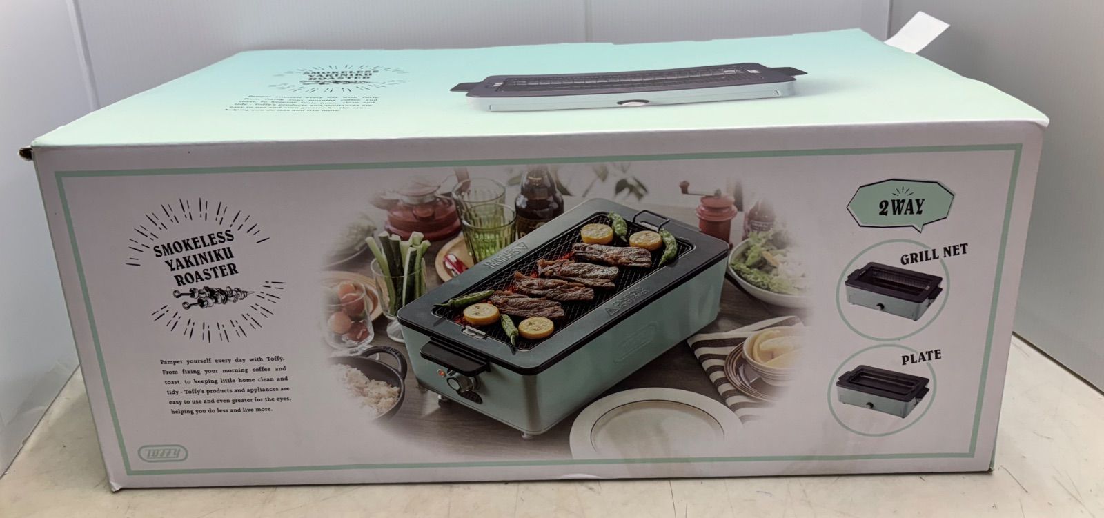 本州・四国のみ送料無料 トフィー スモークレス焼肉ロースター K-SY1 タイプ ホットプレート 形状 長方形 付属プレート数 2 枚 プレート面素材 フッ素系 定格消費電力:1000W コードの長さ 1.3 m 油カット ○ 煙カット ○ マグネットプラグ ○ プレート丸洗い ○ サイズ 437x155x235 mm 重量 3.05 kg
