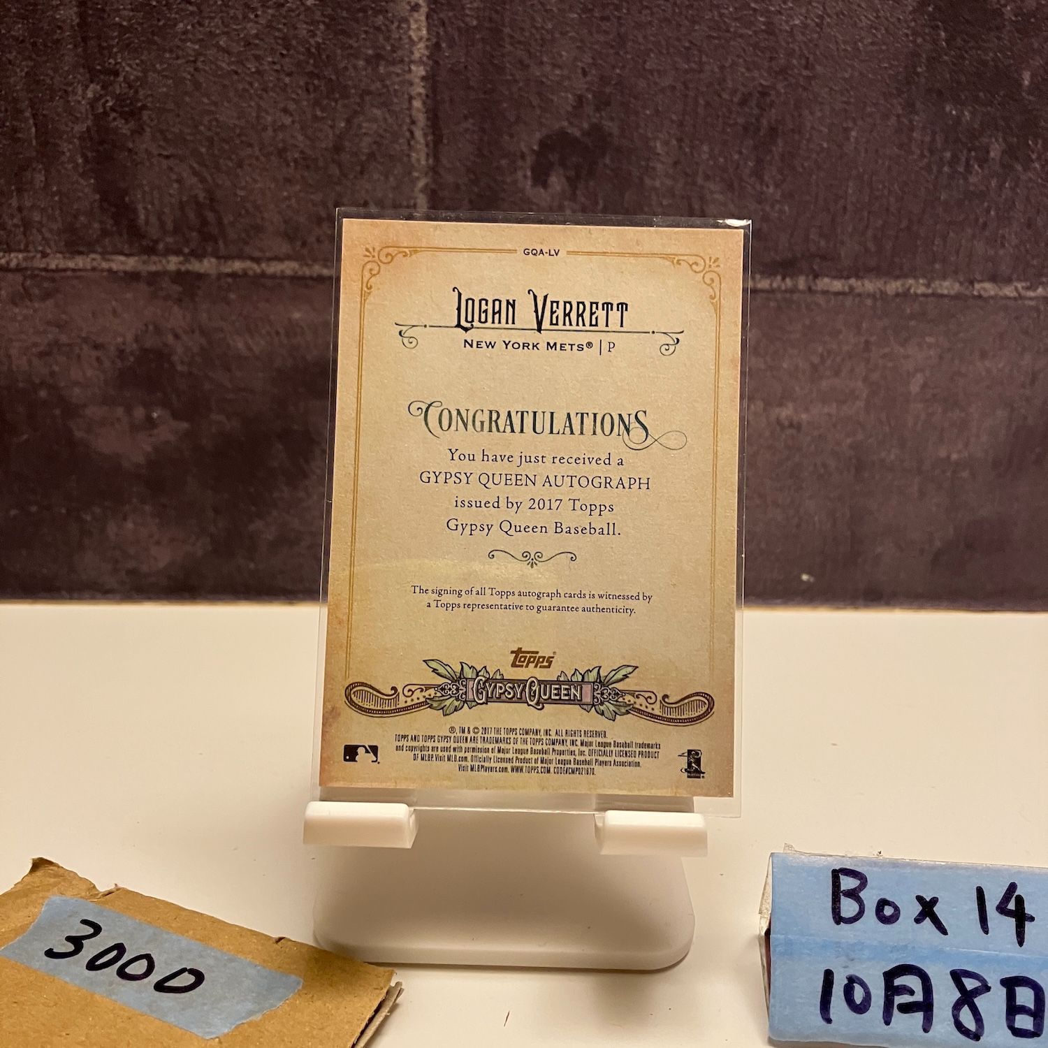 2017 Topps Logan Verrett 直筆サインカード New York Mets Gypsy Queen Autograph カード