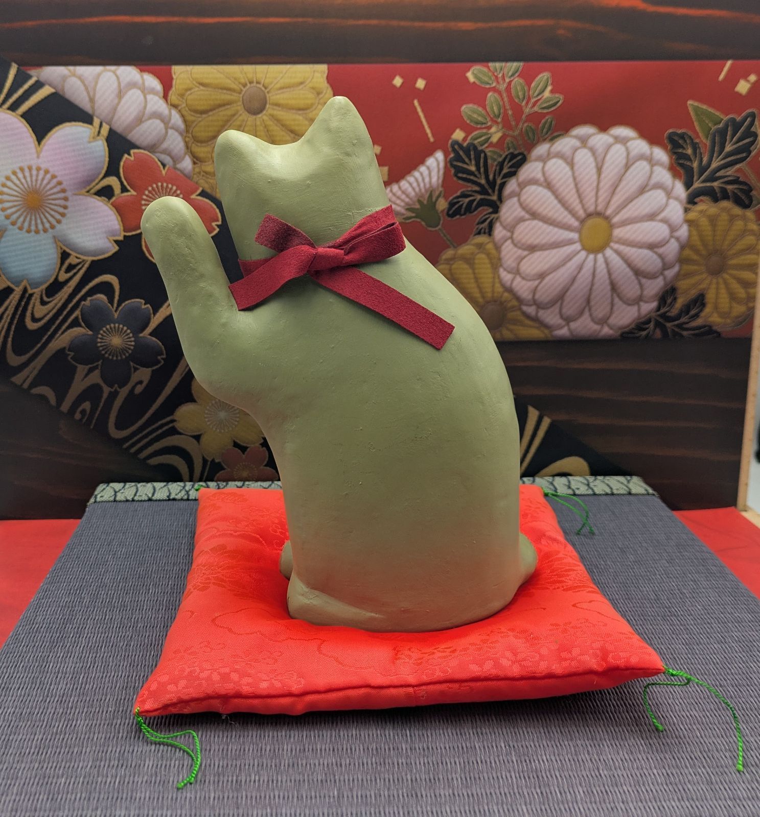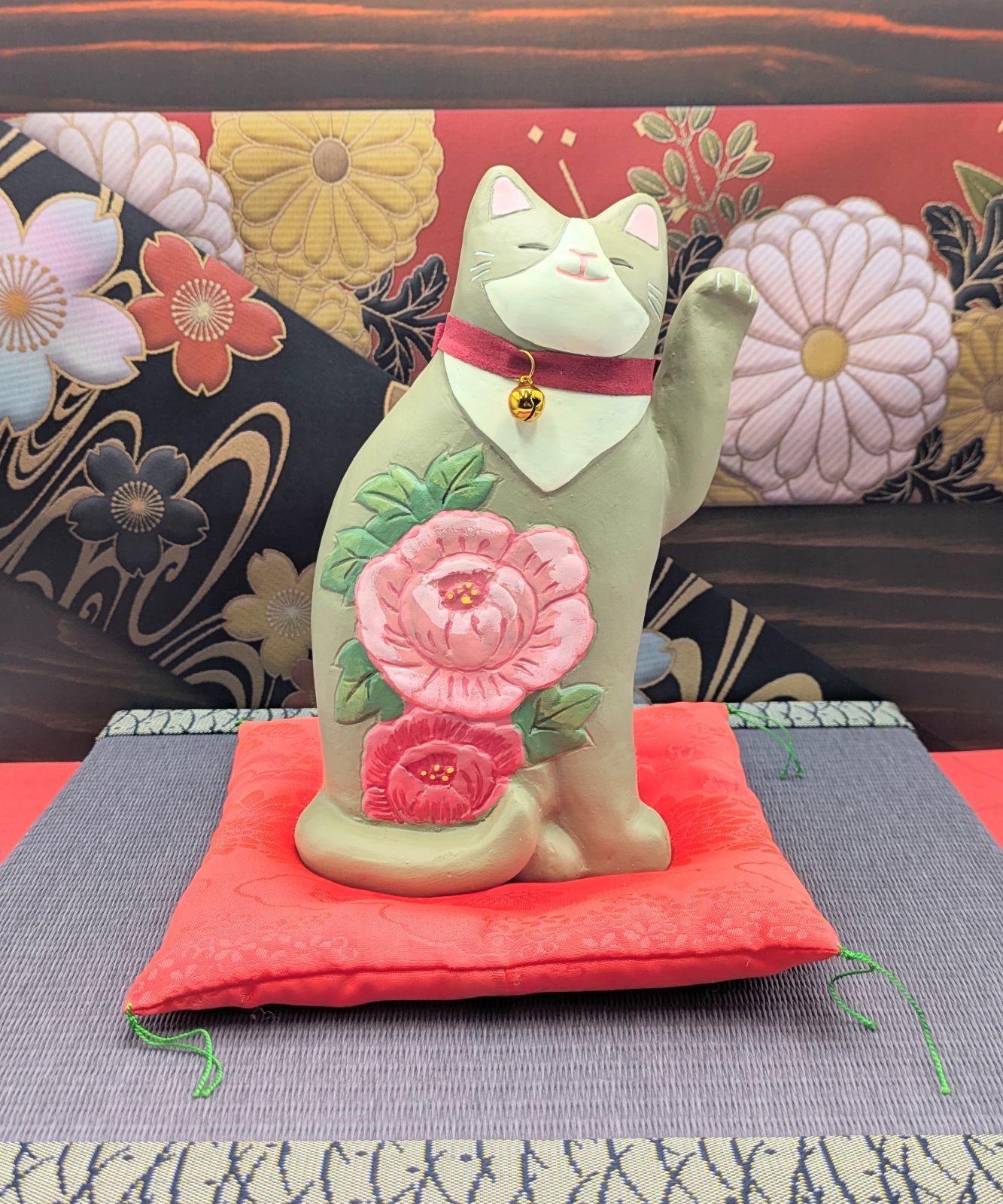 縁起物 招き猫 花招き猫 大 ぼたん 左手上げ セトクラフト 開運 招福 千客万来 商売繁盛 金運 ボタン