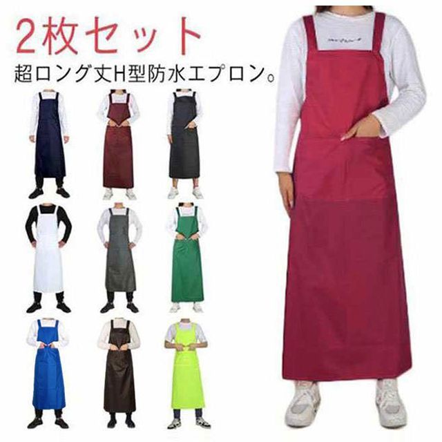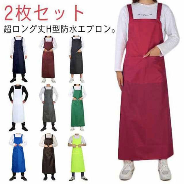 超ロング丈 115cm 防水エプロン H型 2枚セット 業務用 防水 防油 エプロン ポケット付き 丈夫 カフェエプロン 料理 DIY ガーデニング ワークエプロン 大きめサイズ 男性 メンズ 男性用#yojf1191