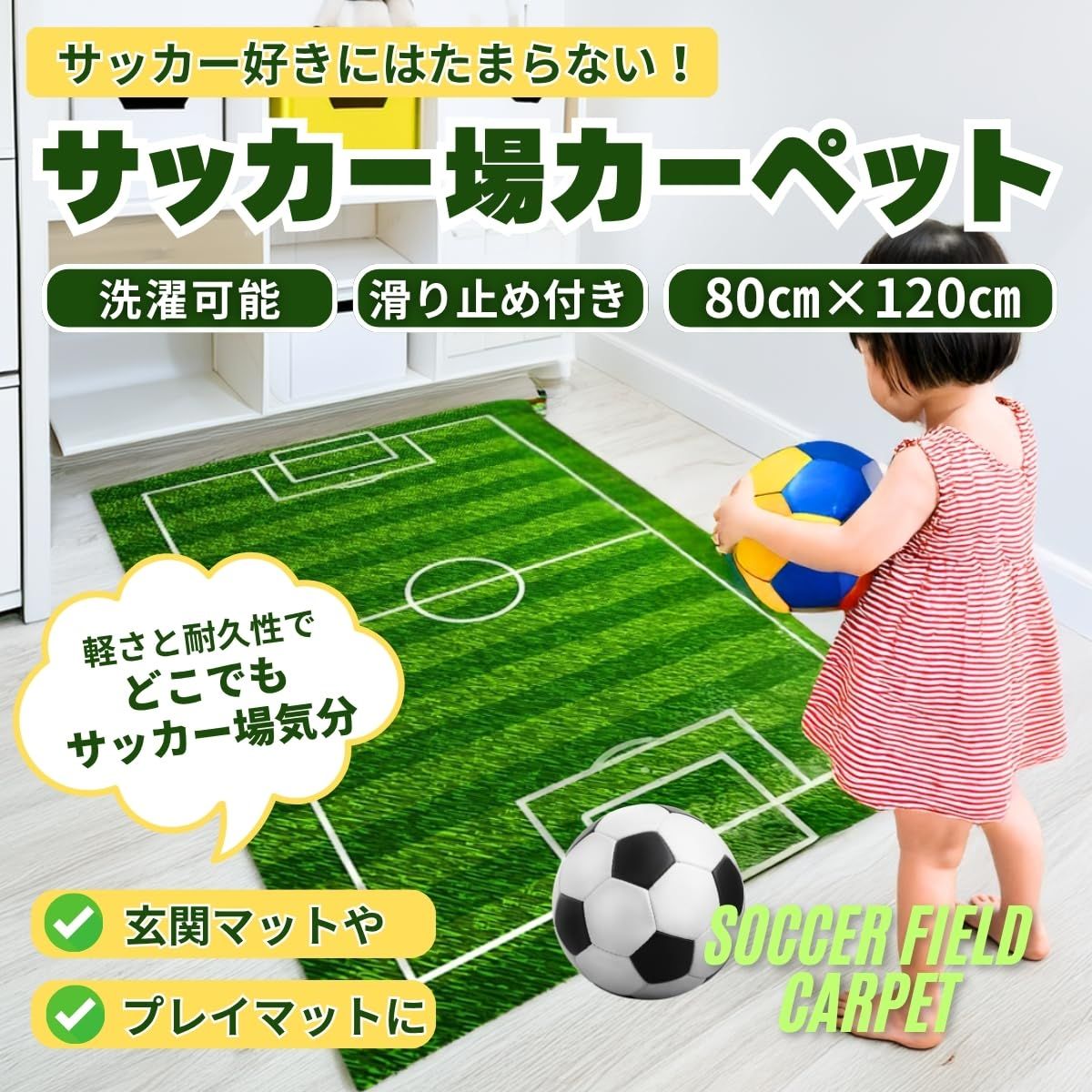 SALUDABLE サッカーマット サッカー場 プレイマット キッズ カーペット ラグマット 洗える (80×120cm) [80×120cm]