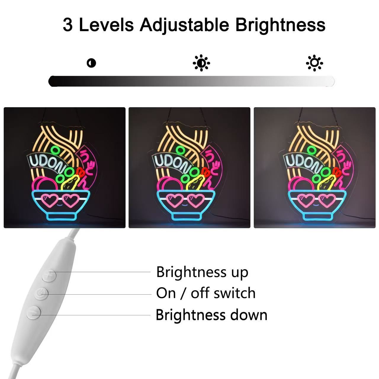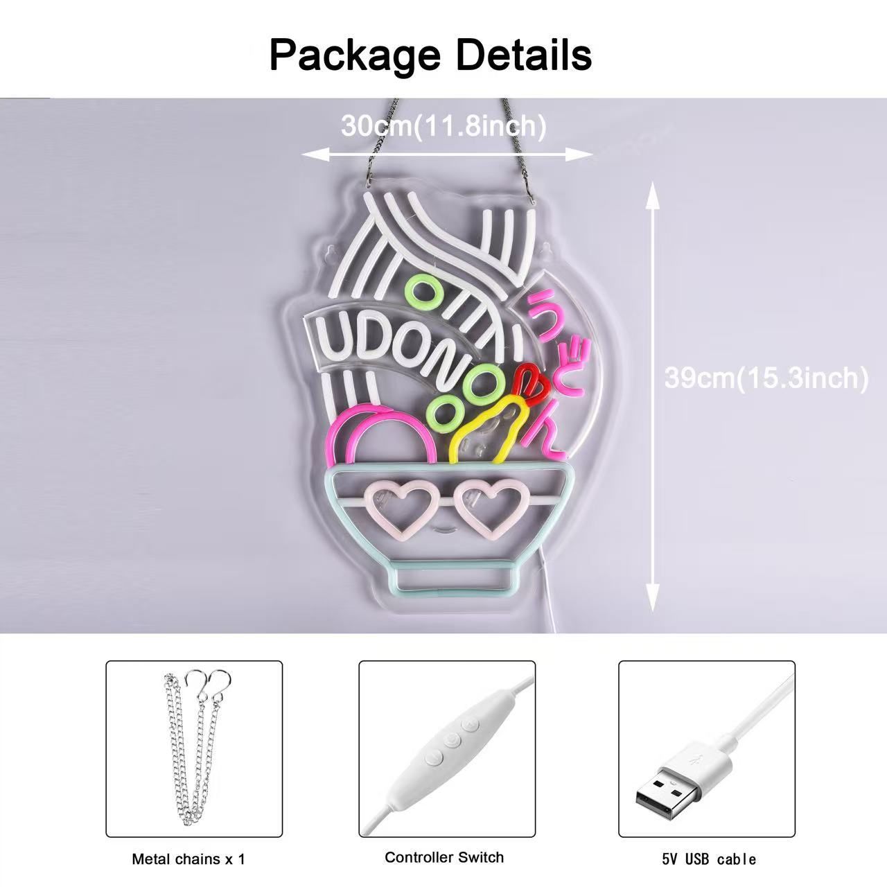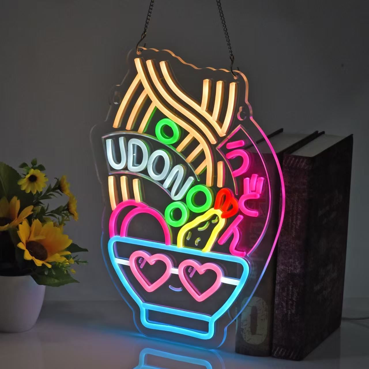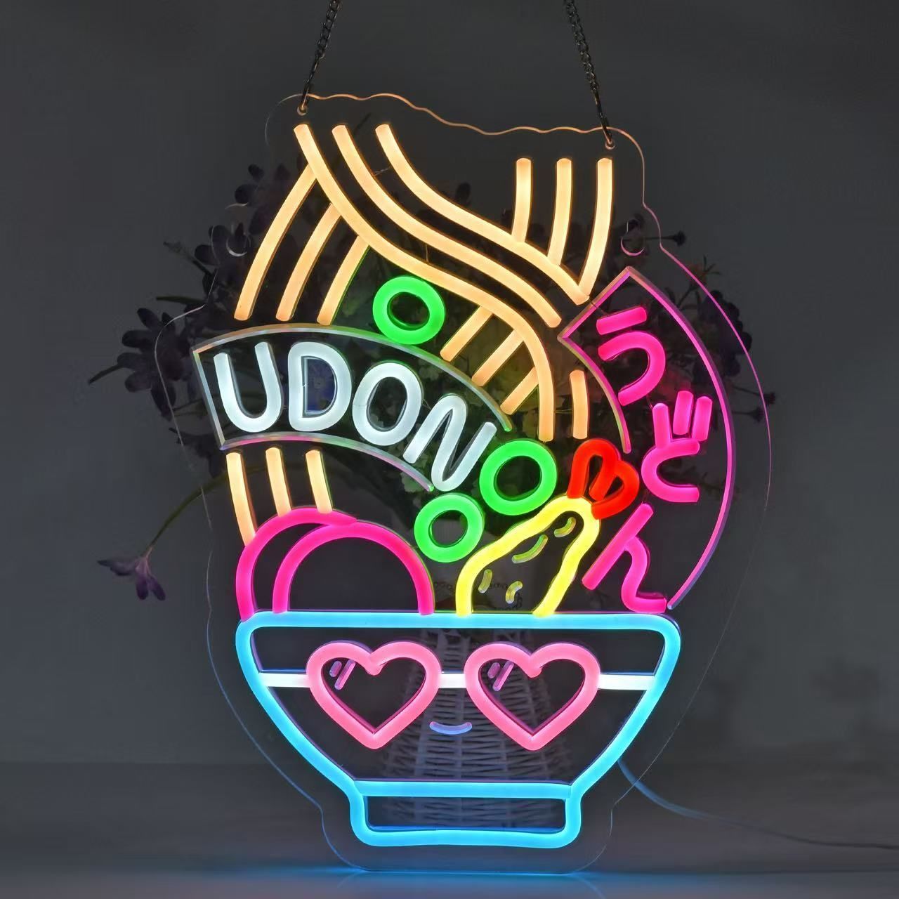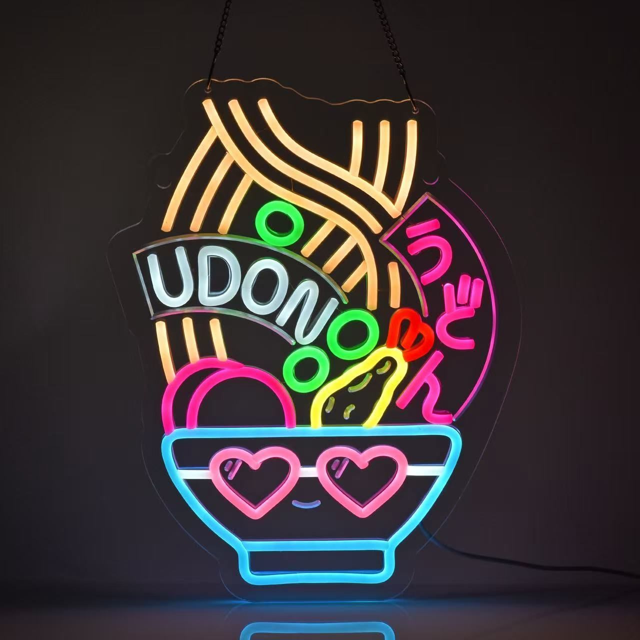 Udon Love LEDネオンサイン、「美味い!」を光で伝える、行列を作る集客ネオン