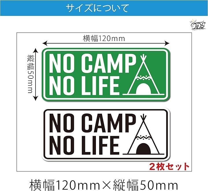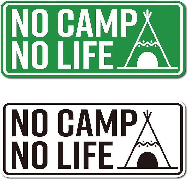 オリジナルデザインストア NO CAMP LIFE キャンプステッカー アウトドア用ステッカー シール W120mmxH50mm 2枚セット 車用 バイク用 クーラーボックス 屋外 (ホワイト グリーン)