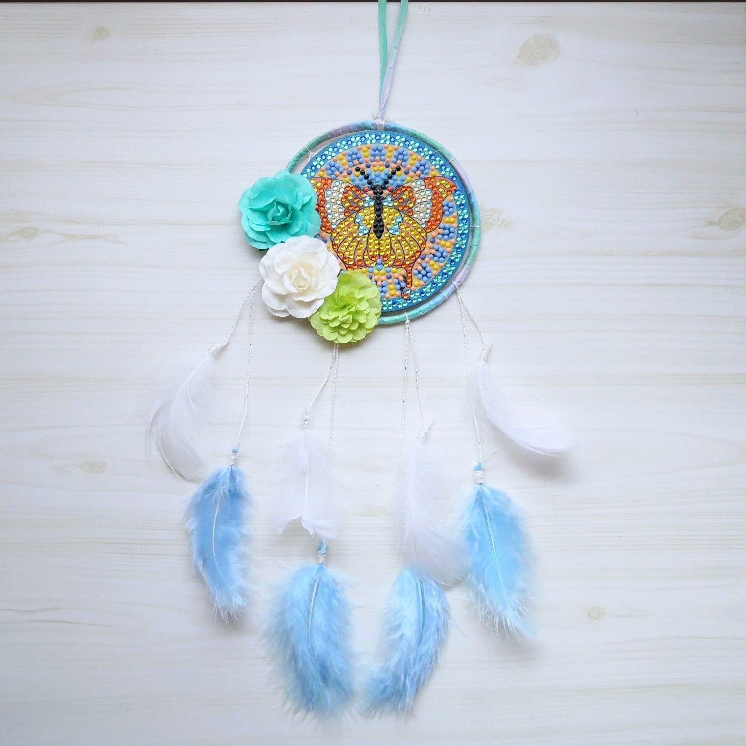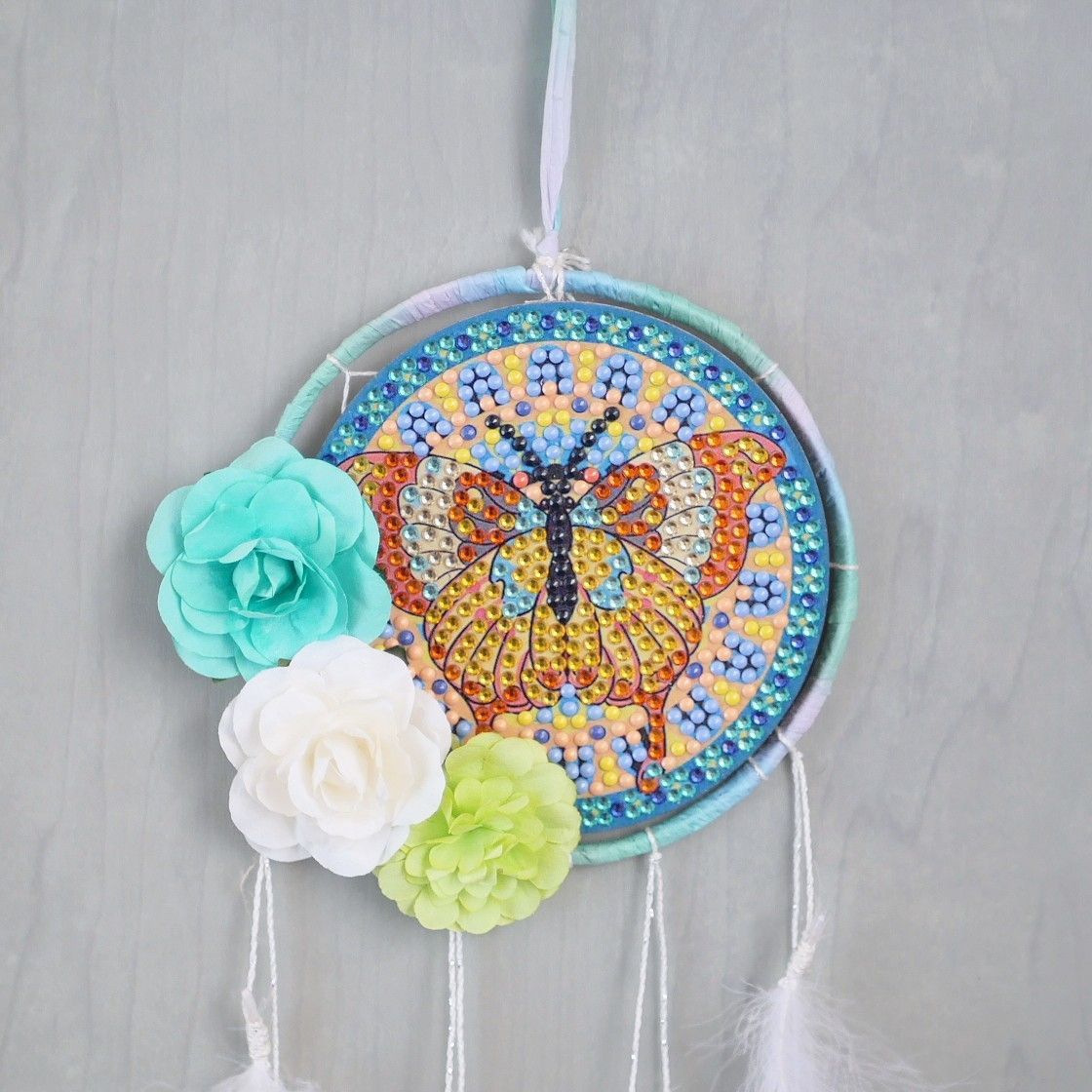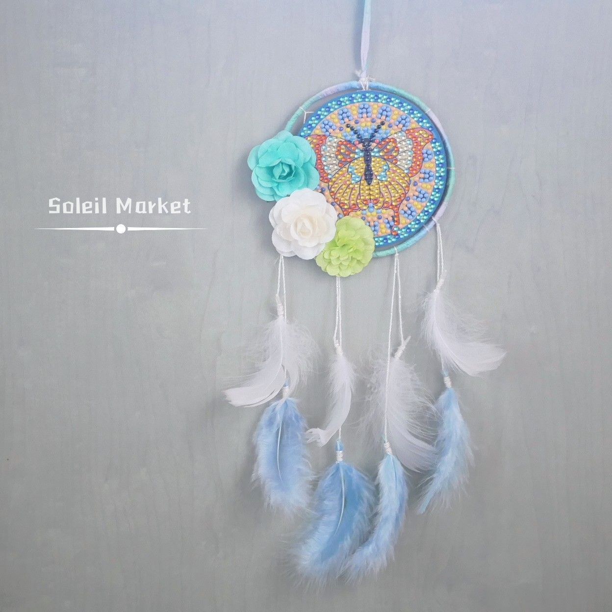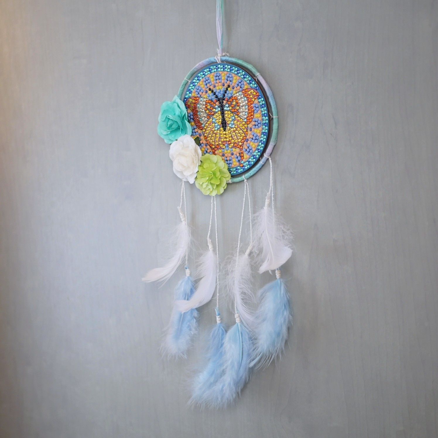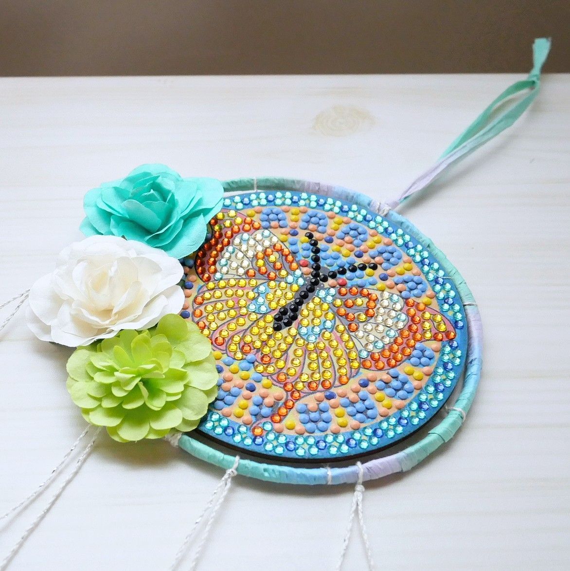 ダイヤモンドアート 蝶 お花 ドリームキャッチャー ブルー カラフル インテリア お守り 魔除け
