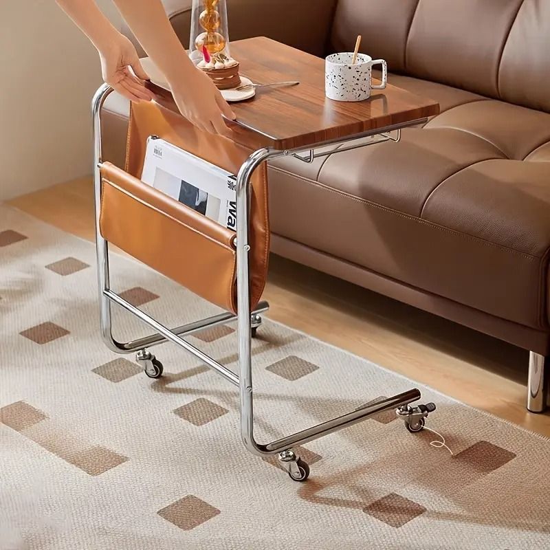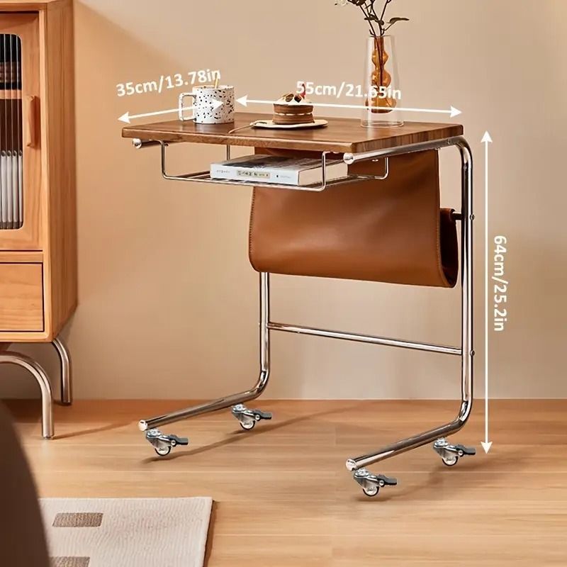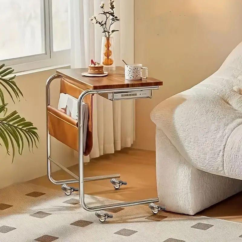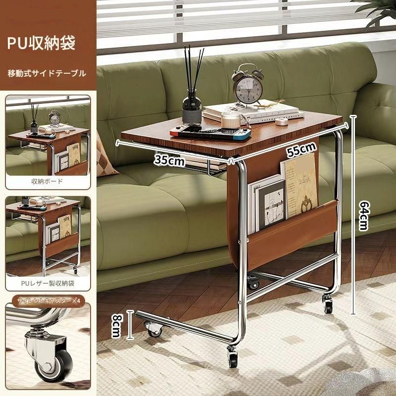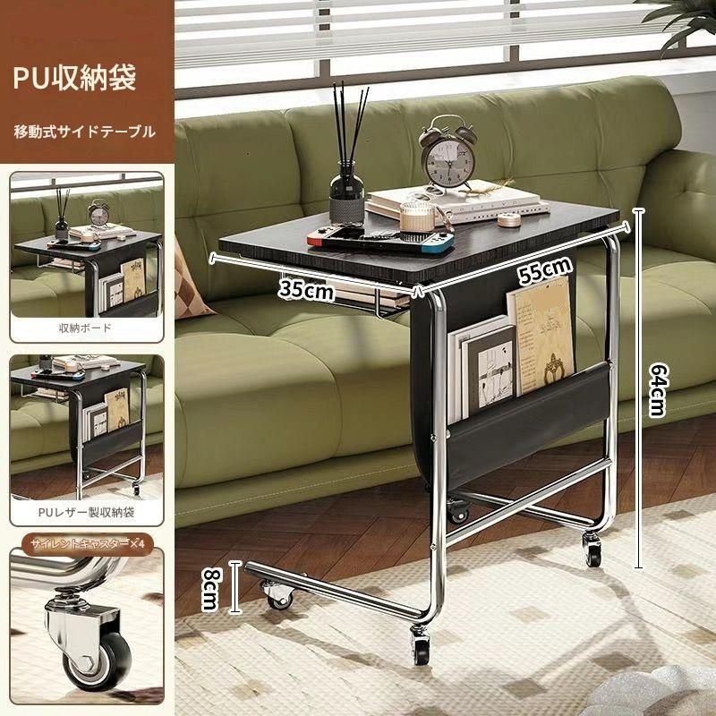 サイドテーブル キャスター付き 収納袋 おしゃれ 自由に移動 多機能コーヒーテーブル 便利 カラーバリエーション ホワイト ブラック ブラウン リビング ダイニング 寝室 ソファ脇 簡単移動 ストッパー付き