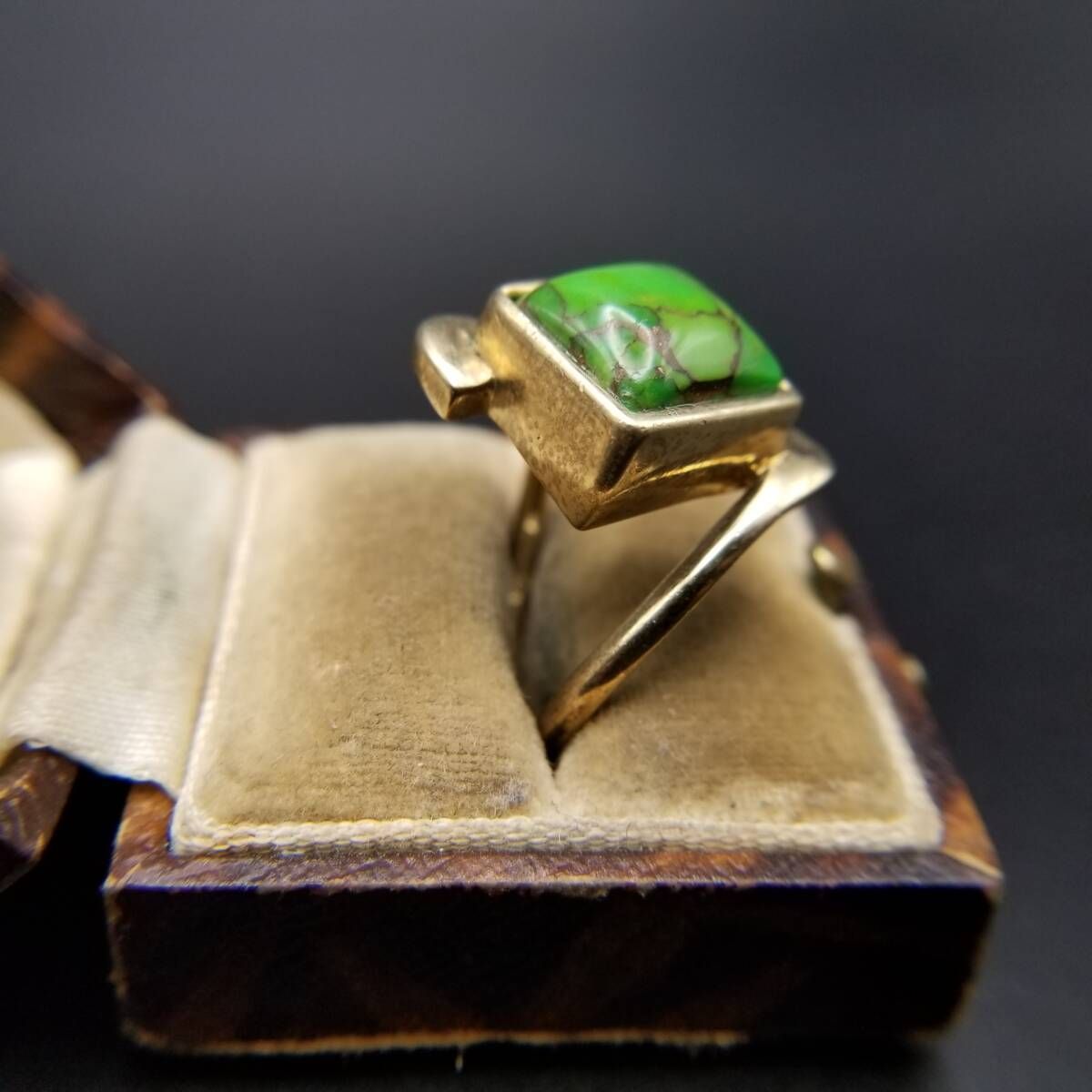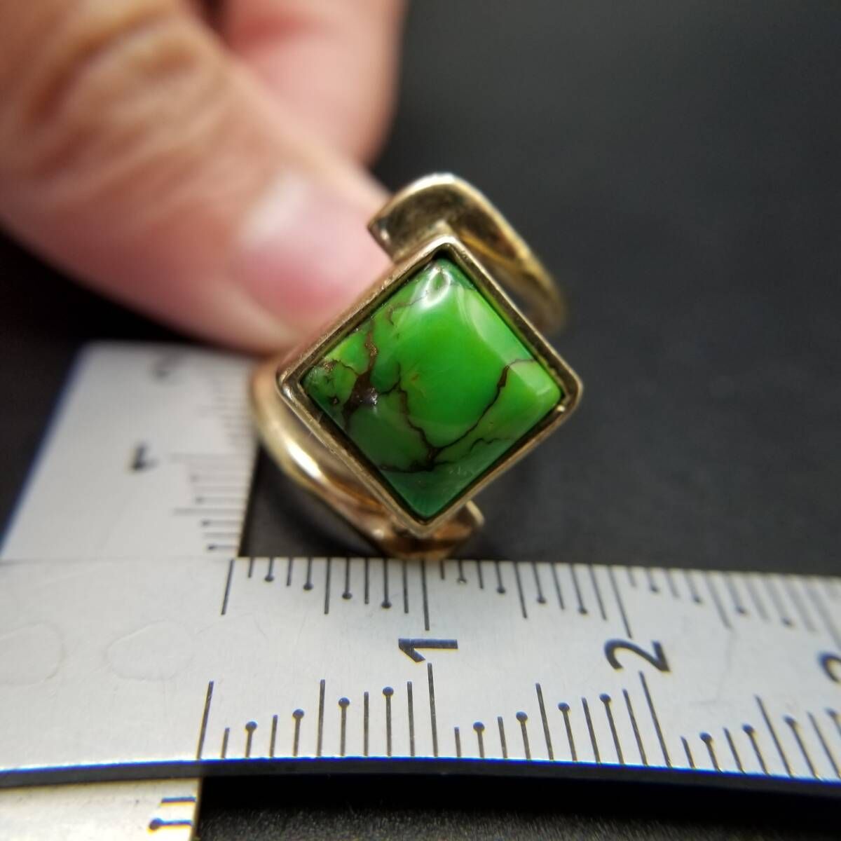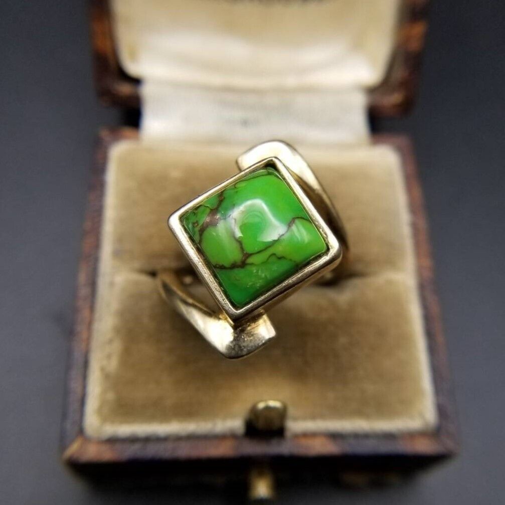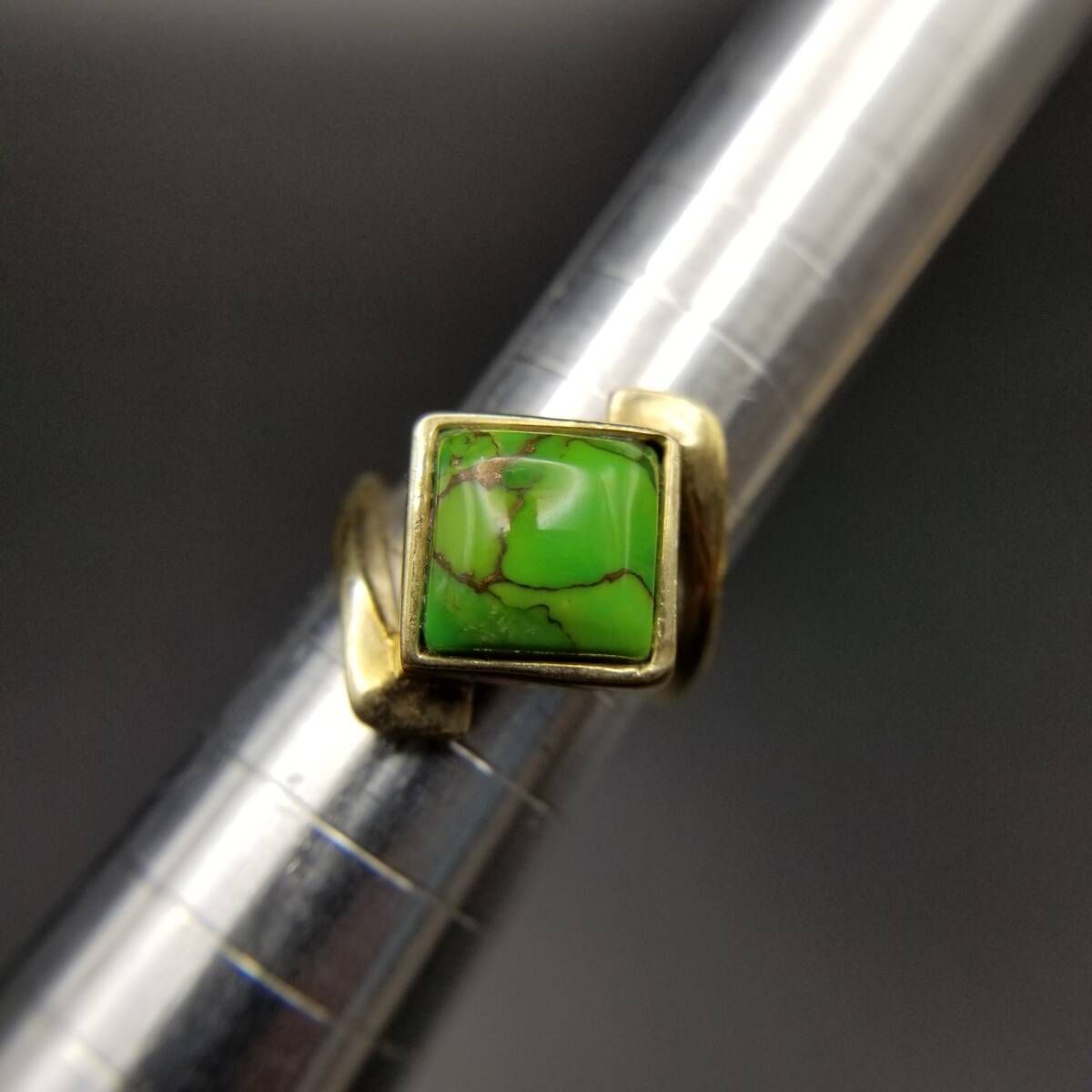 グリーンコッパーターコイズ ダイヤカット カボション 925 シルバー ヴィンテージ リング 指輪 銀 大粒 モダニスト ゴールドプレート R16-R