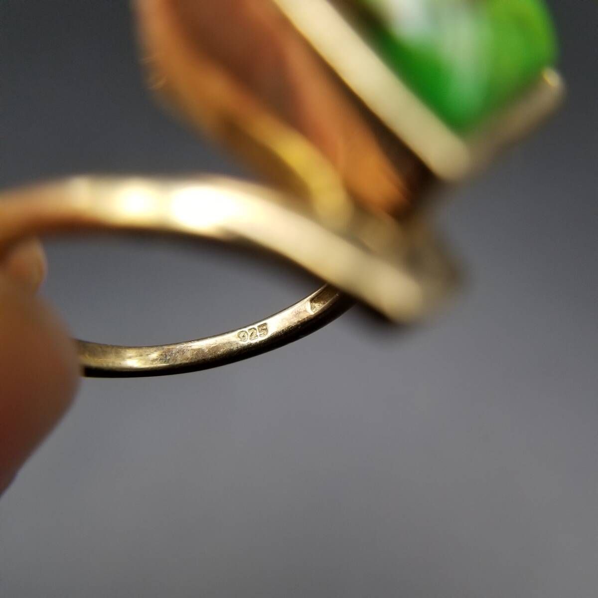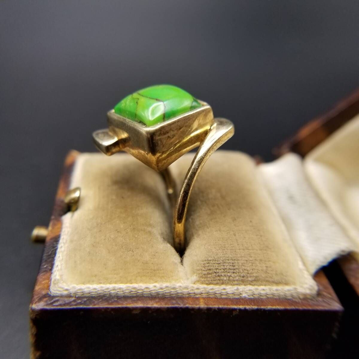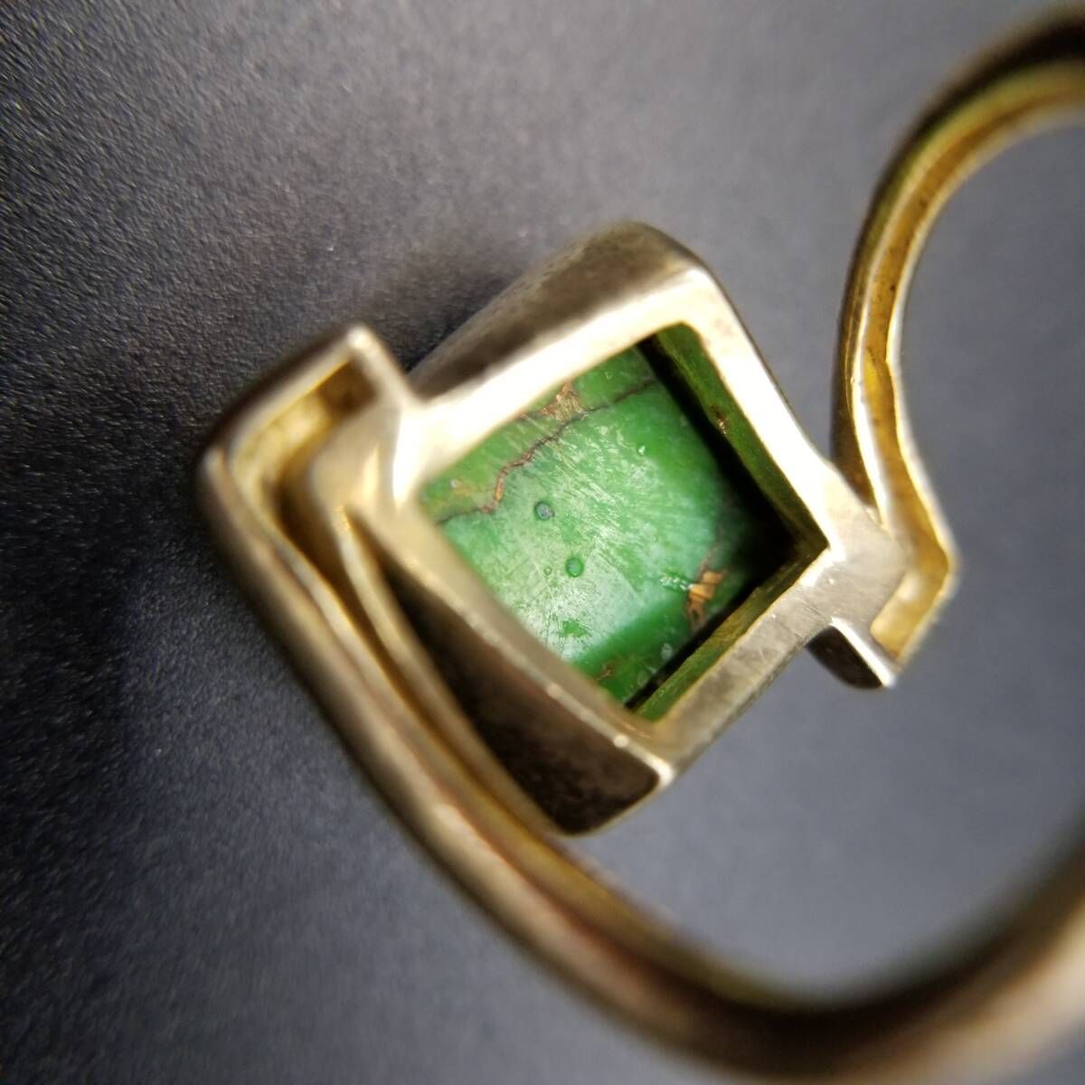 グリーンコッパーターコイズ ダイヤカット カボション 925 シルバー ヴィンテージ リング 指輪 銀 大粒 モダニスト ゴールドプレート R16-R