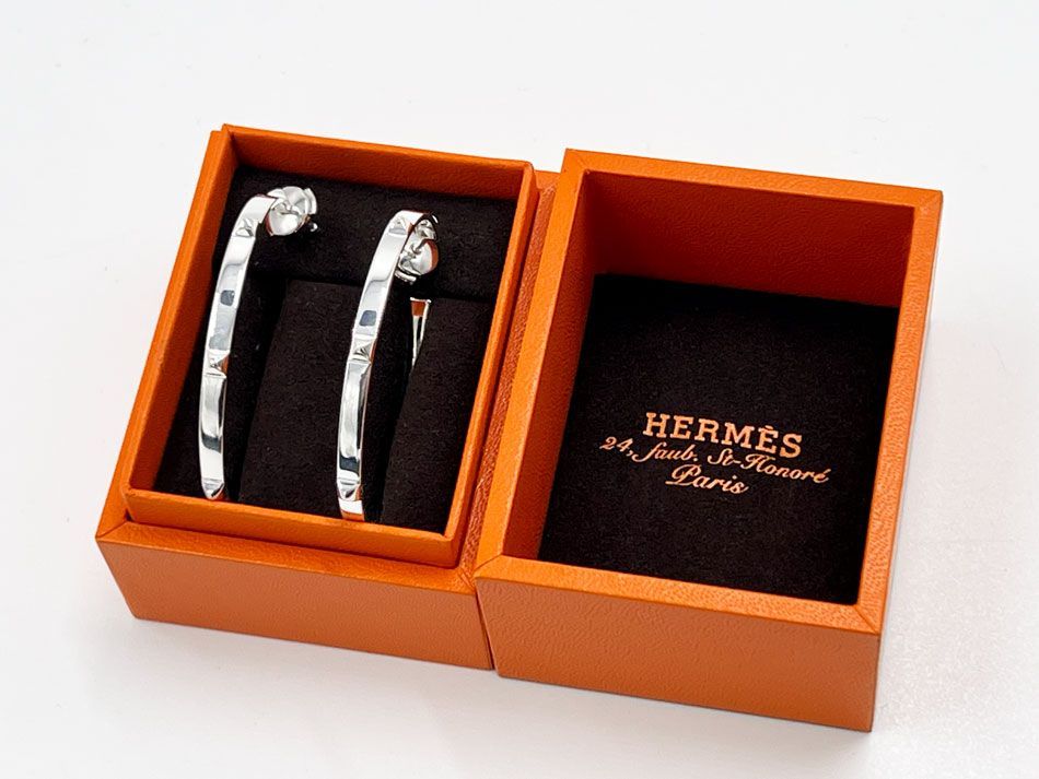 HERMES エルメス クルー・ドゥ・H ピアス フープ 両耳 925 シルバー H114504B 領収書 新品同様