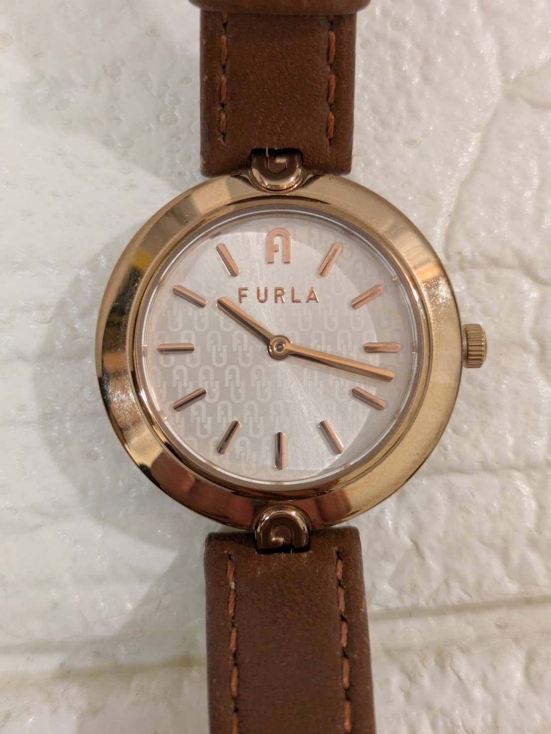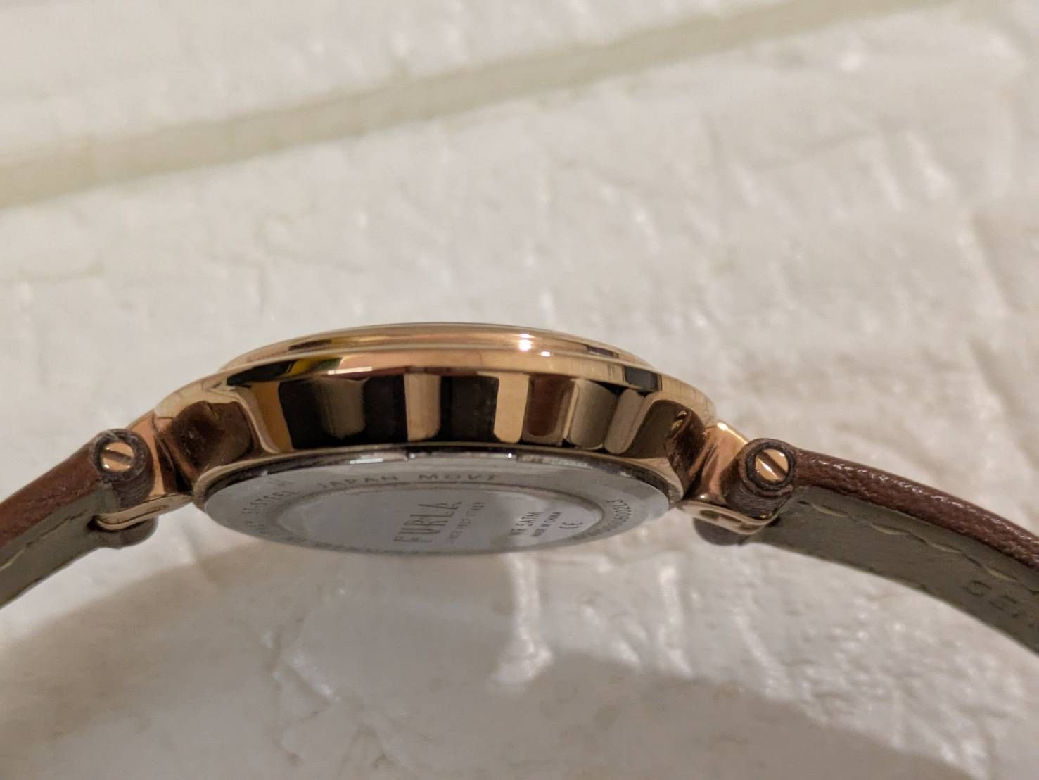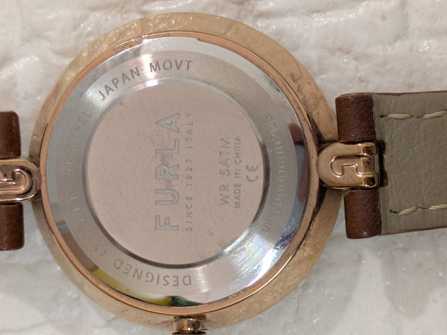 I【ヴィンテージ】FURLA フルラ レディース 腕時計 クォーツ 稼働品 レザーベルト ゴールドカラー 白文字盤 ファッション 付属品有