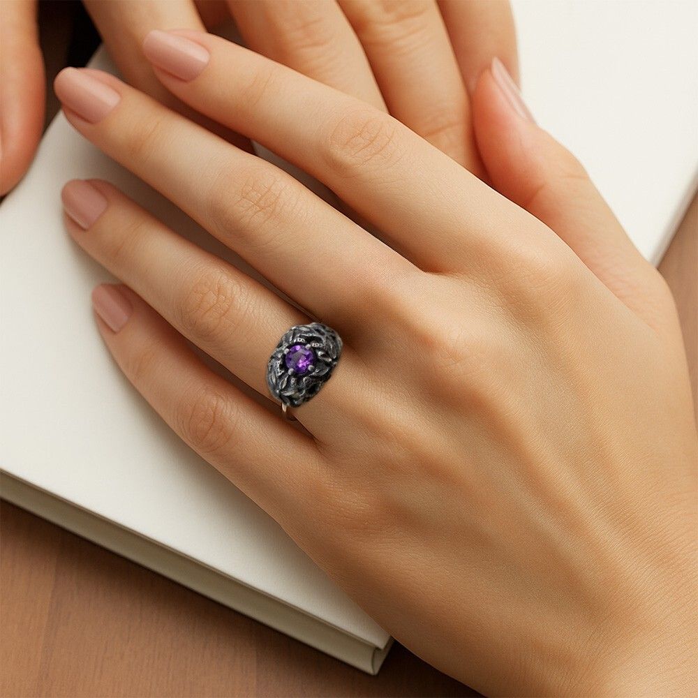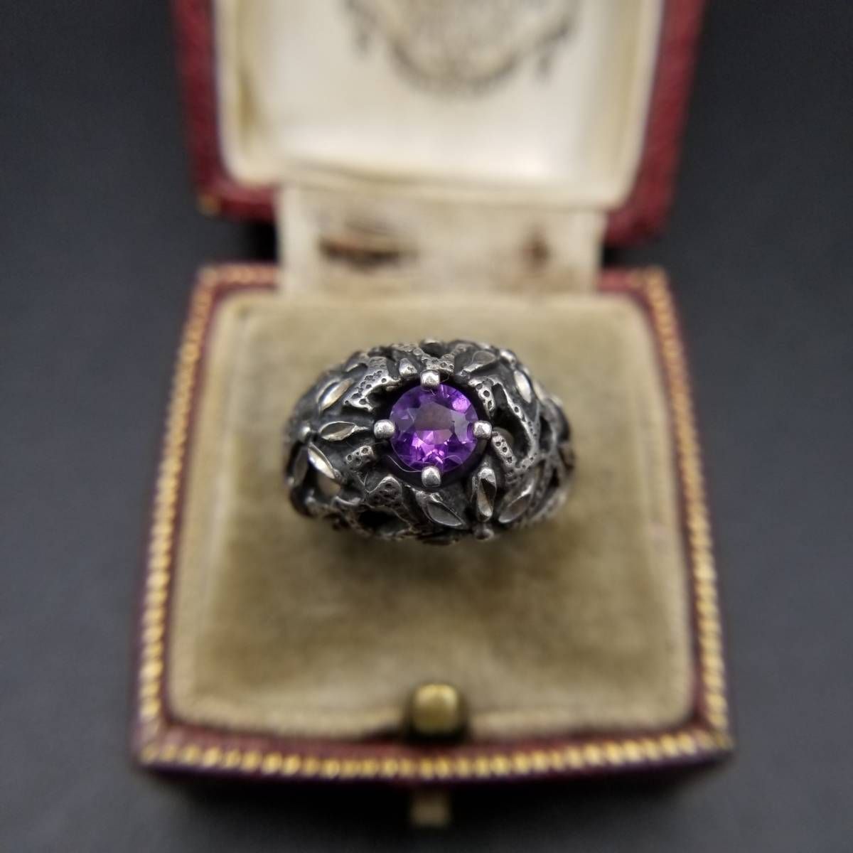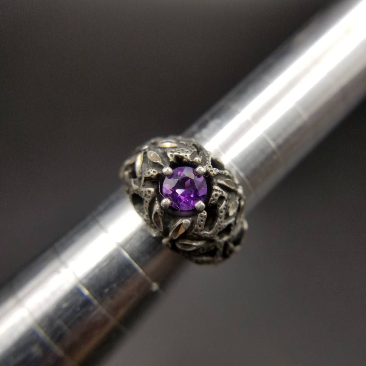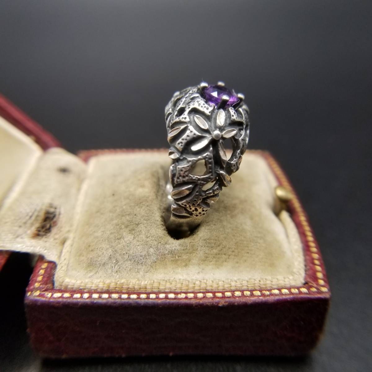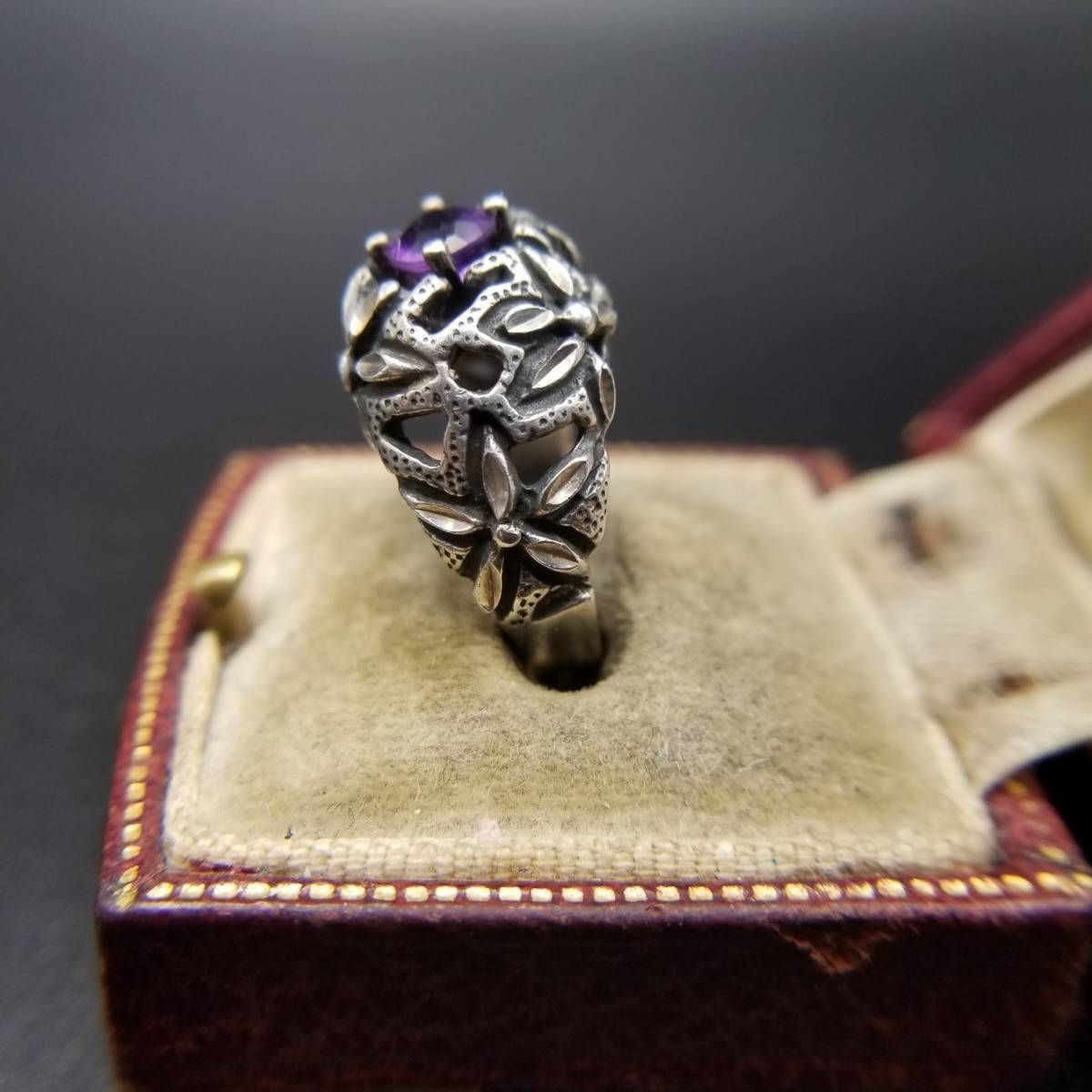 CAROLYN POLLACK アメジスト フラワードーム オープンワーク スターリングシルバー ビンテージ リング 5.5g 銀 指輪 USA VINTAGE Y9-Y