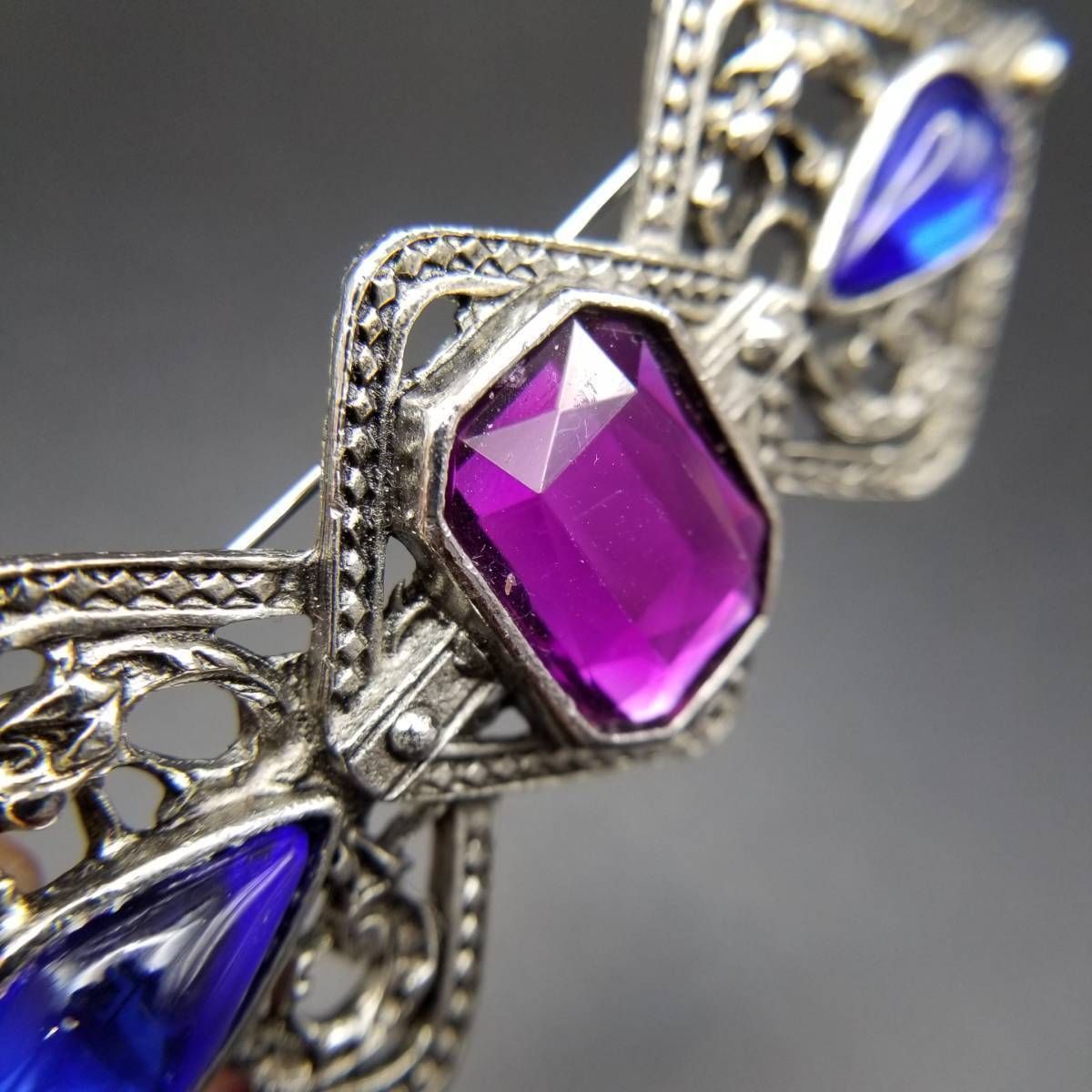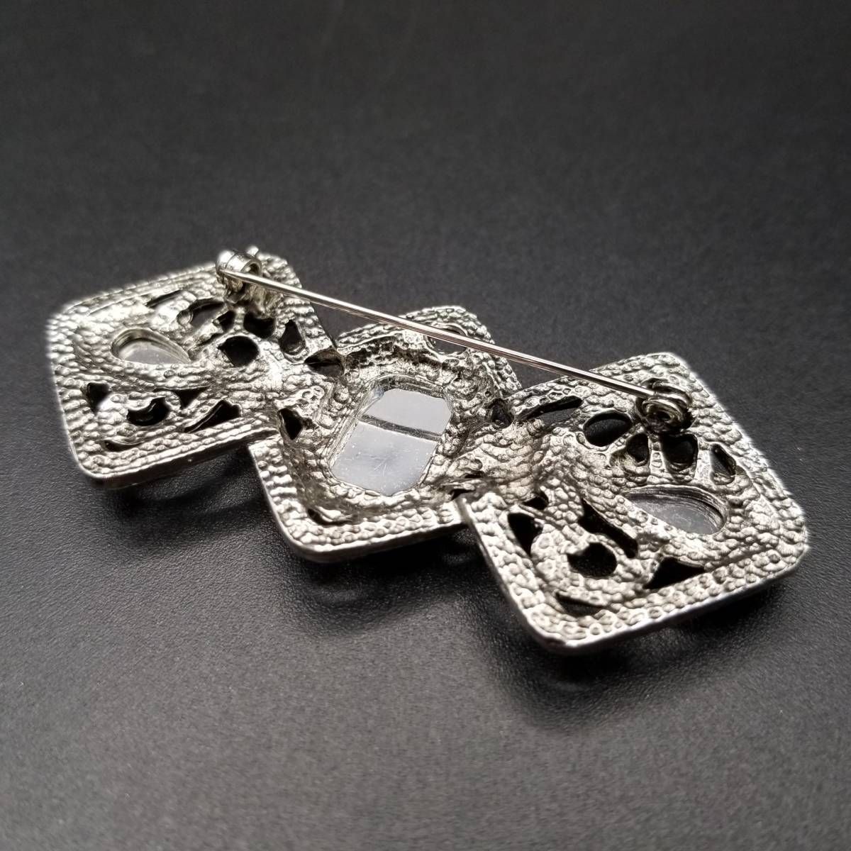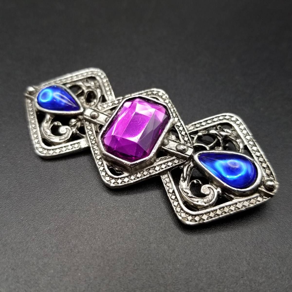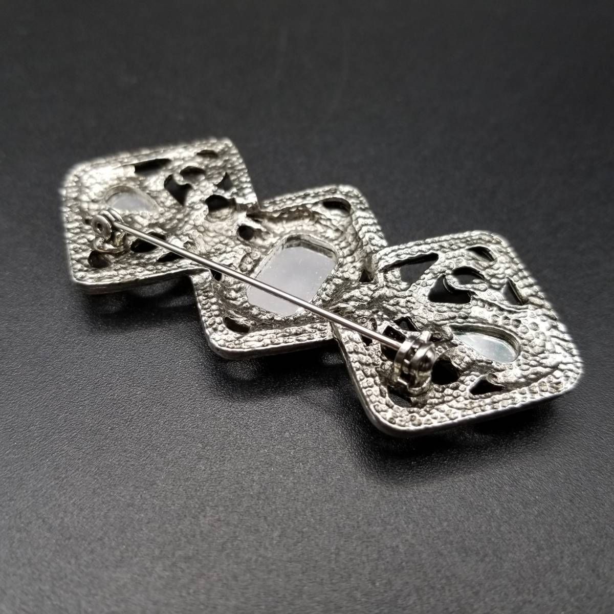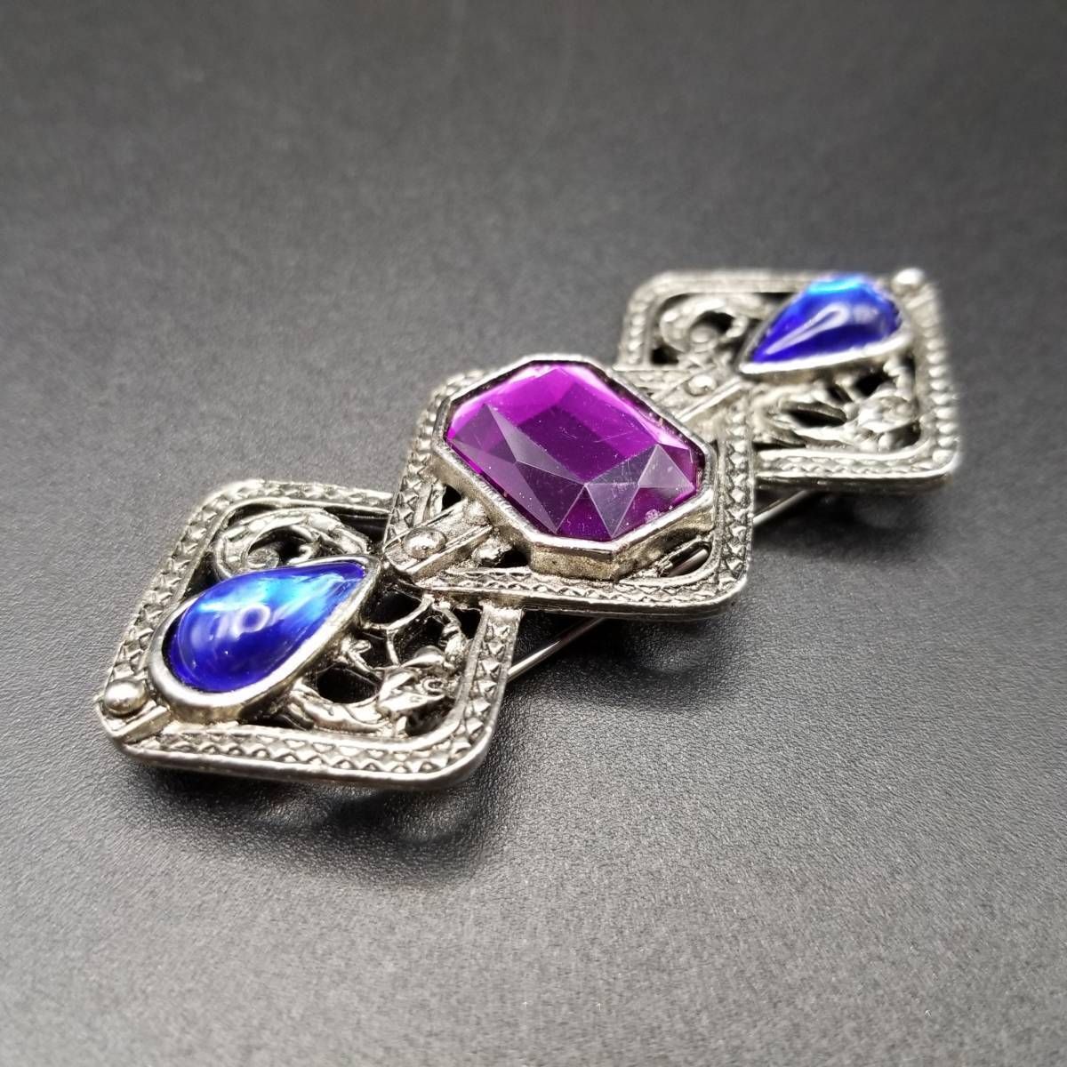 青と紫 クラシック デザイン 上品 ヴィンテージ ブローチ コスチュームジュエリー アールデコ 透かし 装飾 ひし形 クロス 10Y-H