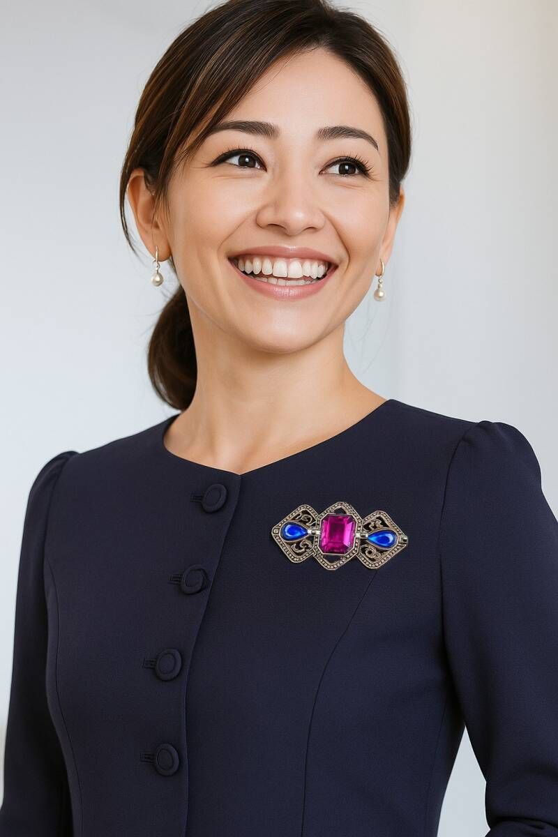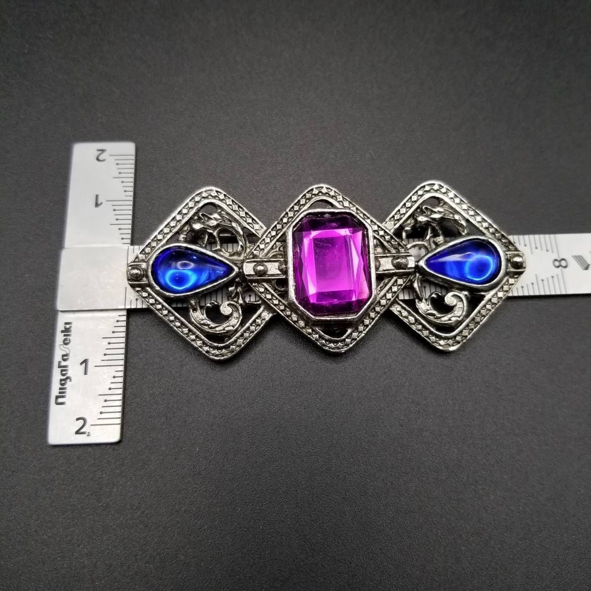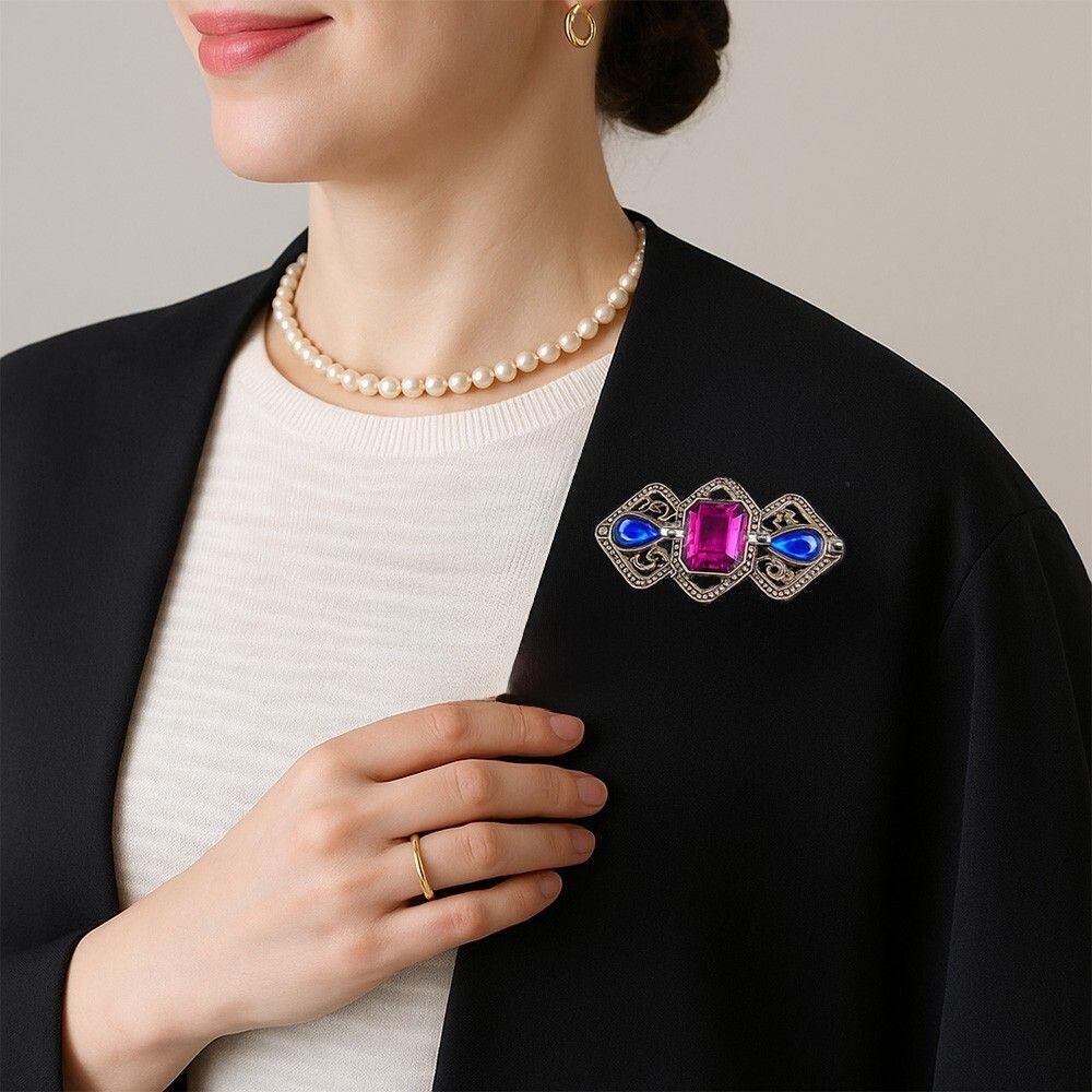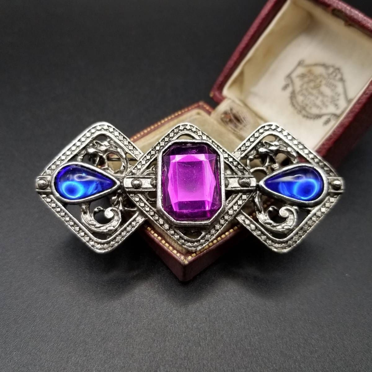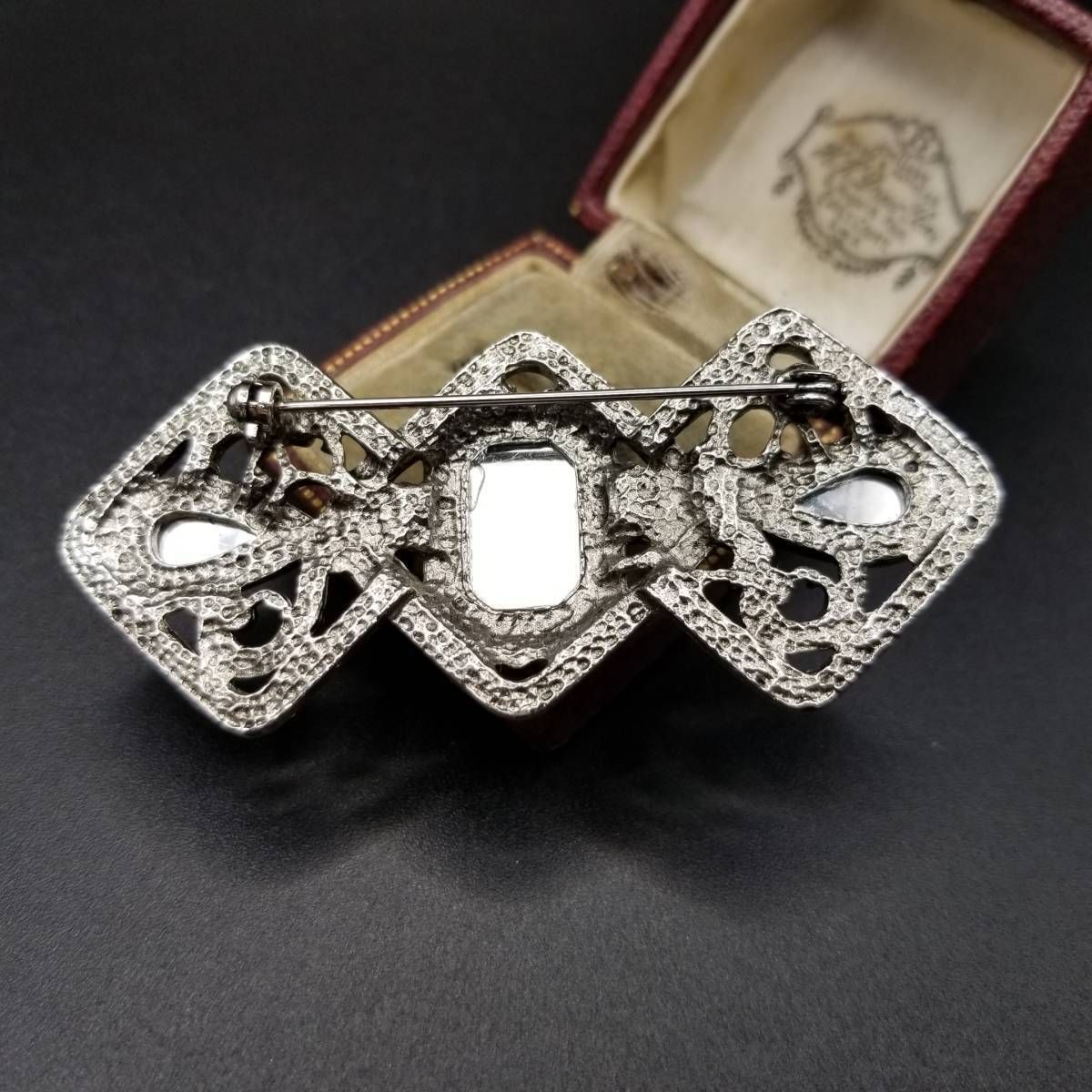 青と紫 クラシック デザイン 上品 ヴィンテージ ブローチ コスチュームジュエリー アールデコ 透かし 装飾 ひし形 クロス 10Y-H