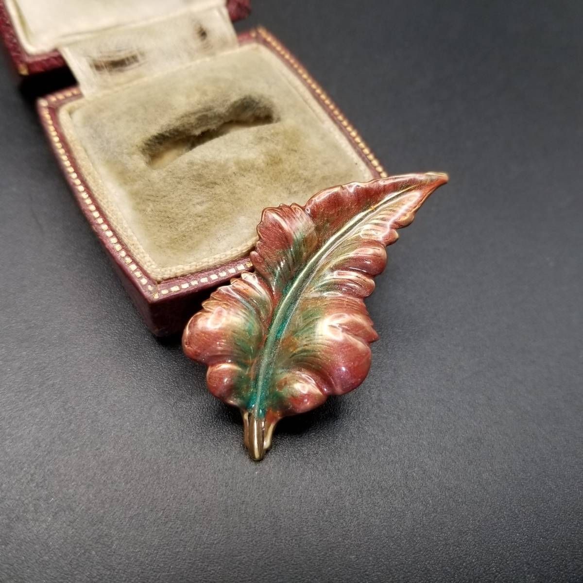 ブラウンリーフ 紅葉 エナメル ビンテージ ブローチ コスチュームジュエリー 秋色の葉 AUTUMN COLOUR 8Y-S