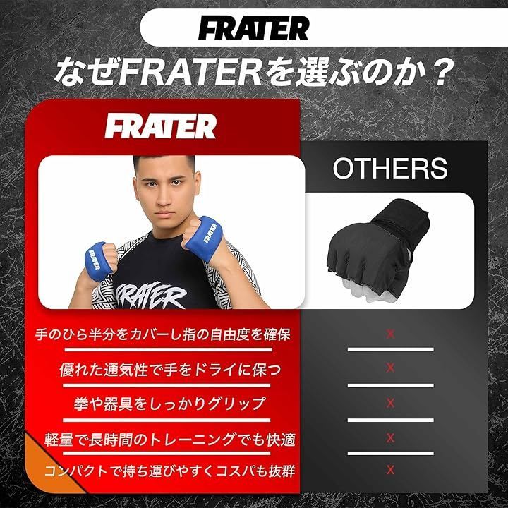 Frater International インナーグローブ バンテージ ボクシング MMA キックボクシング メンズ レディース 両手セット パンチング ミット打ち ハンドラップ 拳保護 (ブラック, Free)