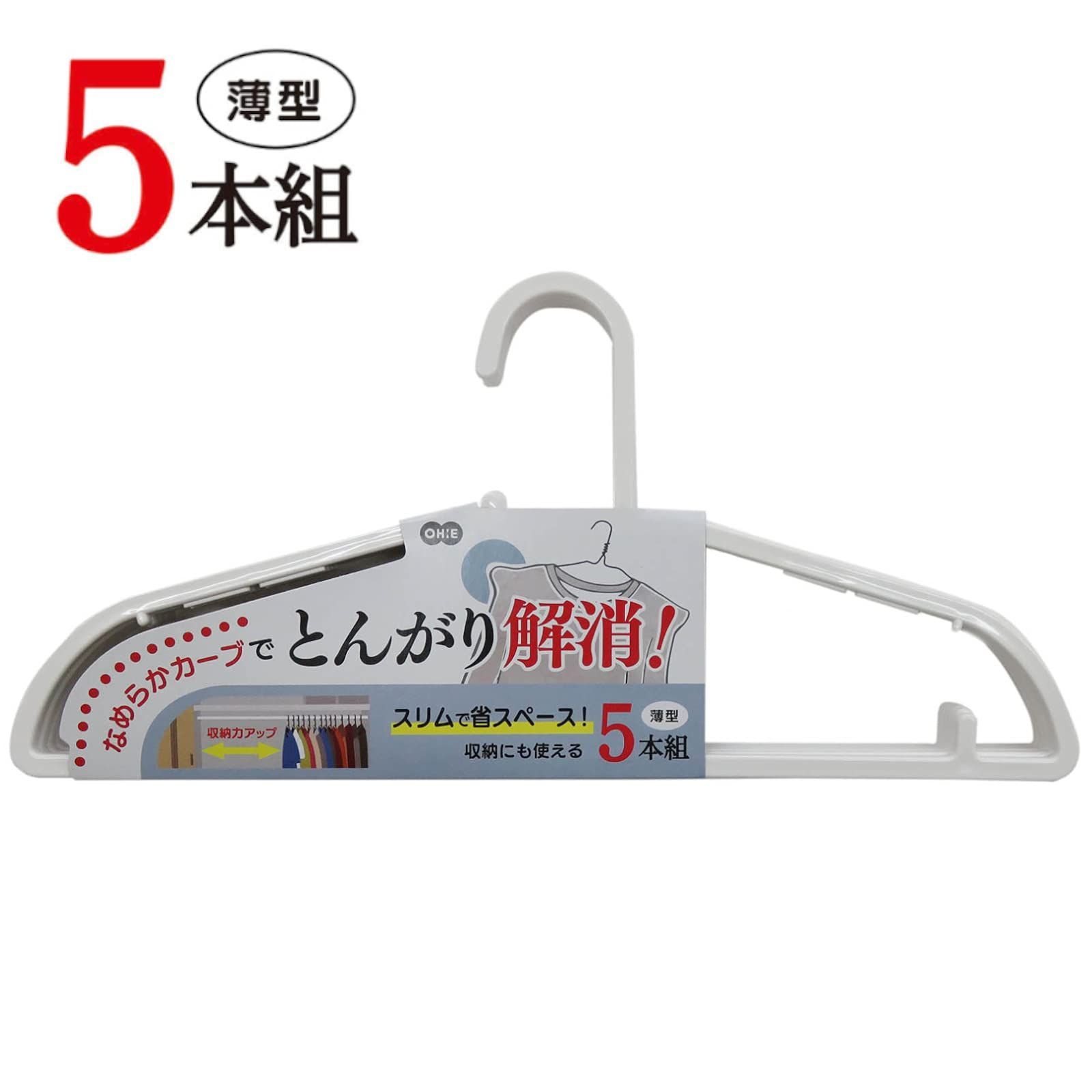 オーエ 洗濯 ハンガー ホワイト 縦18cm×横38cm×厚み5mm とんがり解消ハンガー なめらかカーブ 跡がつきにくい スリム 収納 5本セット (× 4)