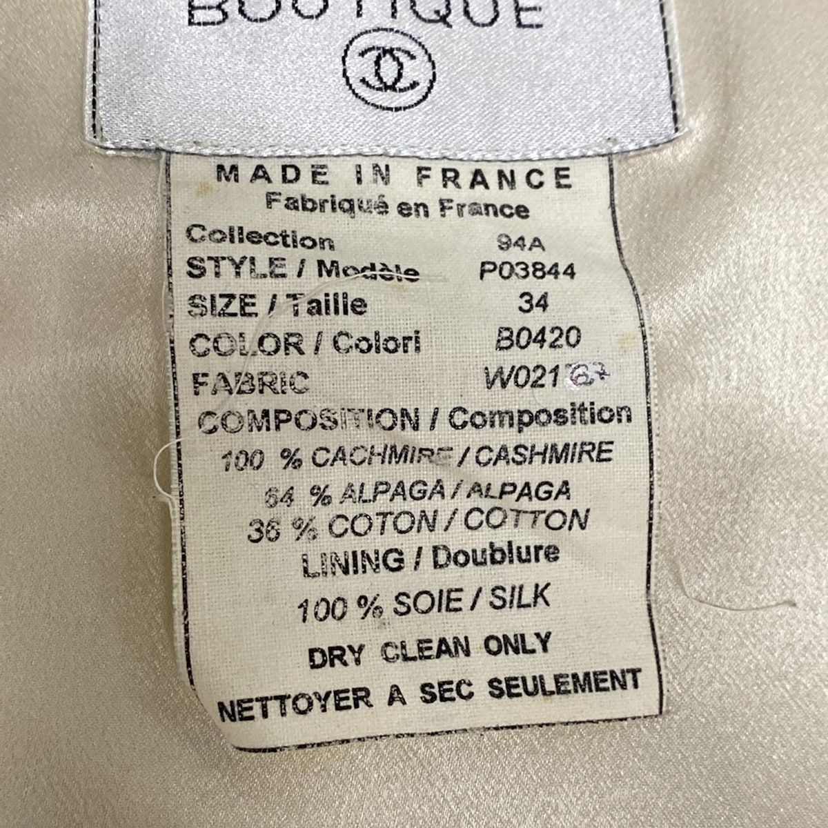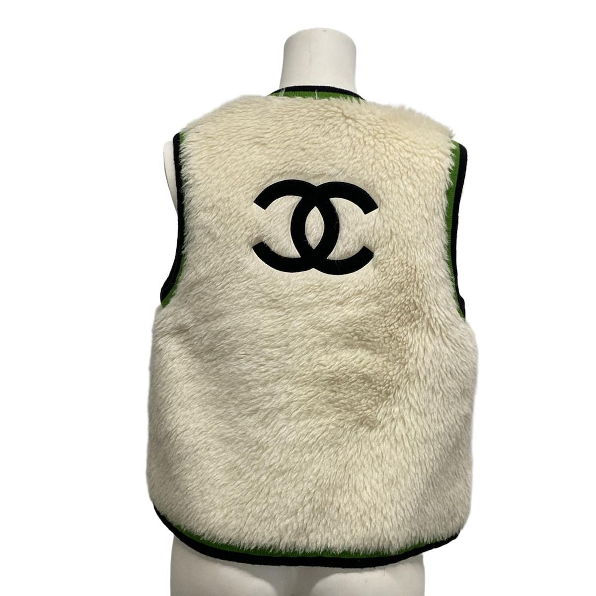 シャネル ベスト サイズ34 S レディース美品 P03844 アイボリー×グリーン×黒 1994年/アルパカ/ファー/ココマークパッチ カシミヤ