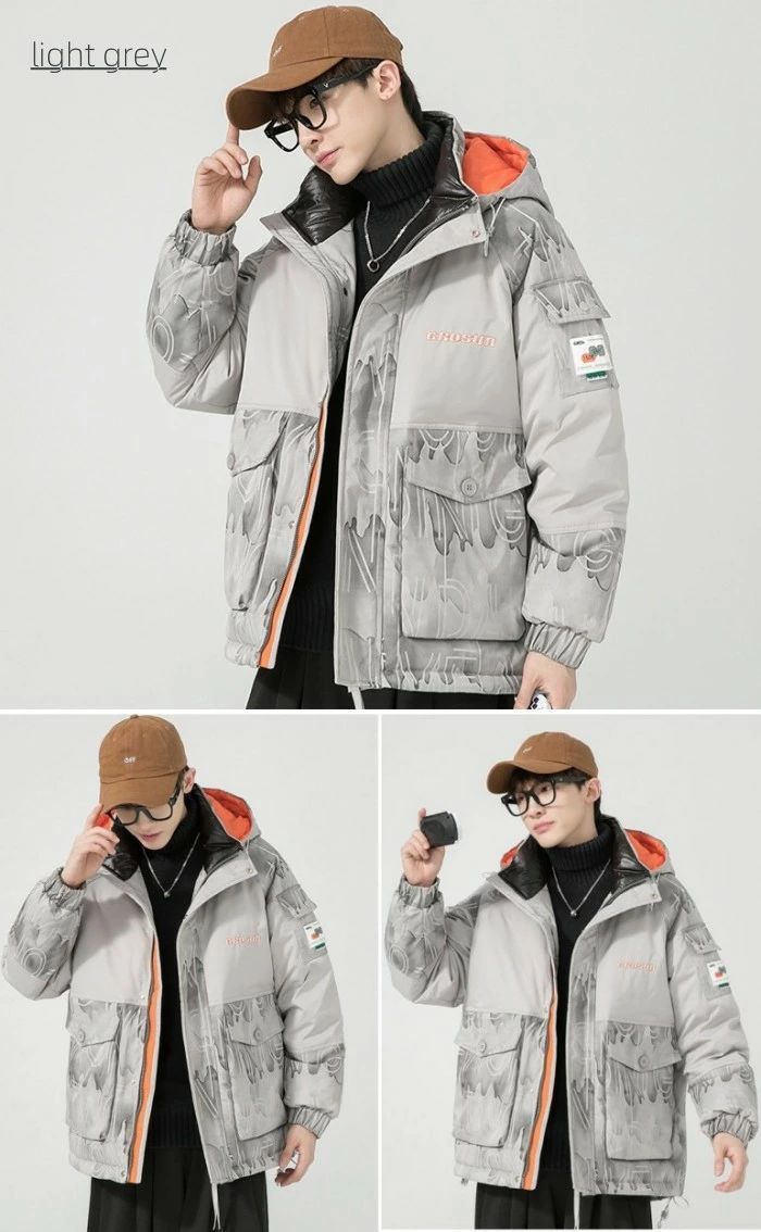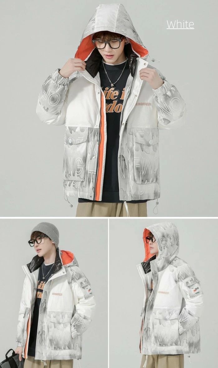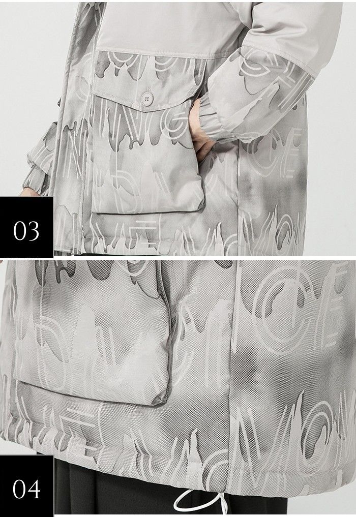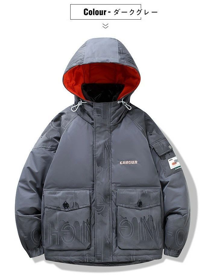 ダウン90% ダウンジャケット メンズジャケット ジップアップパーカー プリント柄 ショート丈コート フード付き ジャンパー 厚手 暖かい 防