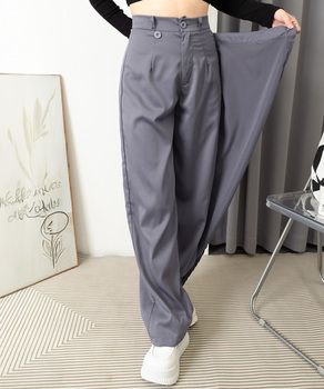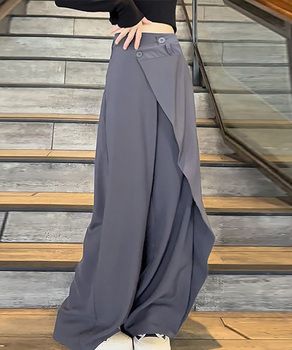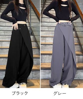 イレギュラー ハイウエスト ワイドパンツ オフィスカジュアル ストレートパンツ 非対称 美脚脚長 ロングパンツ 通勤OLきれいめカジュアル 体型カバーズボン黒 春秋夏ボトムス新作