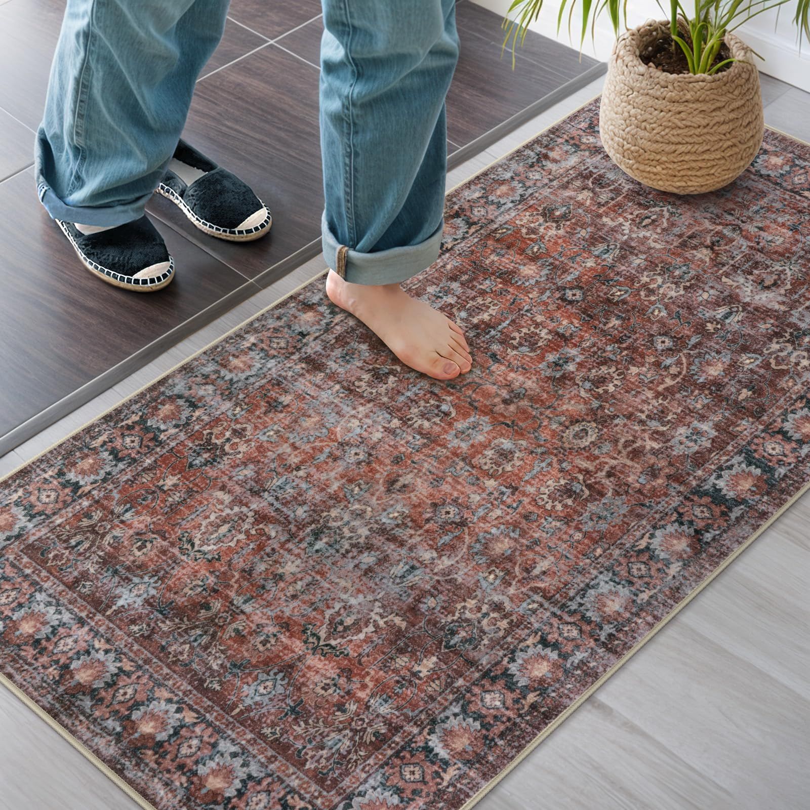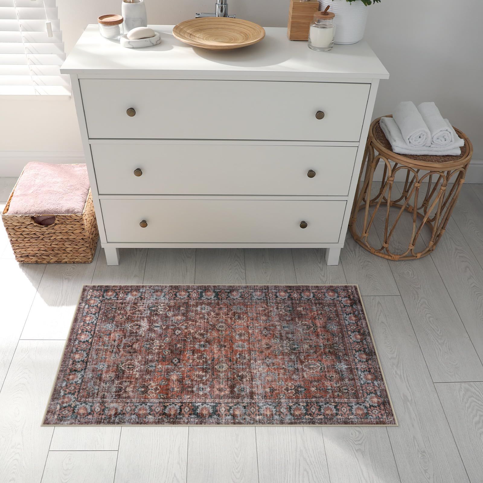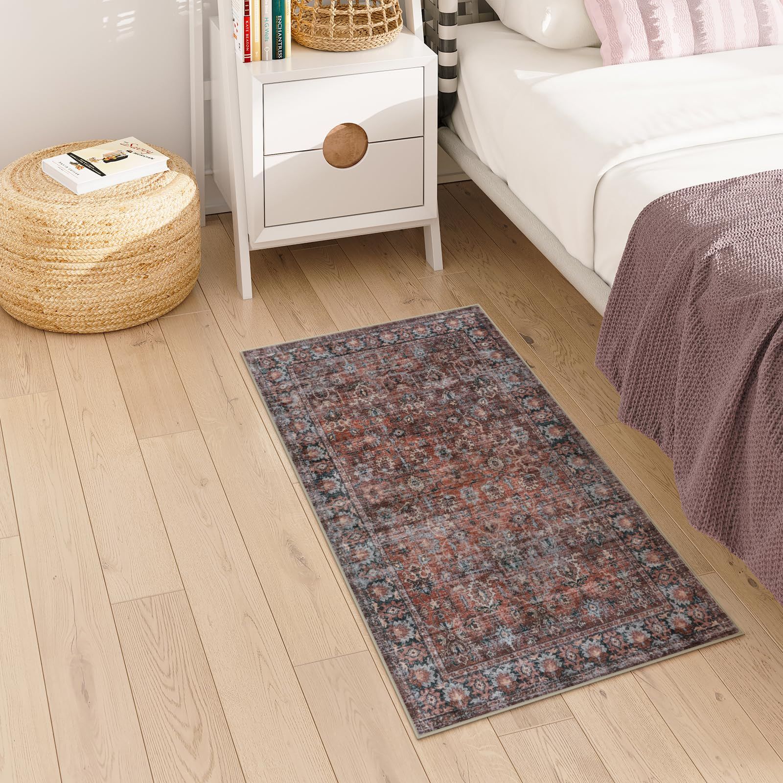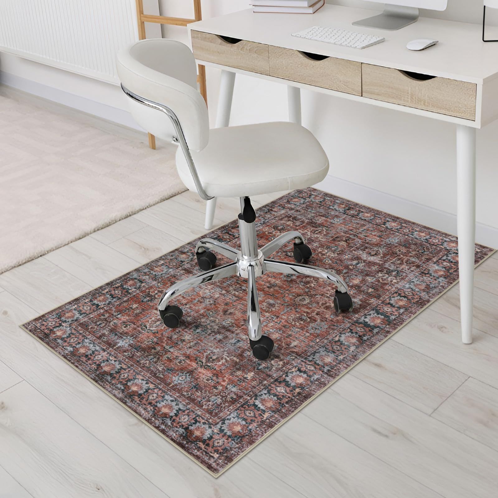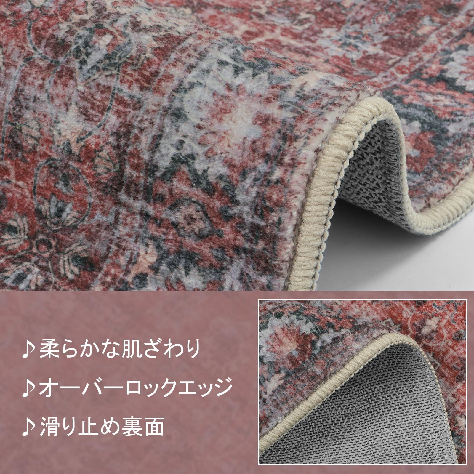 HAOCOO ラグマット 洗える 70×120cm オールシーズン適用 ペルシャ風 チェアマット ふわふわ おしゃれ 滑り止め 防ダニ 防臭 軽量 防音マット 室内用 デスクマット ダイニングマット アンティーク 花柄 レッド