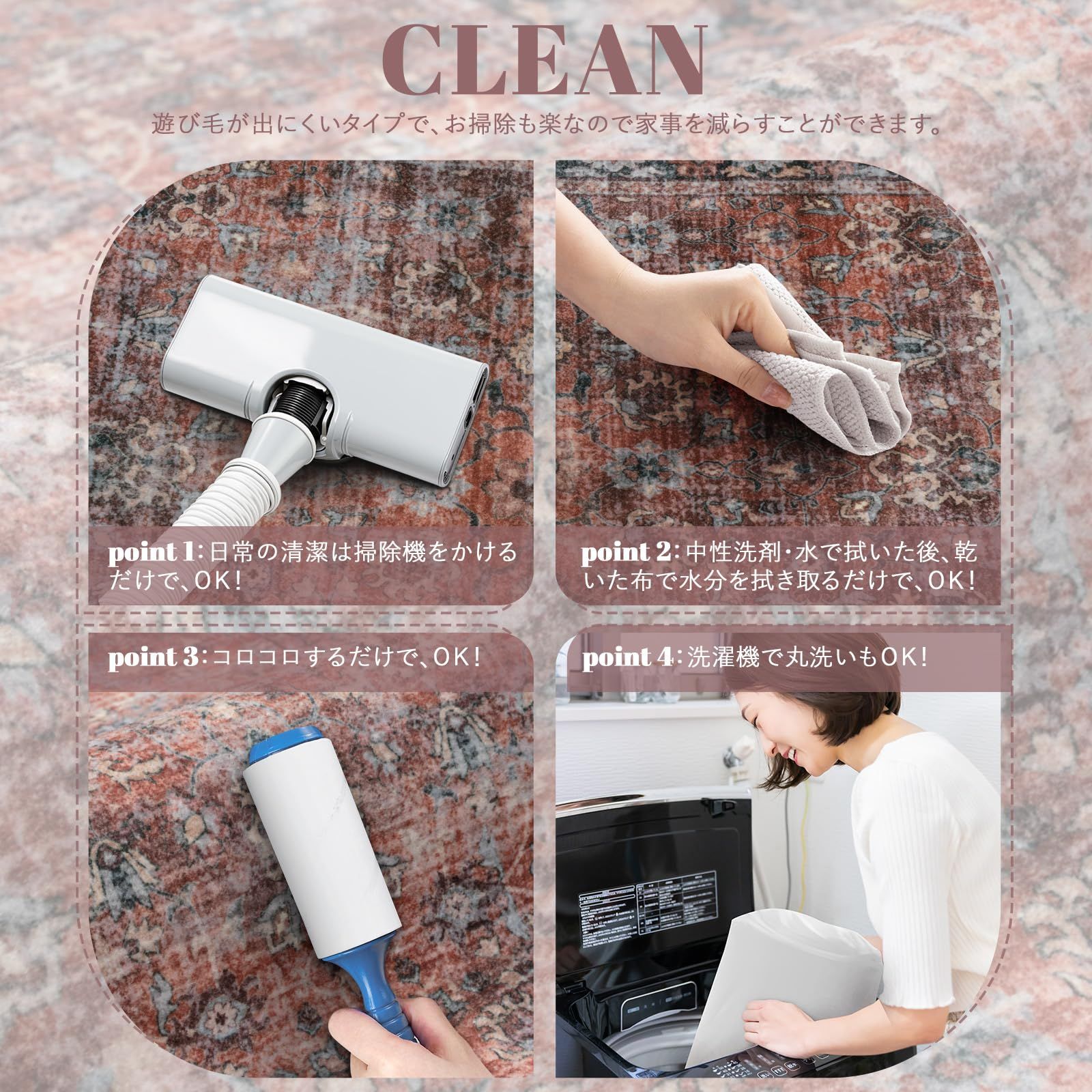 【お手入れ便利】毛足がないので、ゴミが絡みにくく、日常の清潔は粘着クリーナーをコロコロするや掃除機をか けるだけでキレイになります。また、汚れた場合は手洗いや洗濯ネットに入れて洗濯機で洗うことができます(ご 注意:風通しの良いところで陰干しし、アイロン、乾燥機の使用をお避け下さい。)