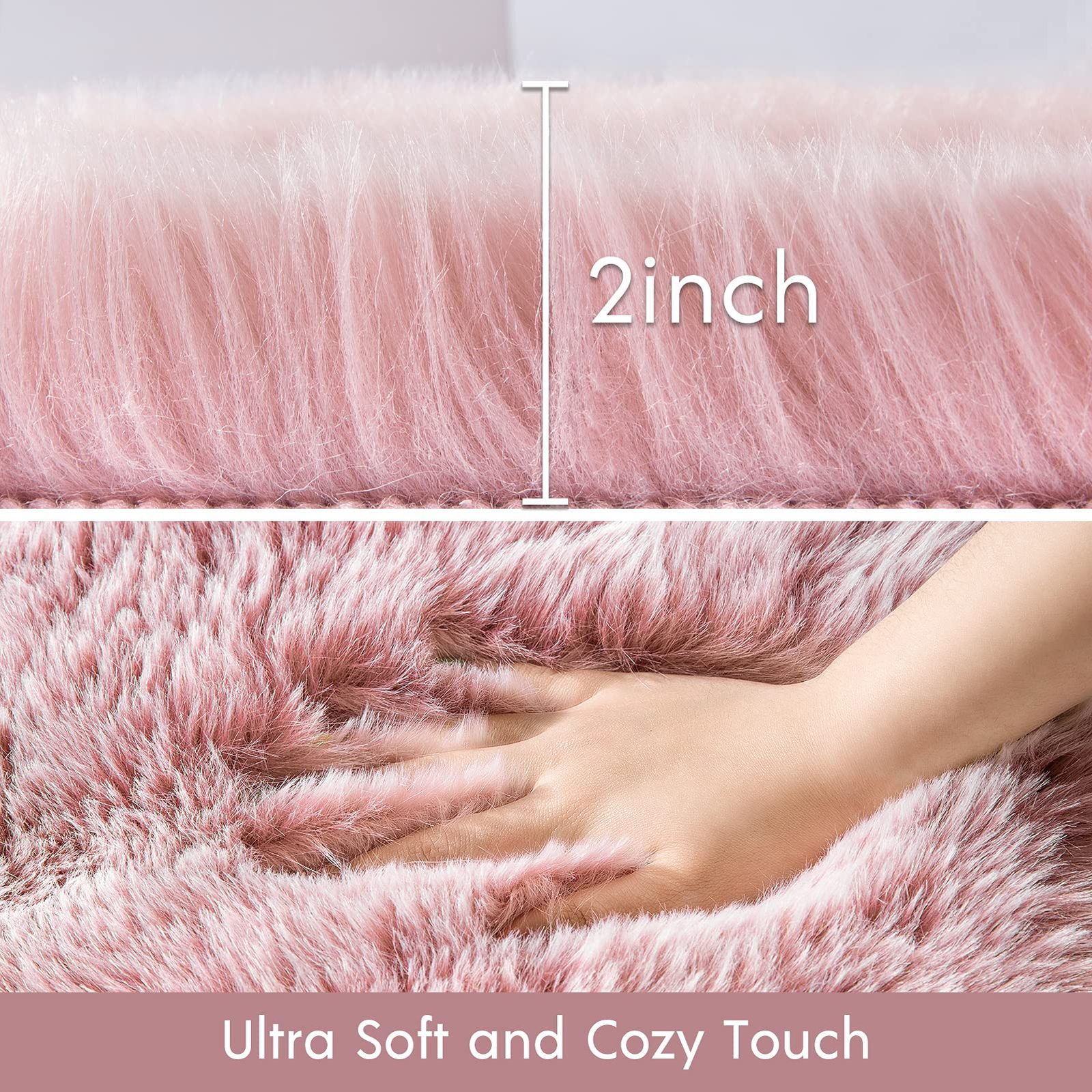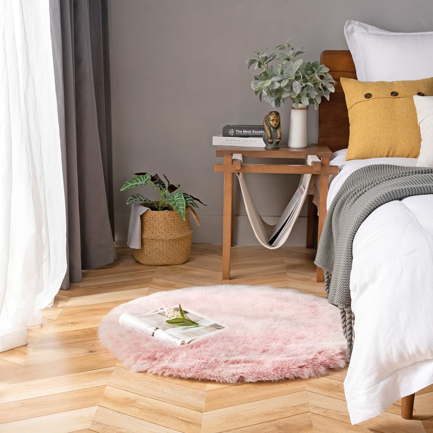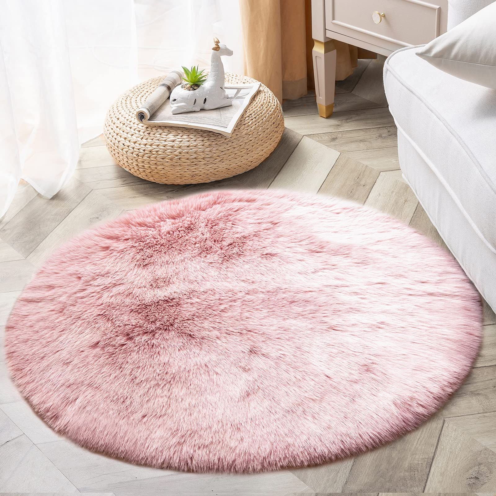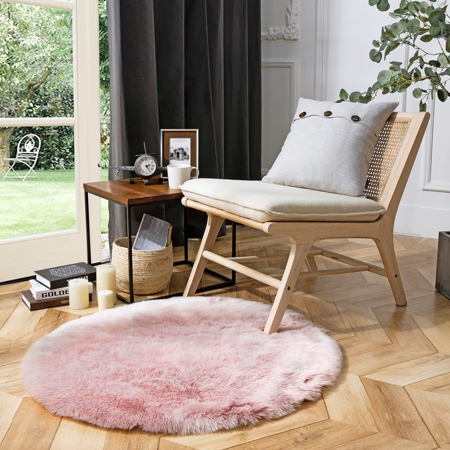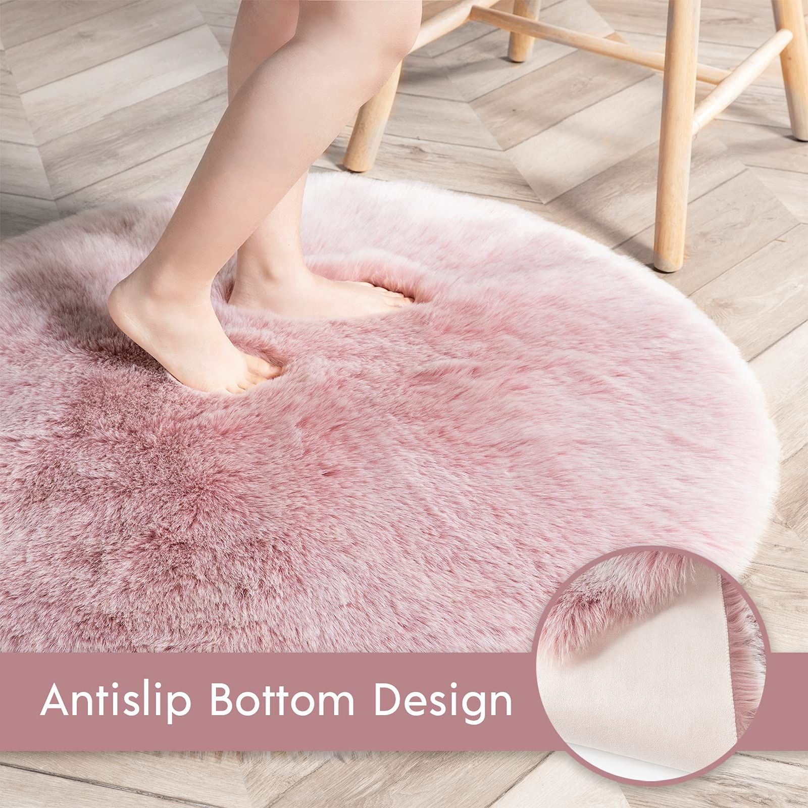 Phantoscope ラグマット カーペット ムートンマット 滑り止め付 柔らかい シープスキン 厚手 極厚毛足約5cm 手触り優しい ふわふわ 折り畳み 洗える 抗菌 防ダニ 北欧 キャンプ 冷房 床暖房対応 円形 直径90cm チップ・ホワイト/ピンク