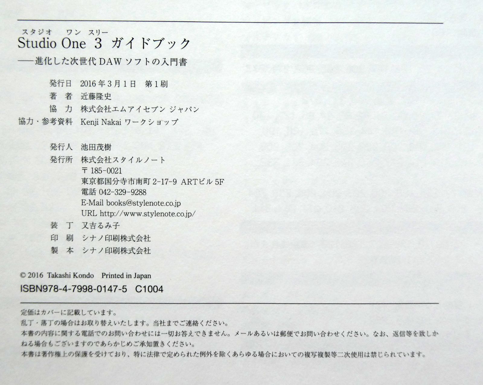 【中古】Studio One 3ガイドブック 進化した次世代DAWソフトの入門書 近藤隆史 スタイルノート