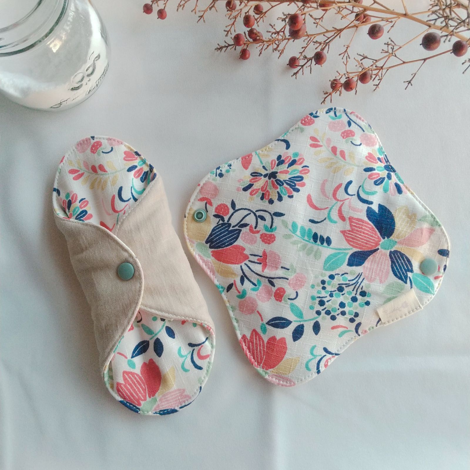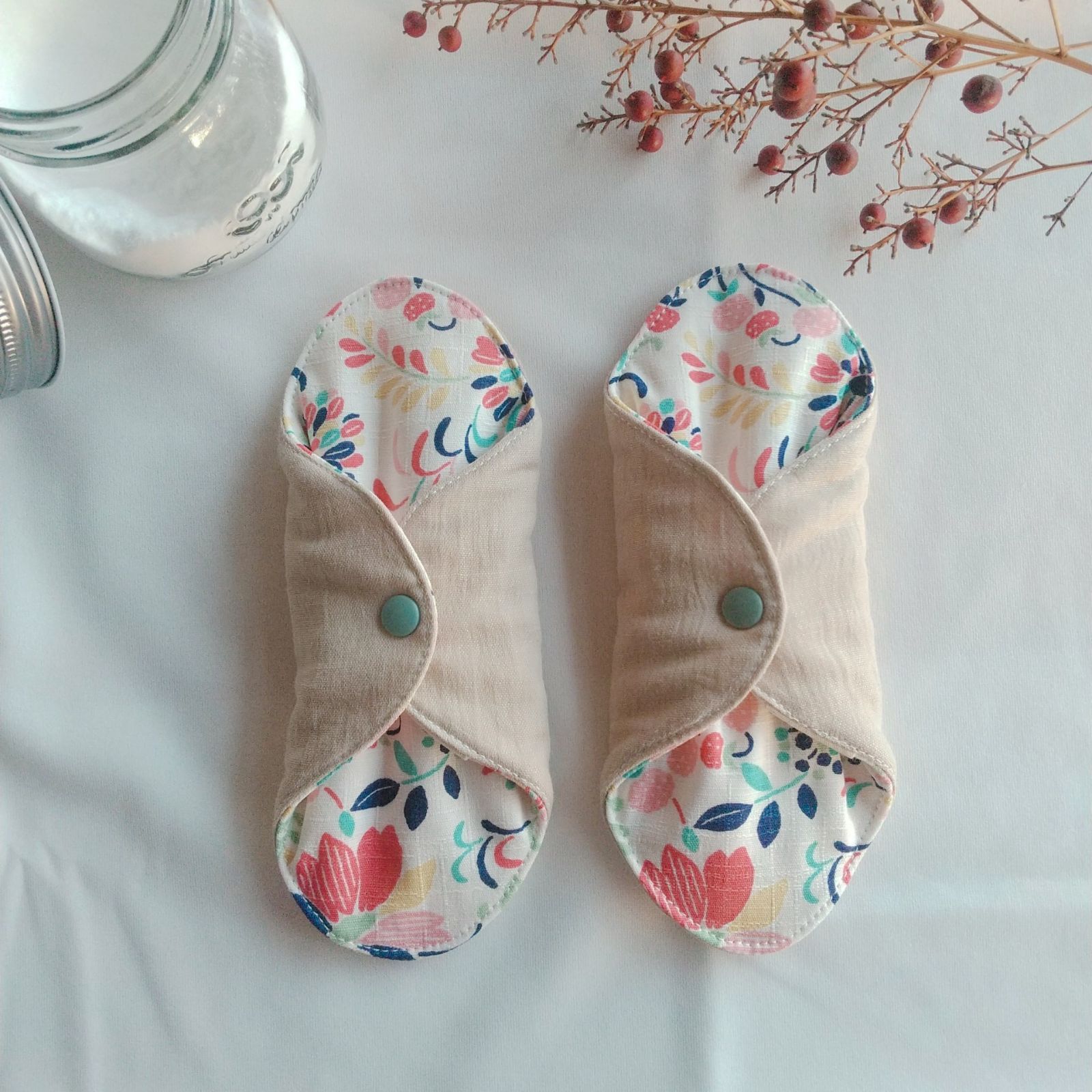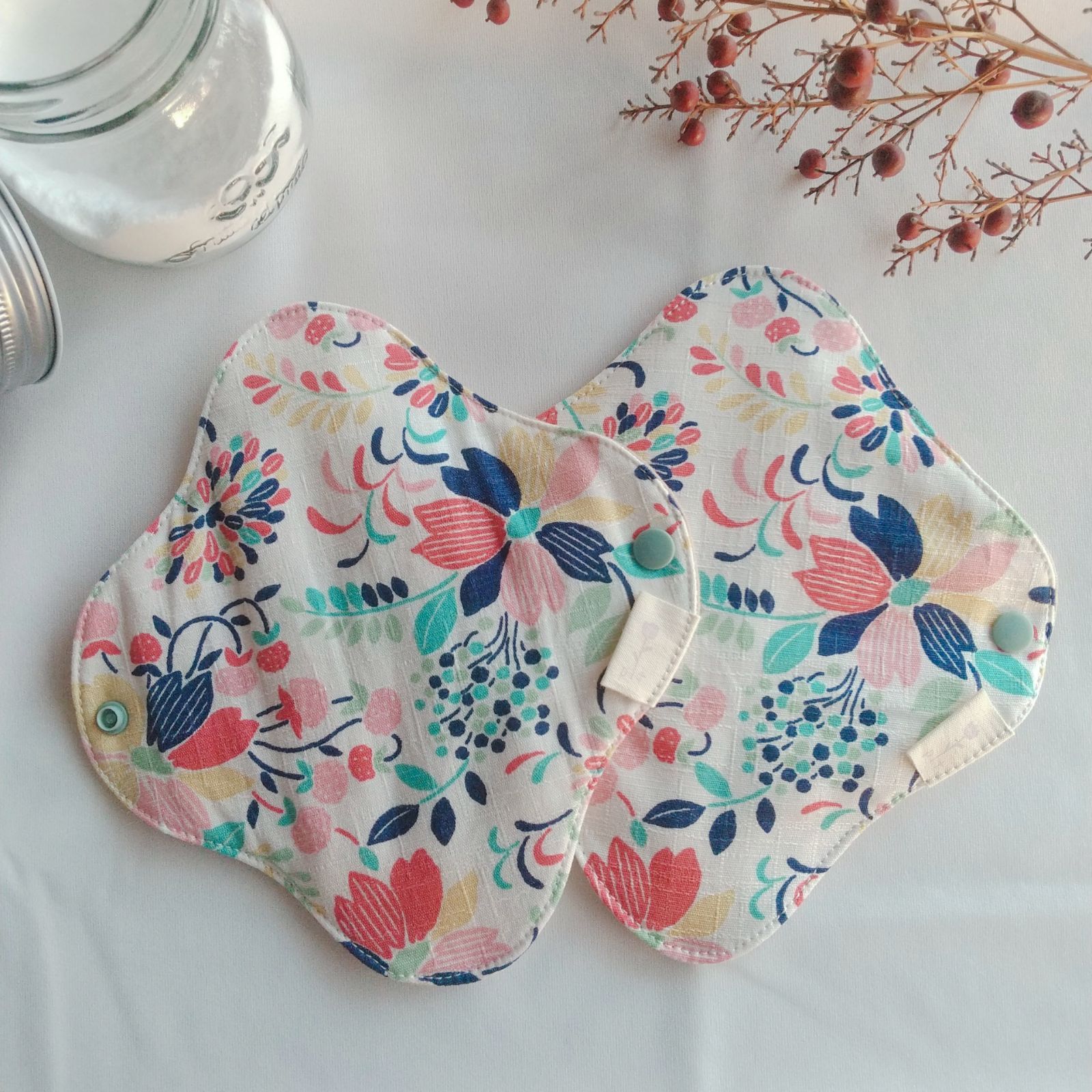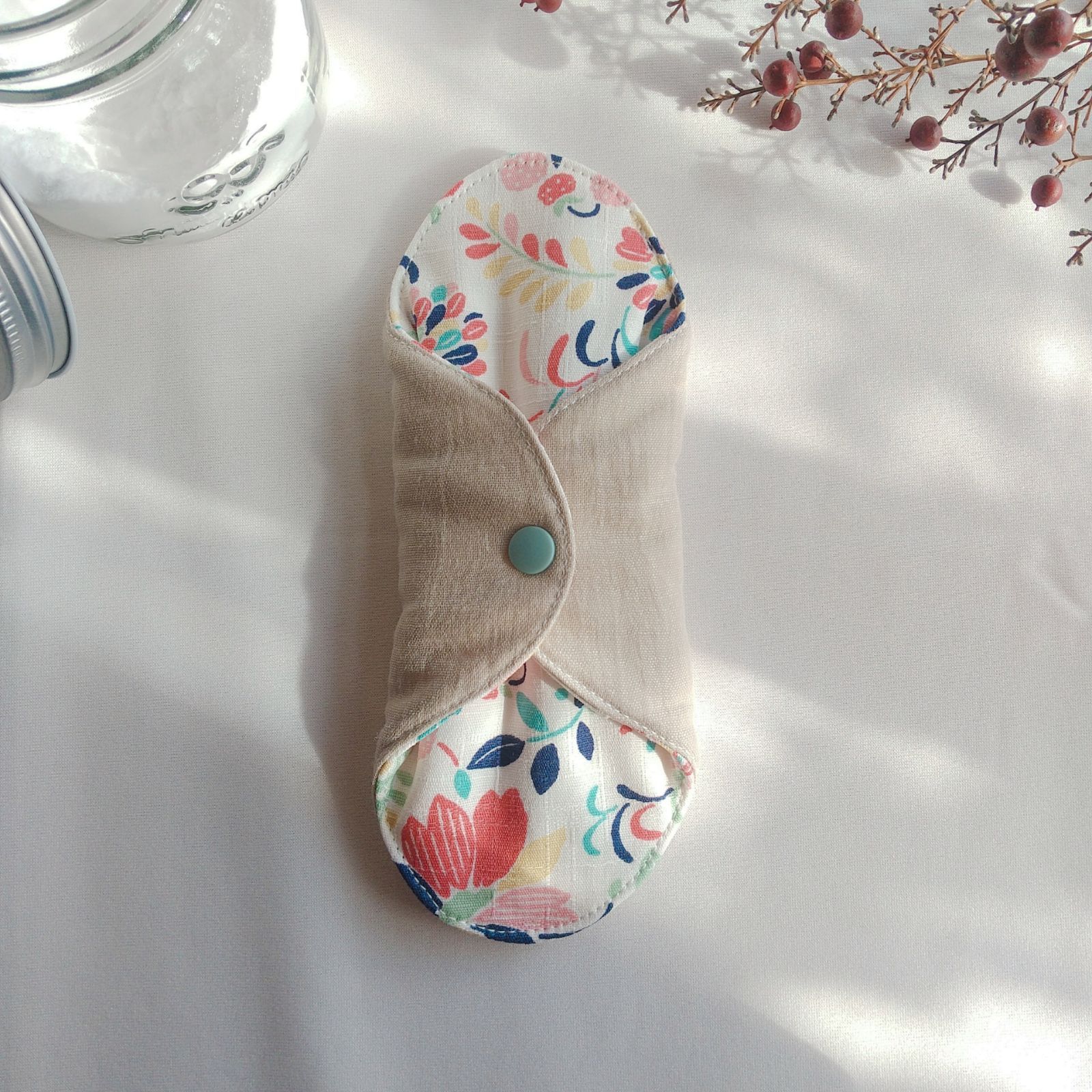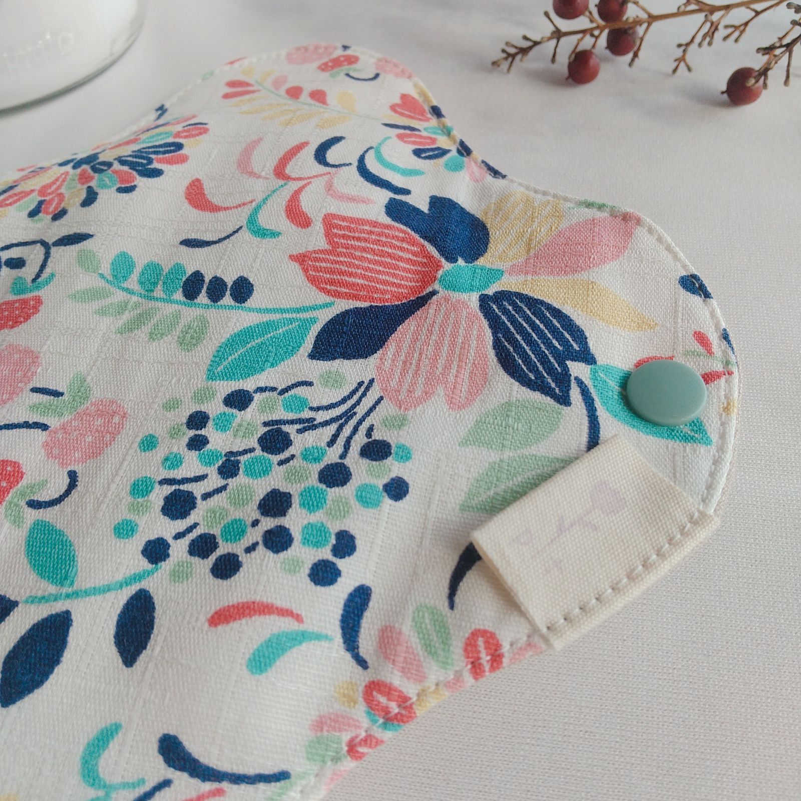 【布ナプキン】無添加ネルとシングルガーゼ 花と実柄 18cm 7層仕立て 1枚