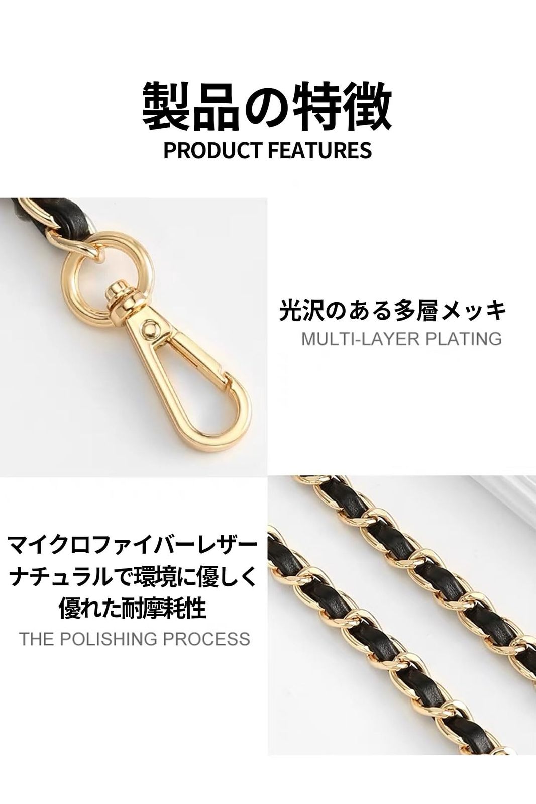 【メイン素材】合成皮革(PUレザー)のショルダーストラップ、軽量なメタルチェーンを外側に付け、バッグ全体に光沢感を与え、エッジの効いたスタイルに仕上げています。 【多くのスタイル】豊富なカラーバリエーションとデザイン(フルチェーンタイプと一部レザーショルダーストラップ付き)からお選びいただけます。 【高品質なPUレザー】プレミアムPUレザーと頑丈な合金製バックルを使用し、本革に近い柔らかさ、質感、感触を持ちながら、より耐久性の高いストラップです。 折れたり、変形したり、剥がれたりしにくく、何年も使える。ショルダー 紐べて非常に軽く。肩に掛けても重くない軽量な 、で長時間のご使用にもおすすめです。 【理想的な代替品】両端に2つの回転バックルが付いており、簡単に取り付け、使用することができます。 バックルを留めるだけで、縫い目のない新品のバッグが完成します。高品質と絶妙な革のバッグ用ショルダーベルトはあなたのバッグ、理想的な交換によく合い。 【幅広く使用】フックできるリングがあるバッグであれば、お手持ちのバッグに取り付けることができます。財布、クラッチバッグ、ハンドバッグ、ショルダーバッグ、アンダーアームバッグ、クロスボディバッグ、ラップトップバッグ。*に注意:お客様の端末環境、画面設定により、実際の商品と色が異なって見える場合がございます。