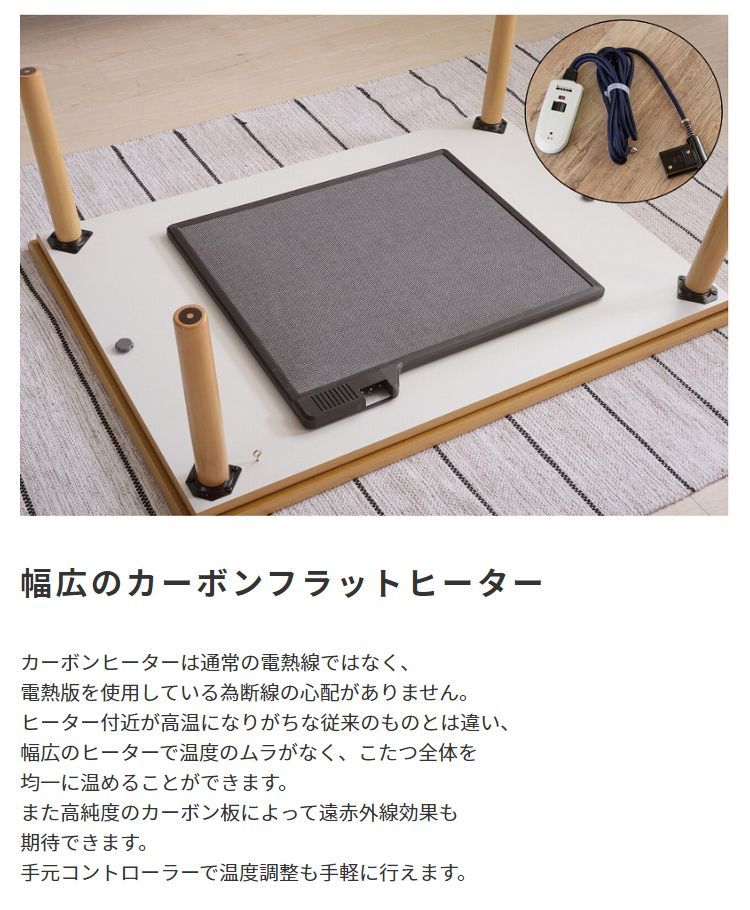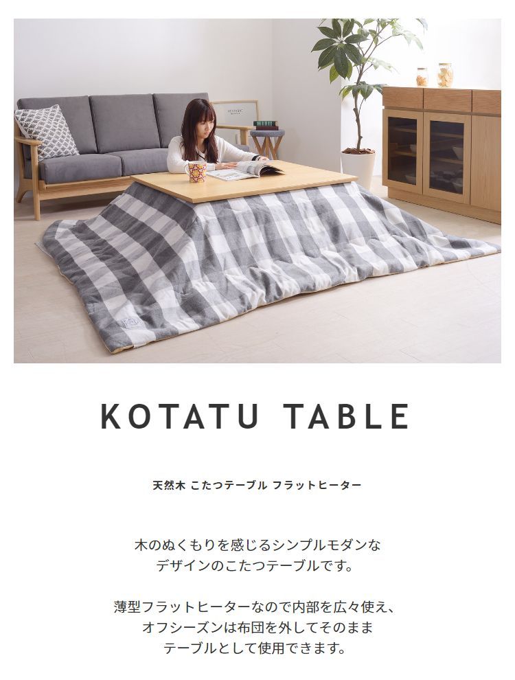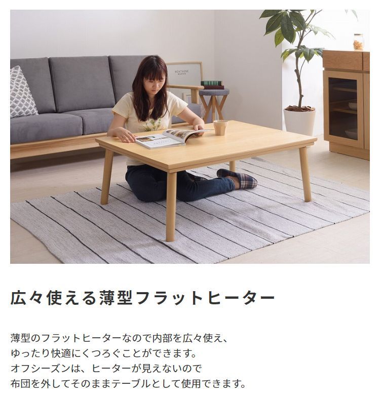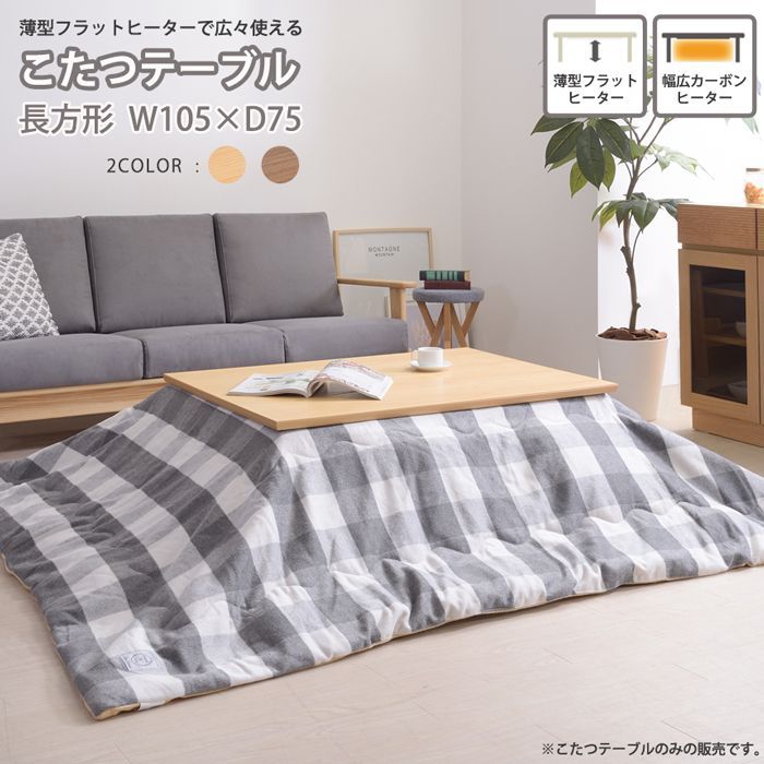 [105×75cm] 天然木 こたつテーブル フラットヒーター 長方形