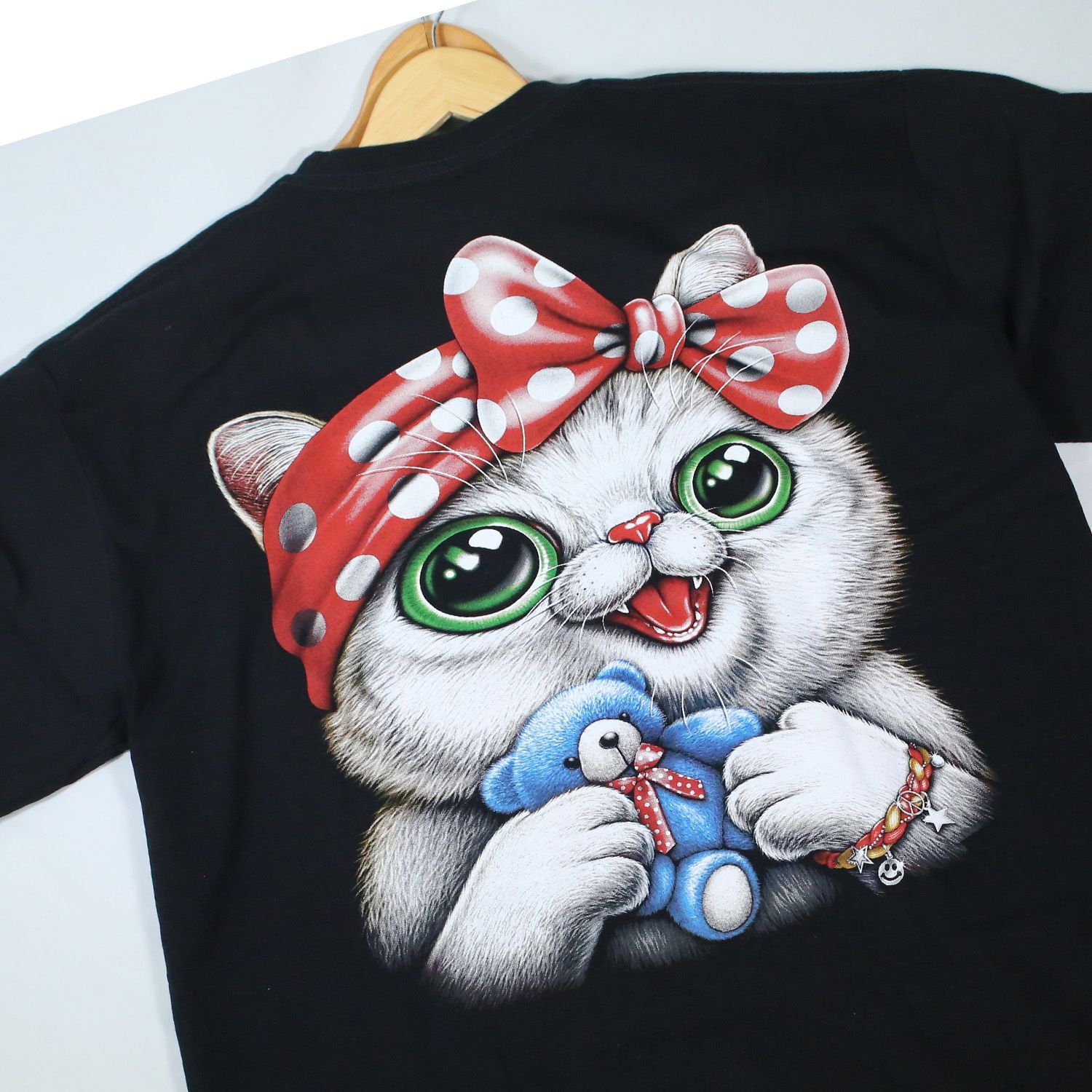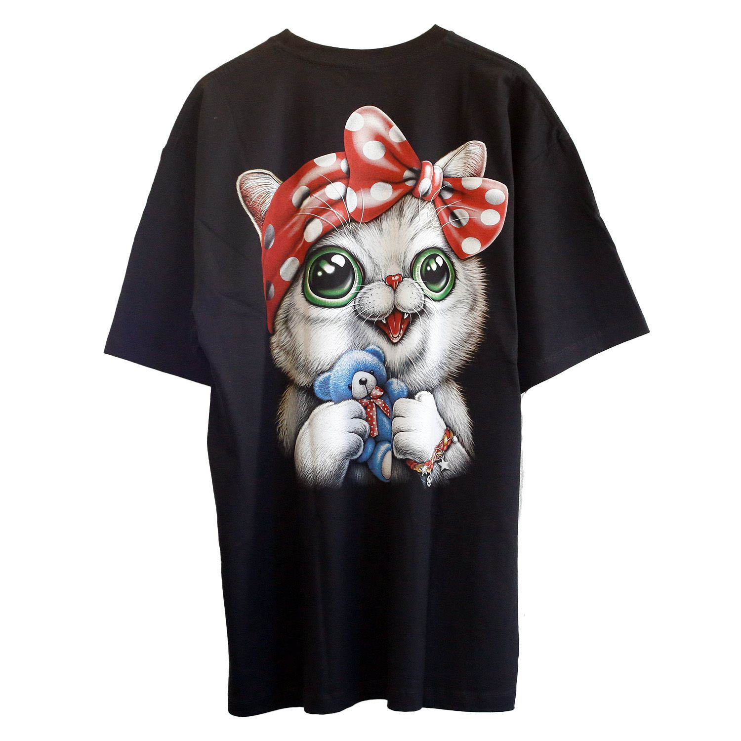 🎀✨超キュートな猫Tシャツ!✨🎀✨ビッグサイズ!ドットリボンがかわいい白猫プリントTシャツ✨7700433