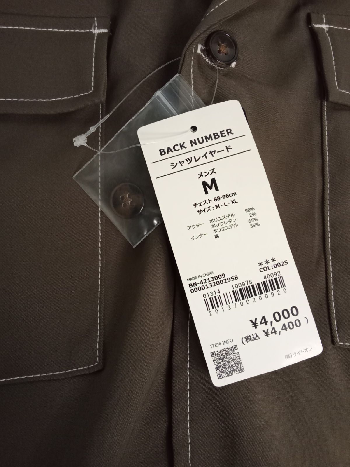Right-on/ライトオン BACK NUMBER シャツレイヤード アンサンブル サイズM タグ付き【新品】