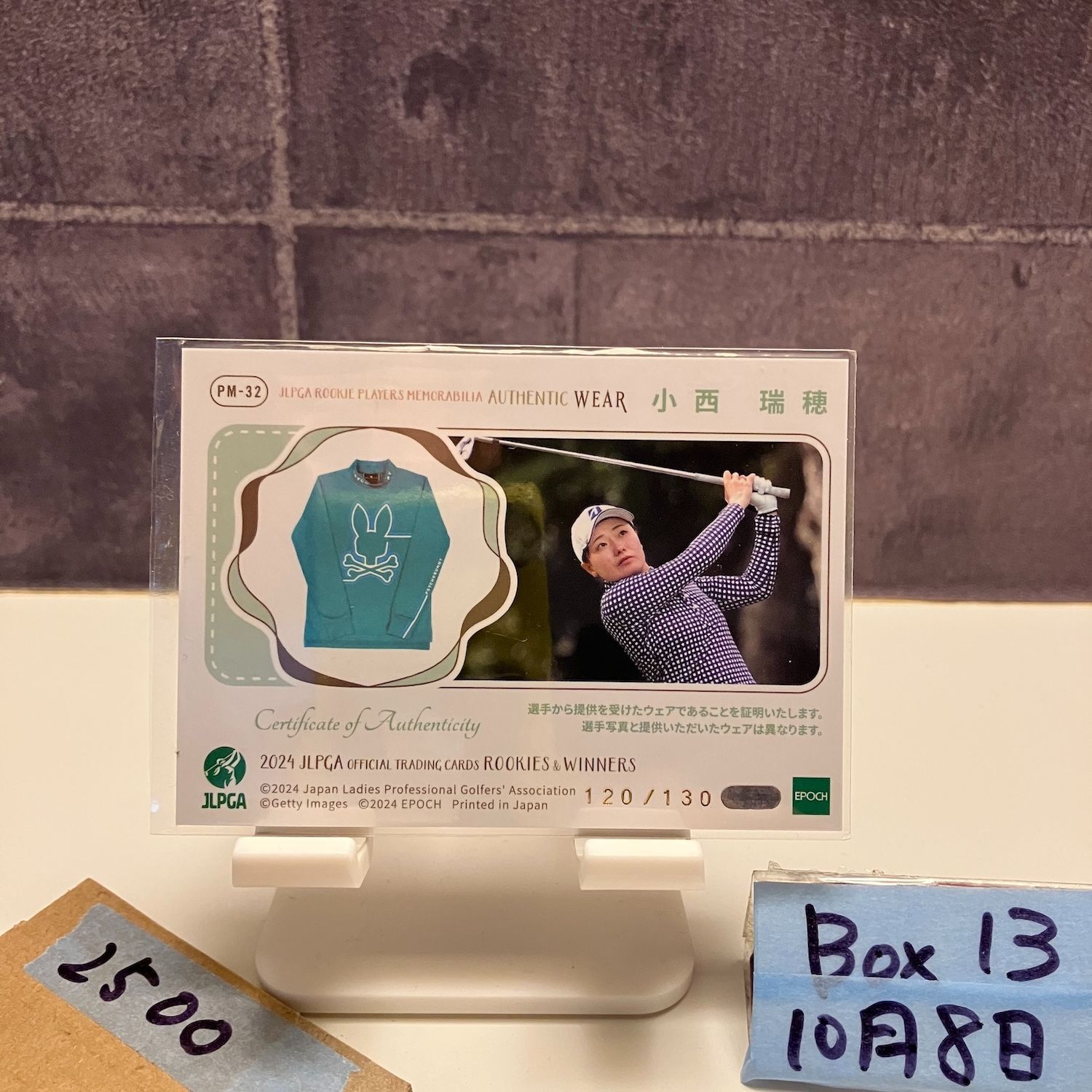 2024 Epoch 小西瑞穂 120/130 JLPGA ジャージ ROOKIES & WINNERS 女子プロゴルフ カード