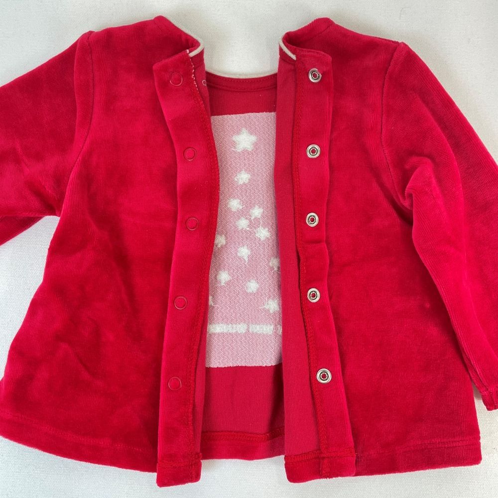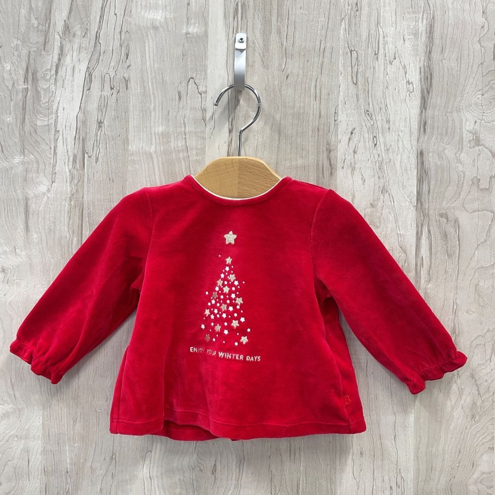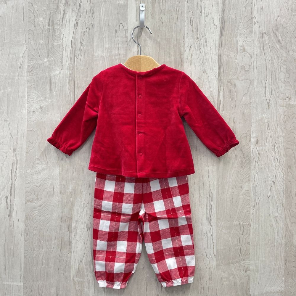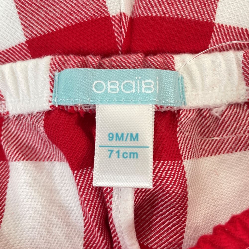 ap11524-3 ベビー トップス ズボン セットアップ 70 9M 71cm レッド クリスマスツリー チェック ストレッチ 長袖 9ヶ月 OBAÏBI