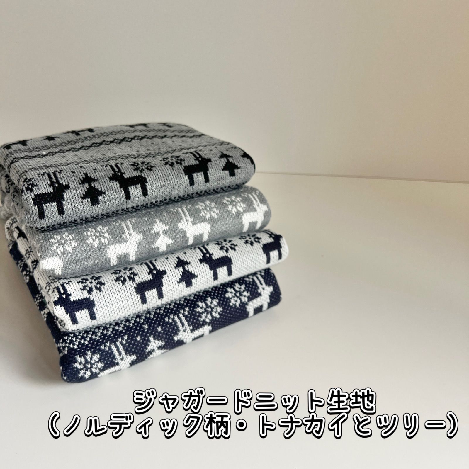 ジャガードニット生地(ノルディック柄・トナカイとツリー)韓国生地 4カラーから選択