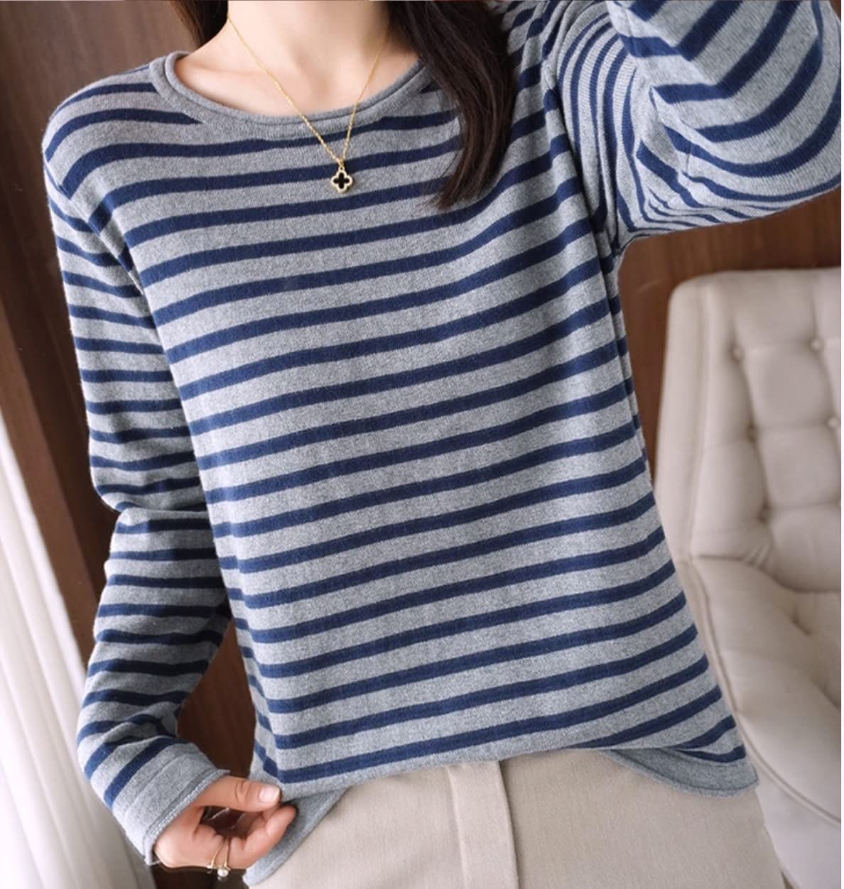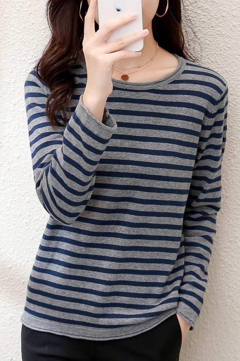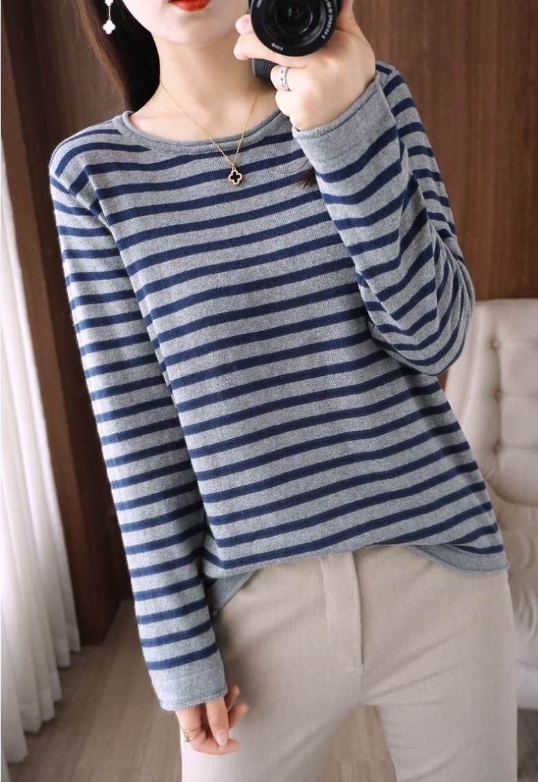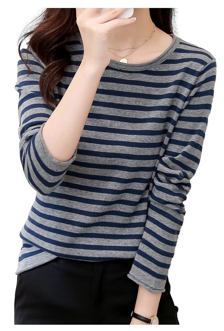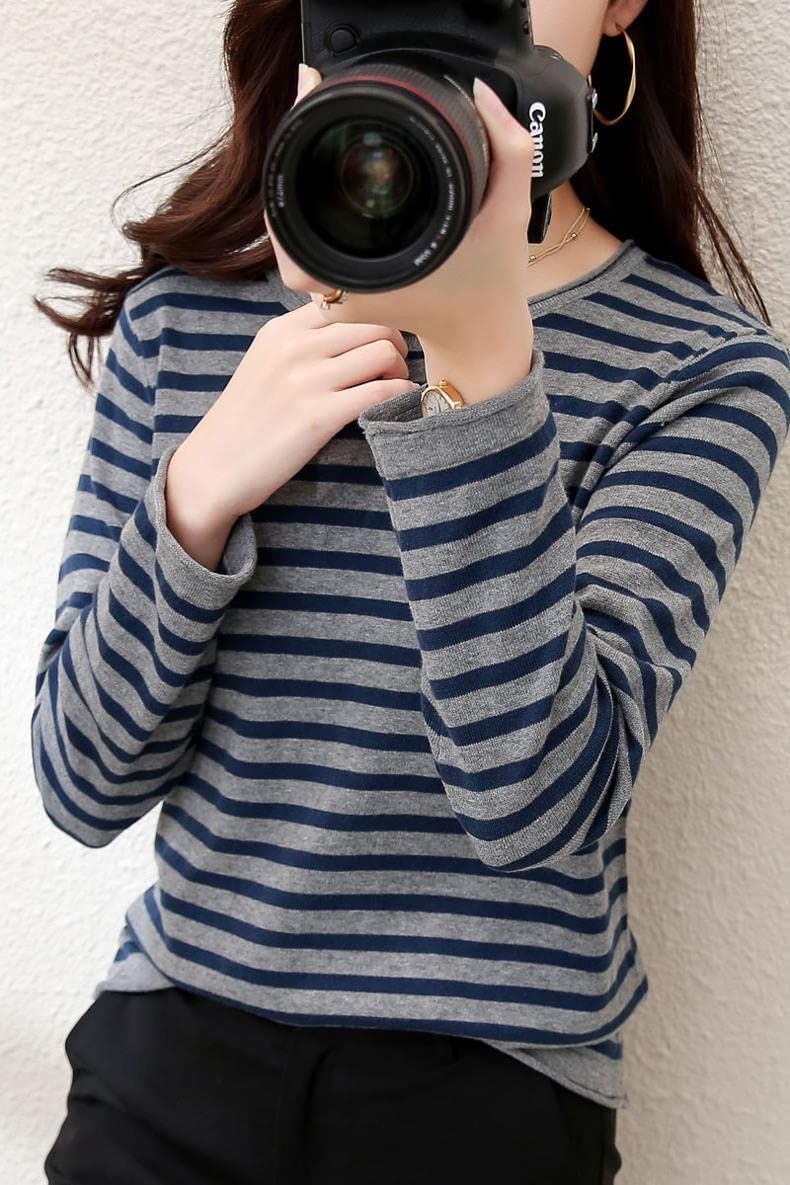 ラウンドネック オールシーズン カジュアル ロンT Tシャツ 3色展開 長袖 カットソー ボーダー レディース [アンリ] [AndLee&co]