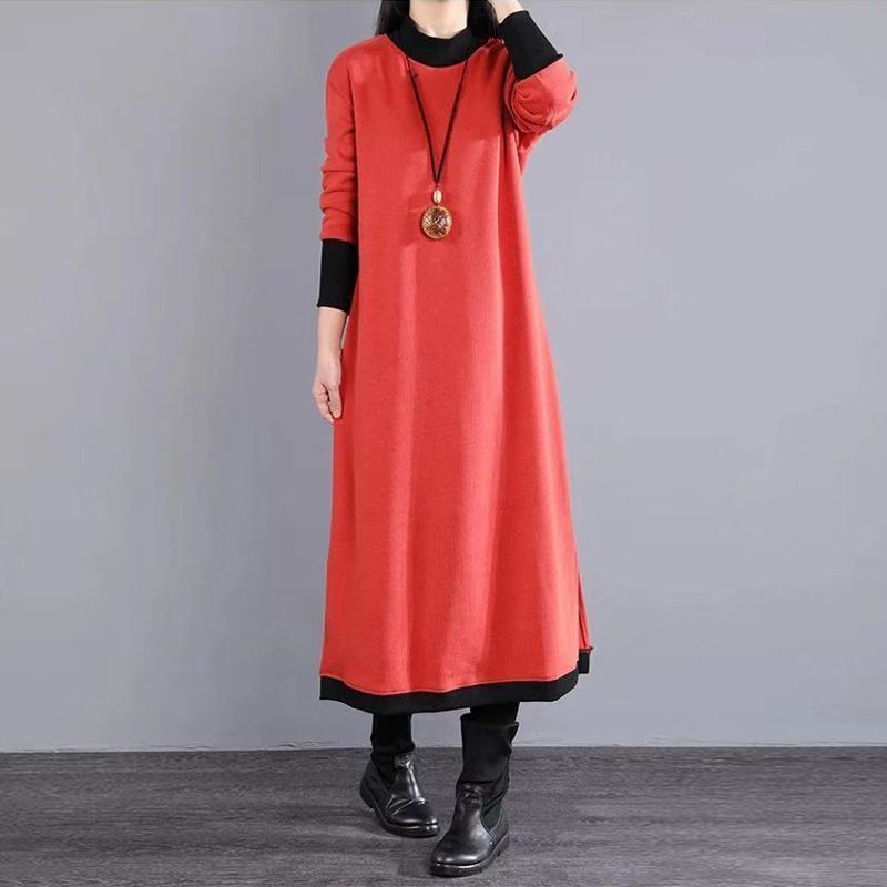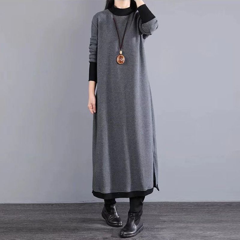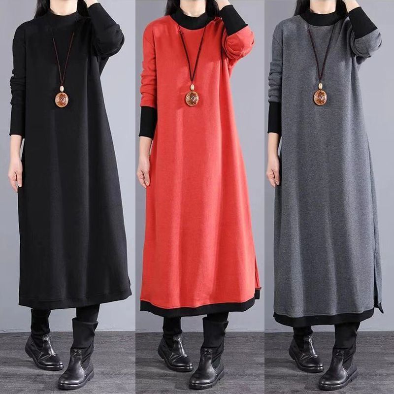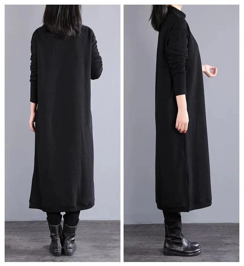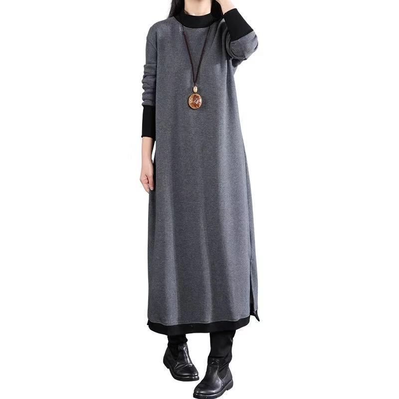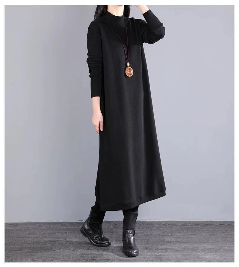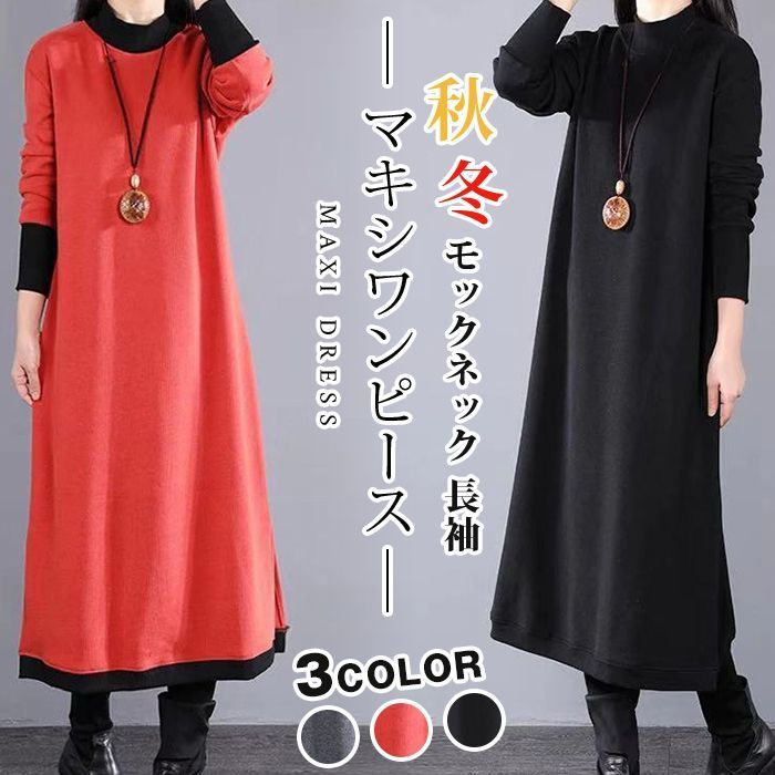 マキシワンピース レディース 秋冬 モックネック 長袖 スウェット ワンピース ロング丈 大きいサイズ ゆったり 体型カバー ビッグシルエット yachaoliu01