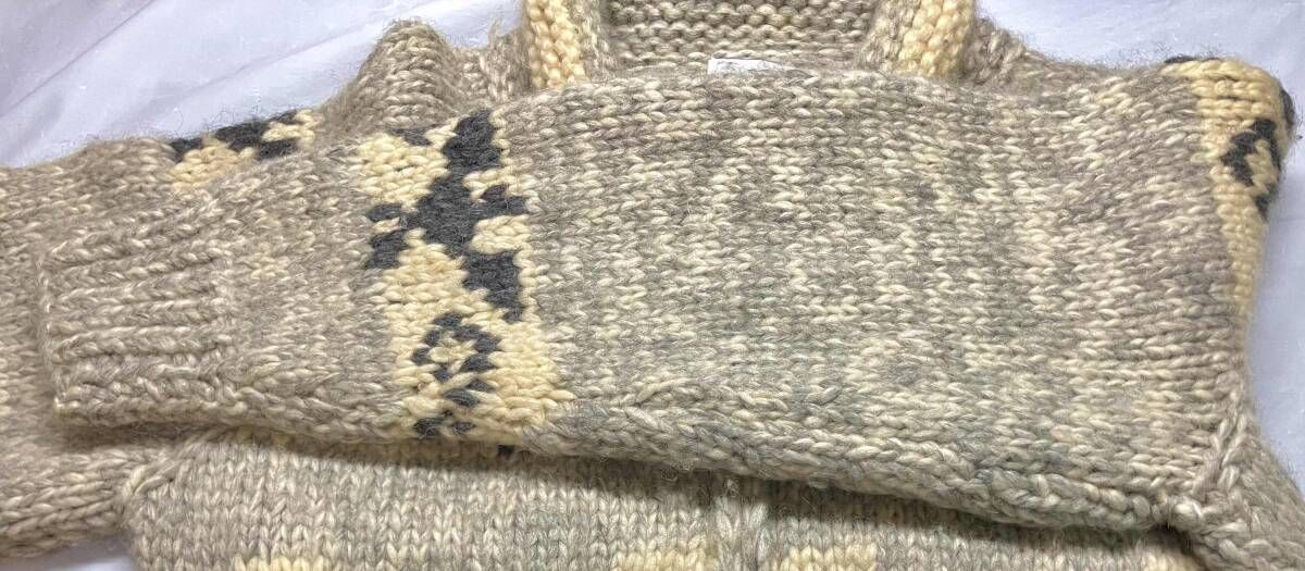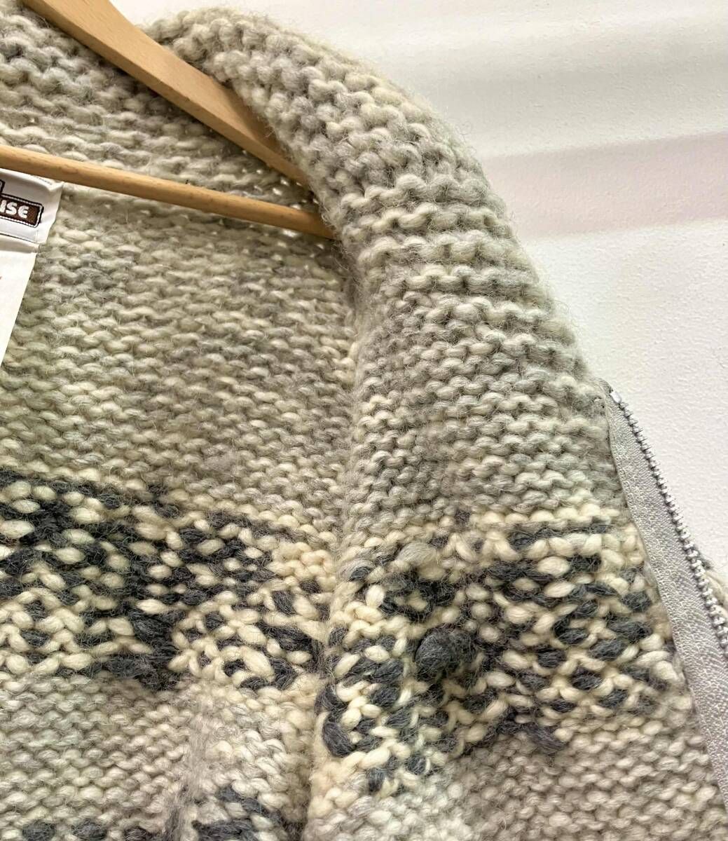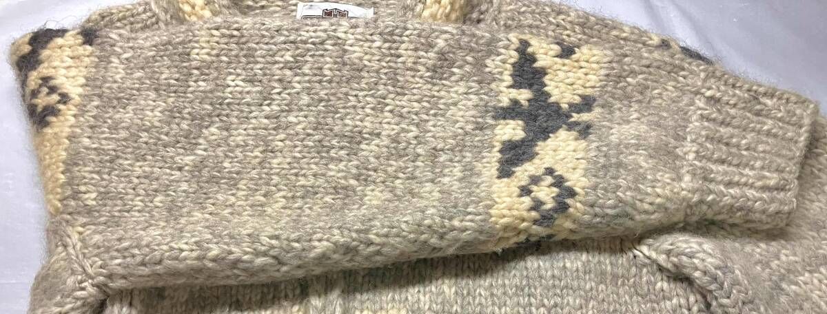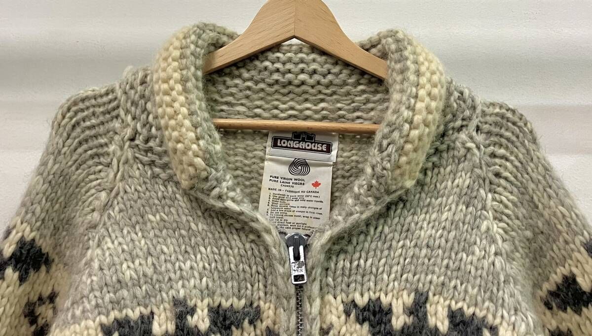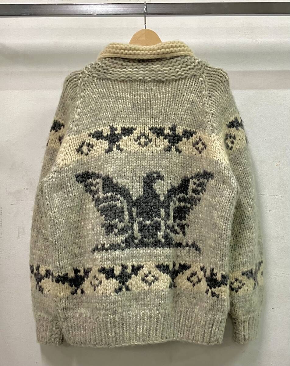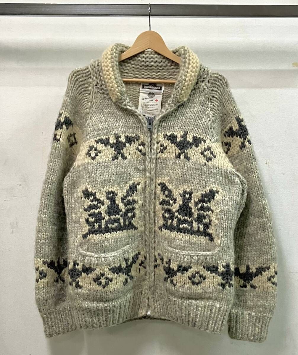 LONGHOUSE ロングハウス カウチンセーター ニット サイズ表記なし グレー アイボリー フルジップ イーグル柄 カナダ製