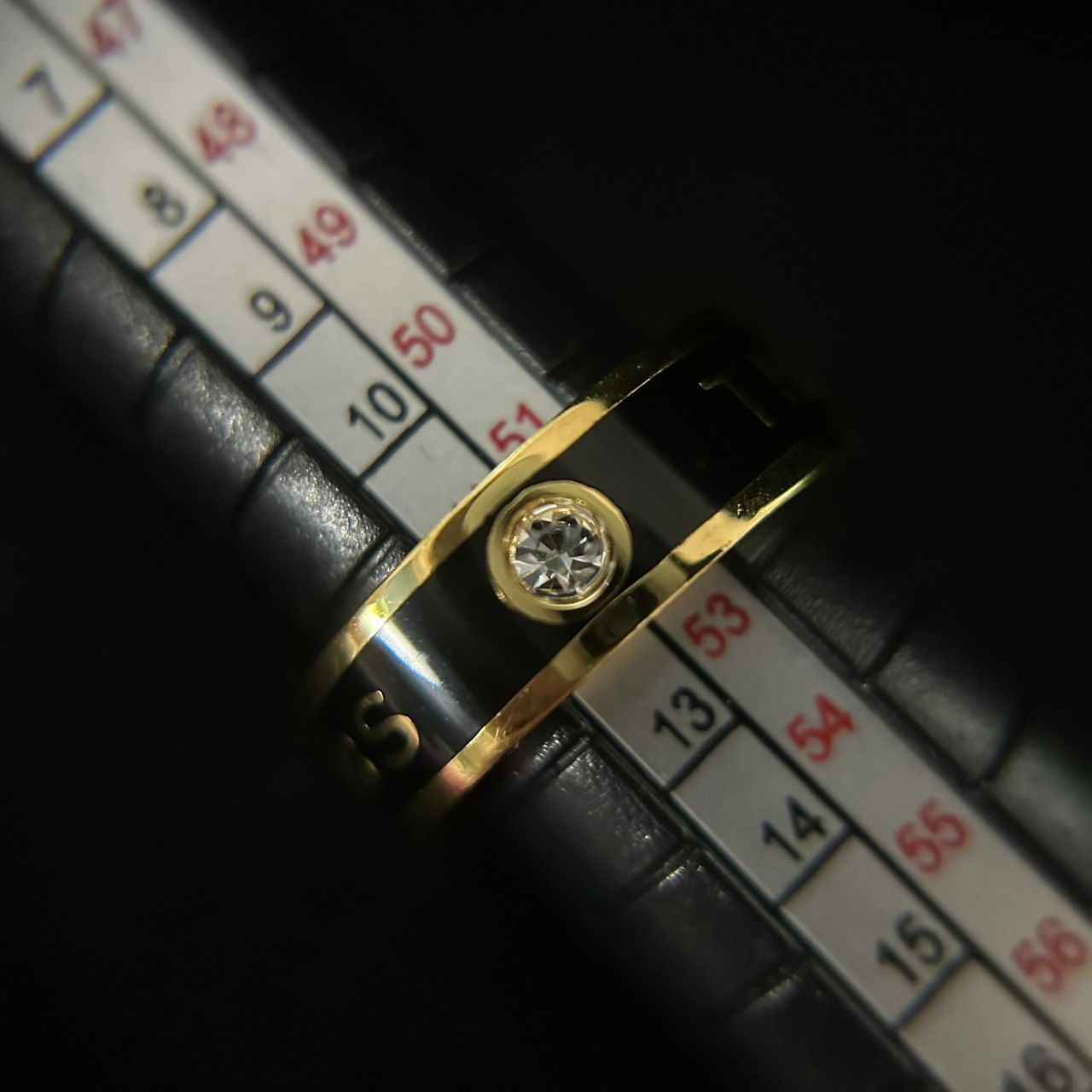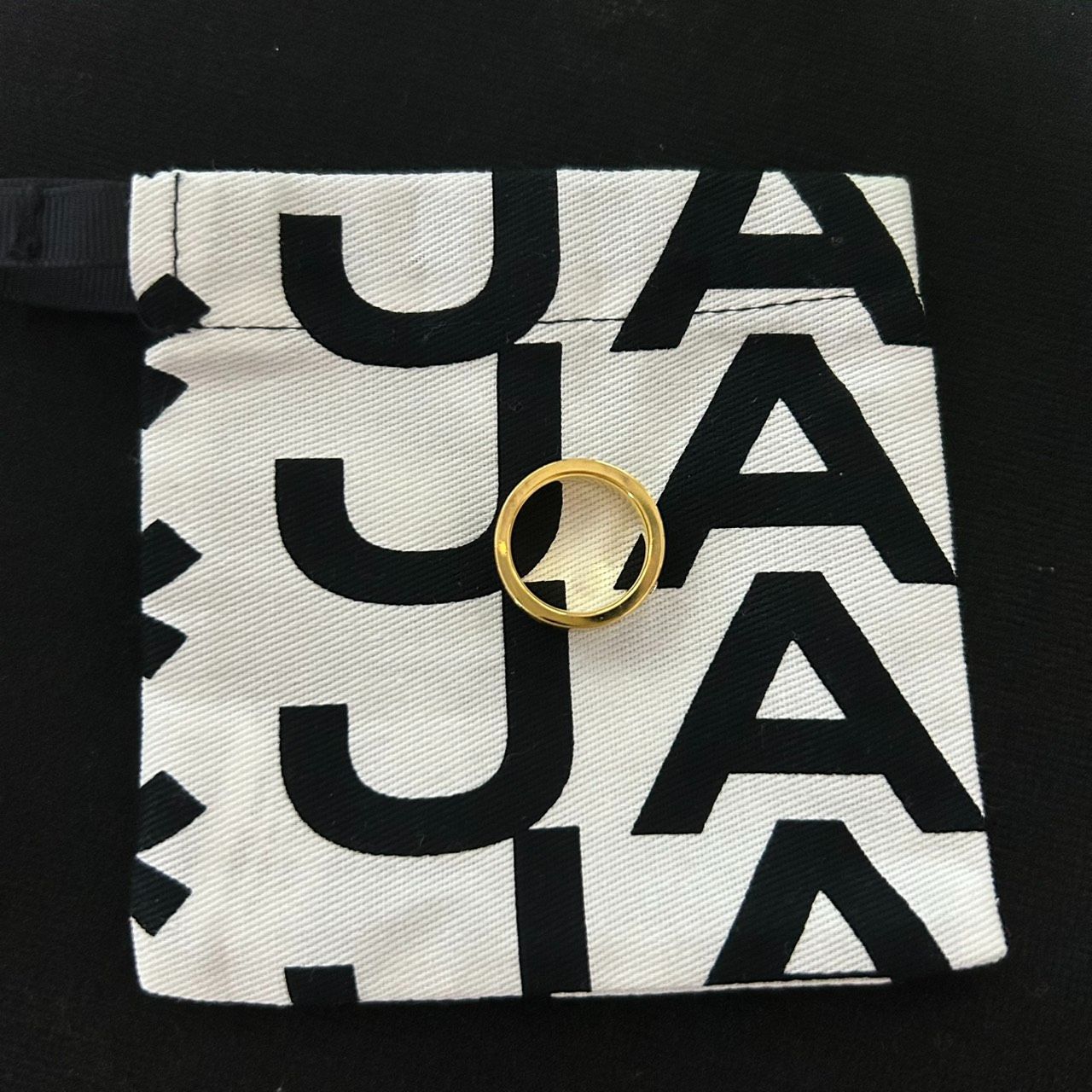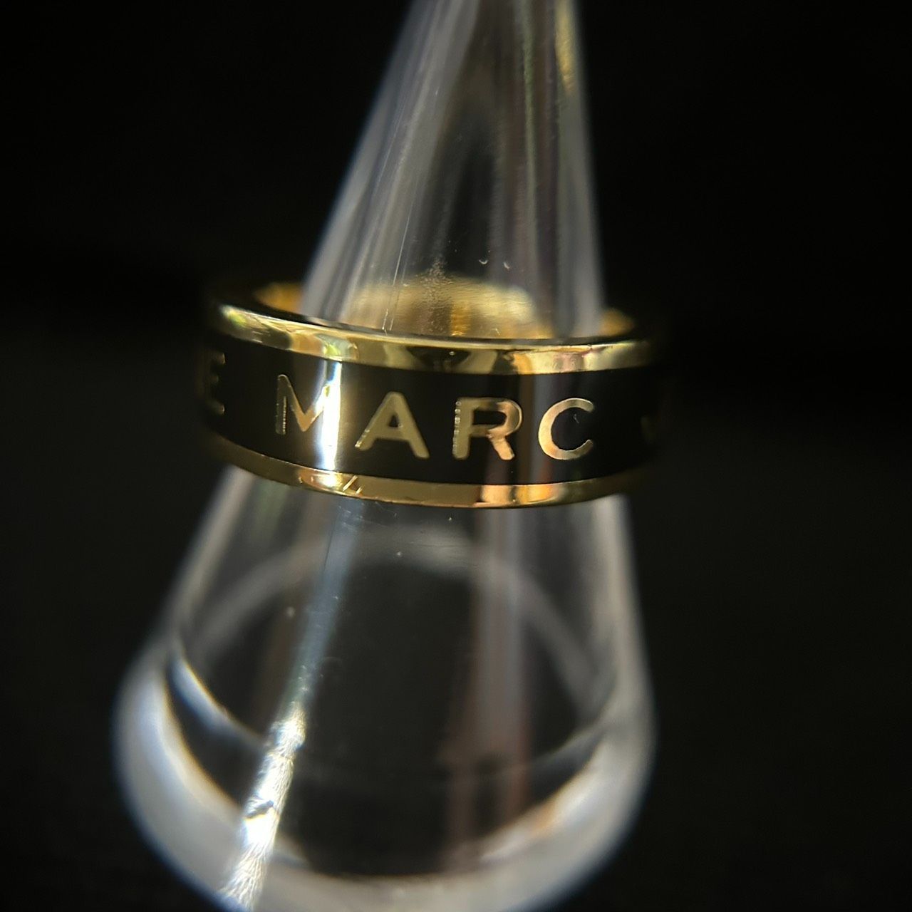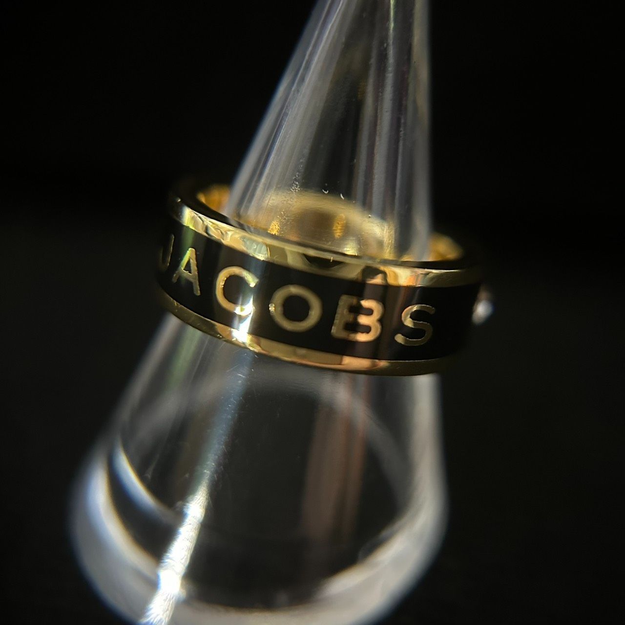 【良品】MARC JACOBS マークジェイコブス リング 指輪 ゴールド ブラック ロゴ ラインストーン アクセサリー レディース 11号 12号前後 1205003