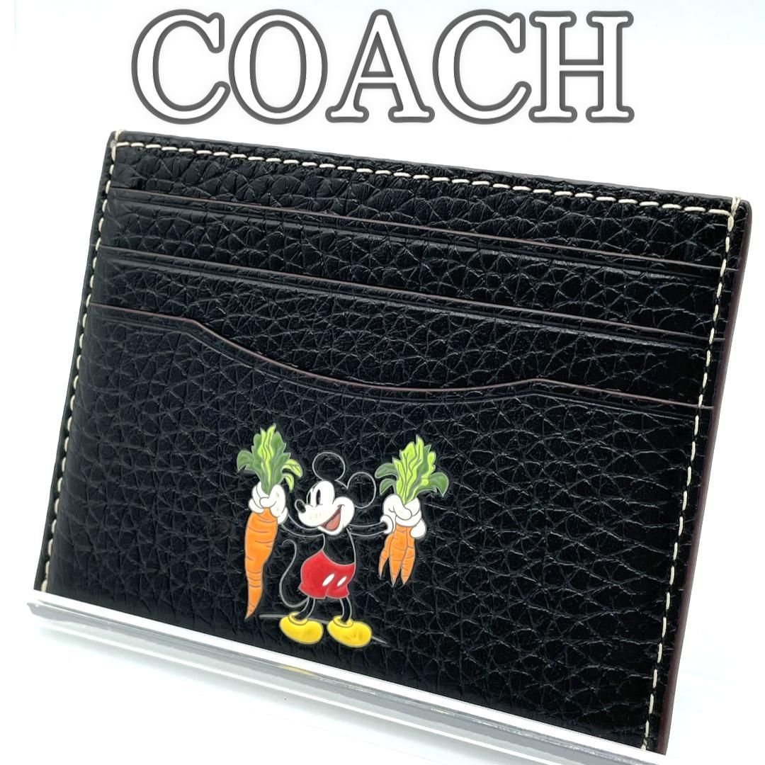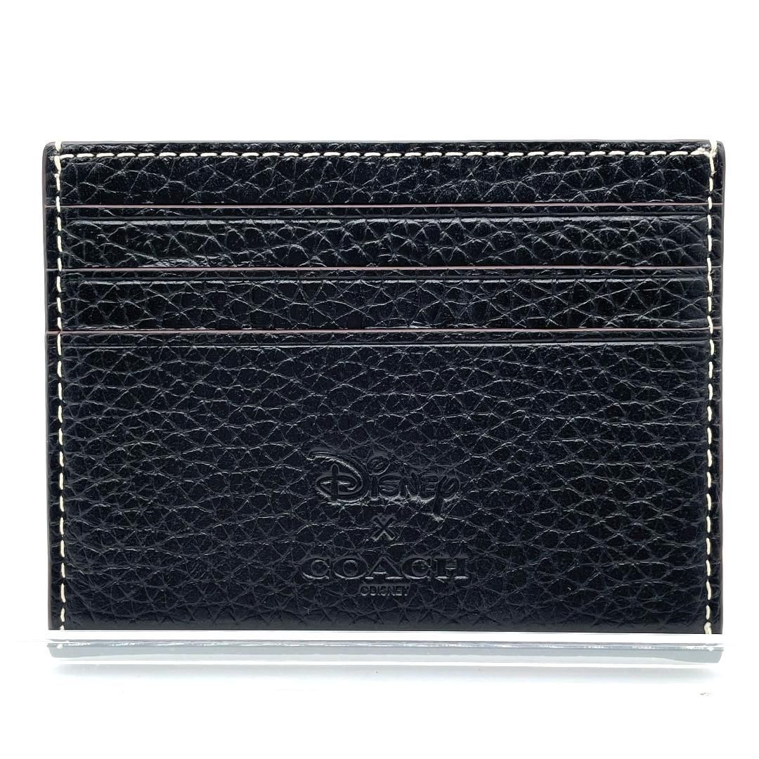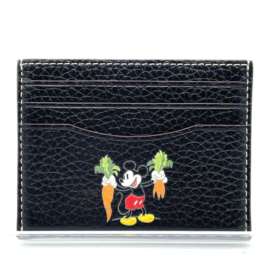 【美品レア】コーチ COACH × Disney ディズニー コラボ ミッキー Mickey レザー カードケース パスケース 定期入れ メンズ レディース ブラック 黒 本革 スリム コンパクト ブランド 人気 ギフト コレクション